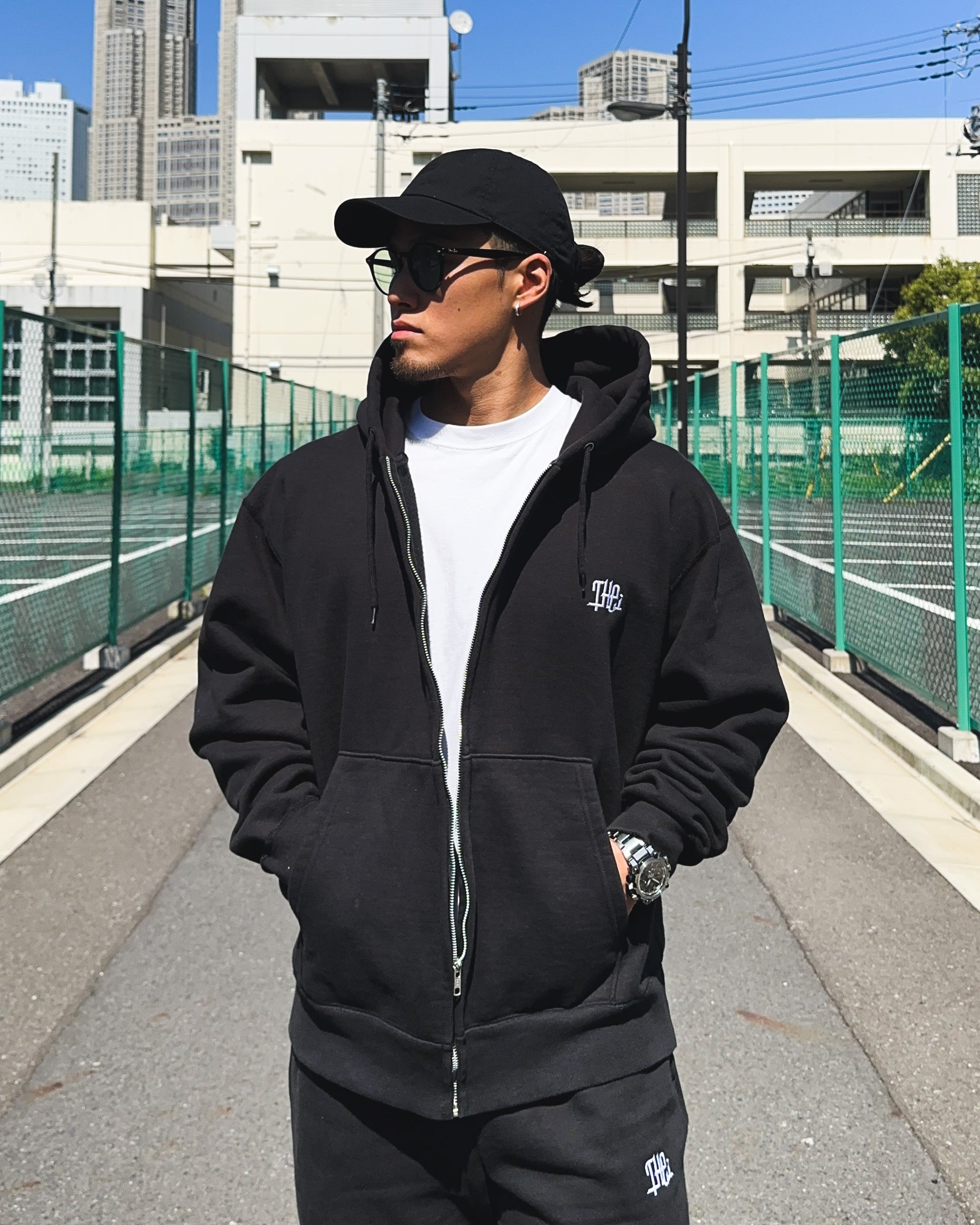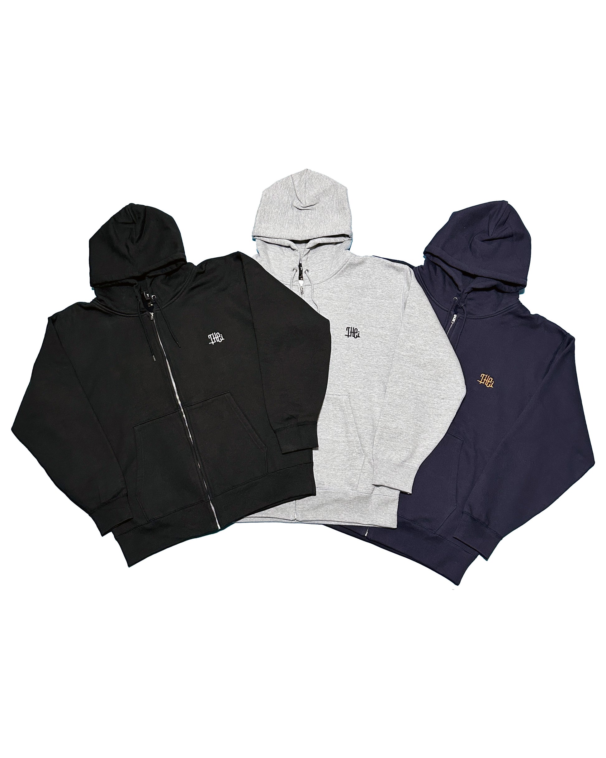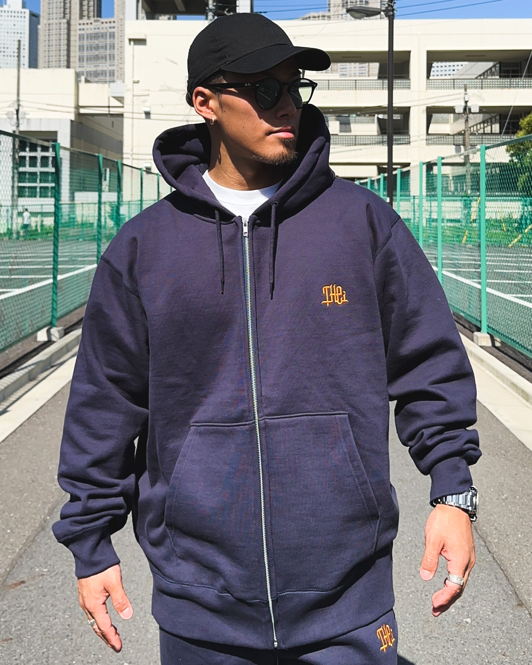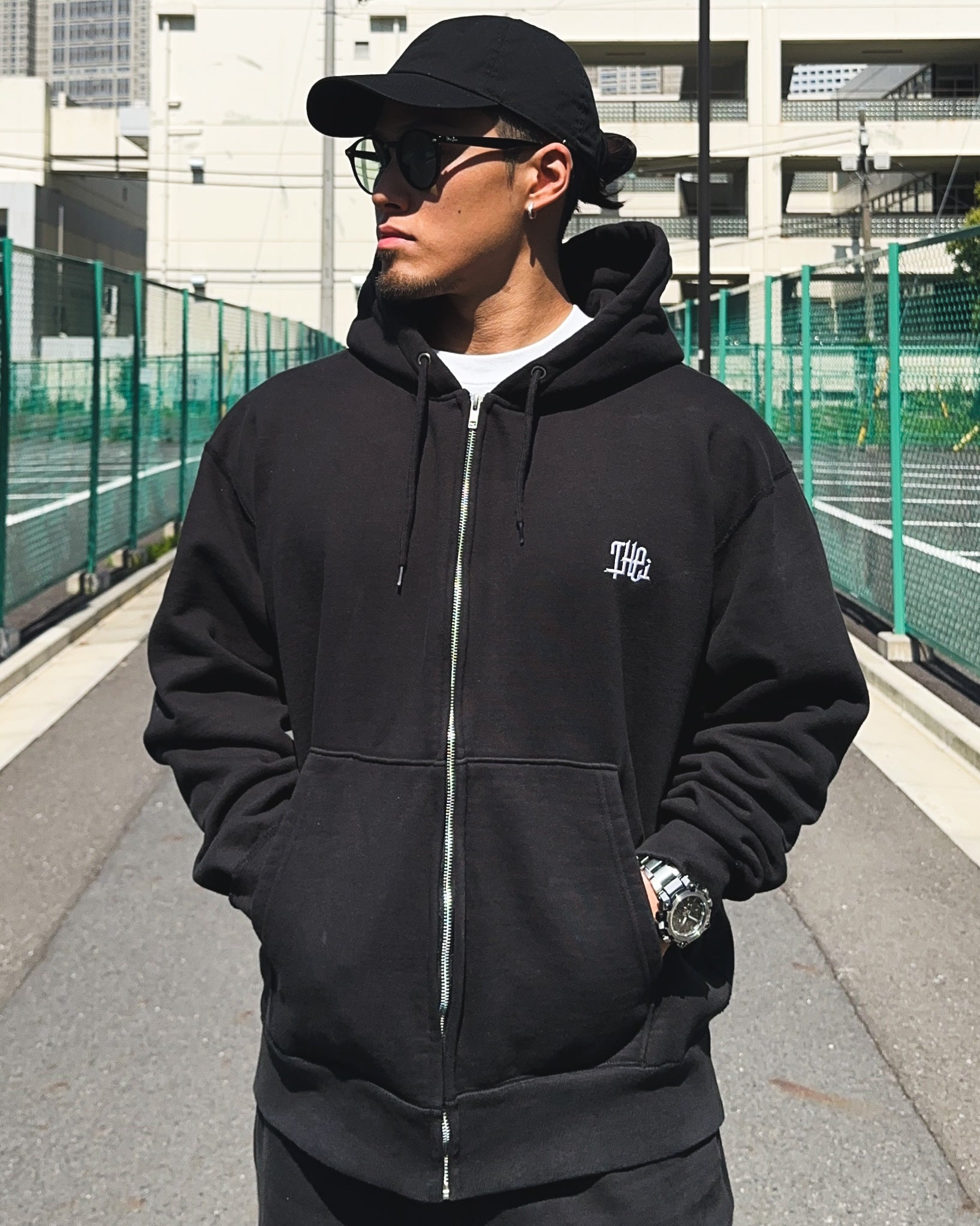 THEiのアラビックロゴを使用したヘヴィーウェイトのスウェットジップアップパーカー。