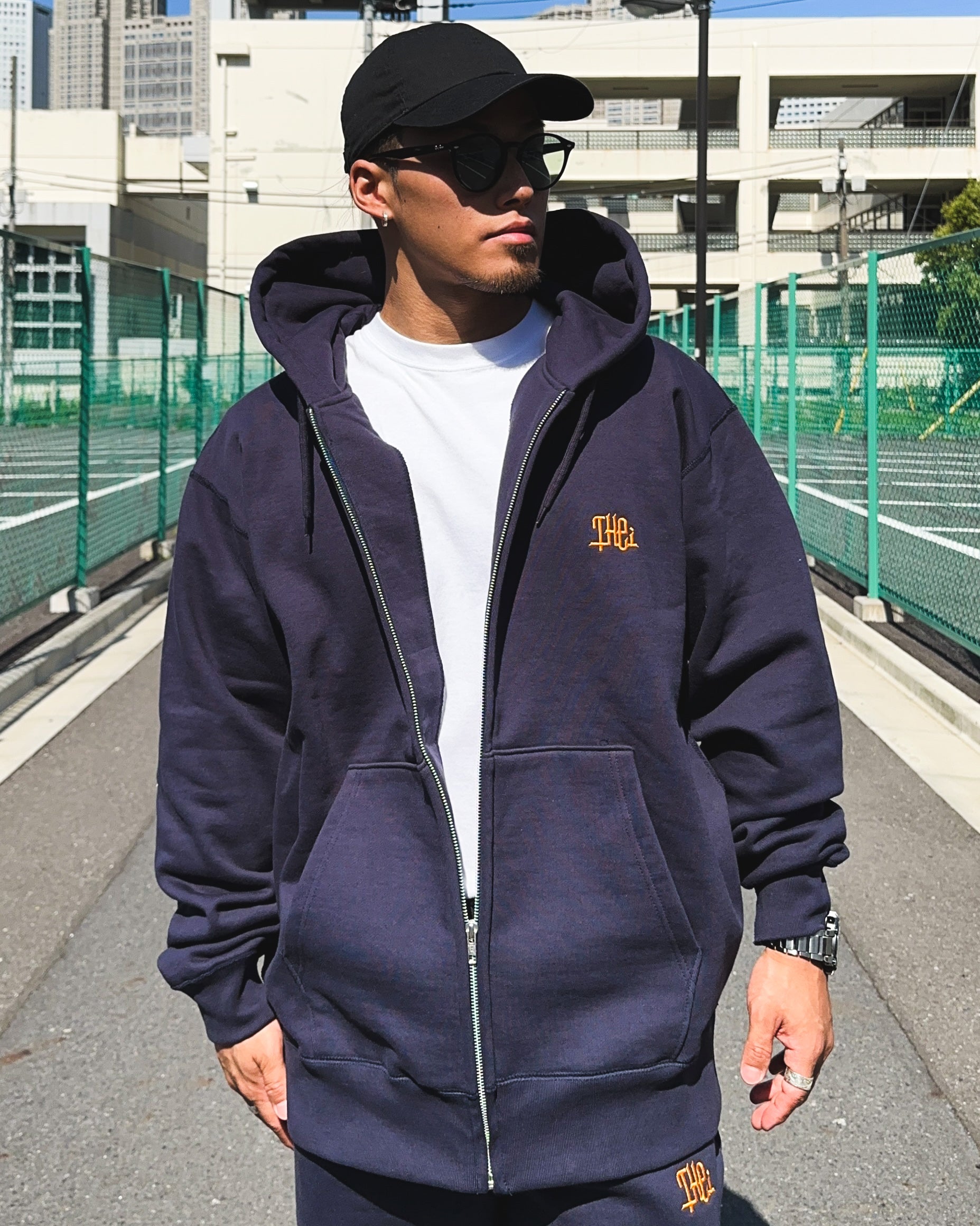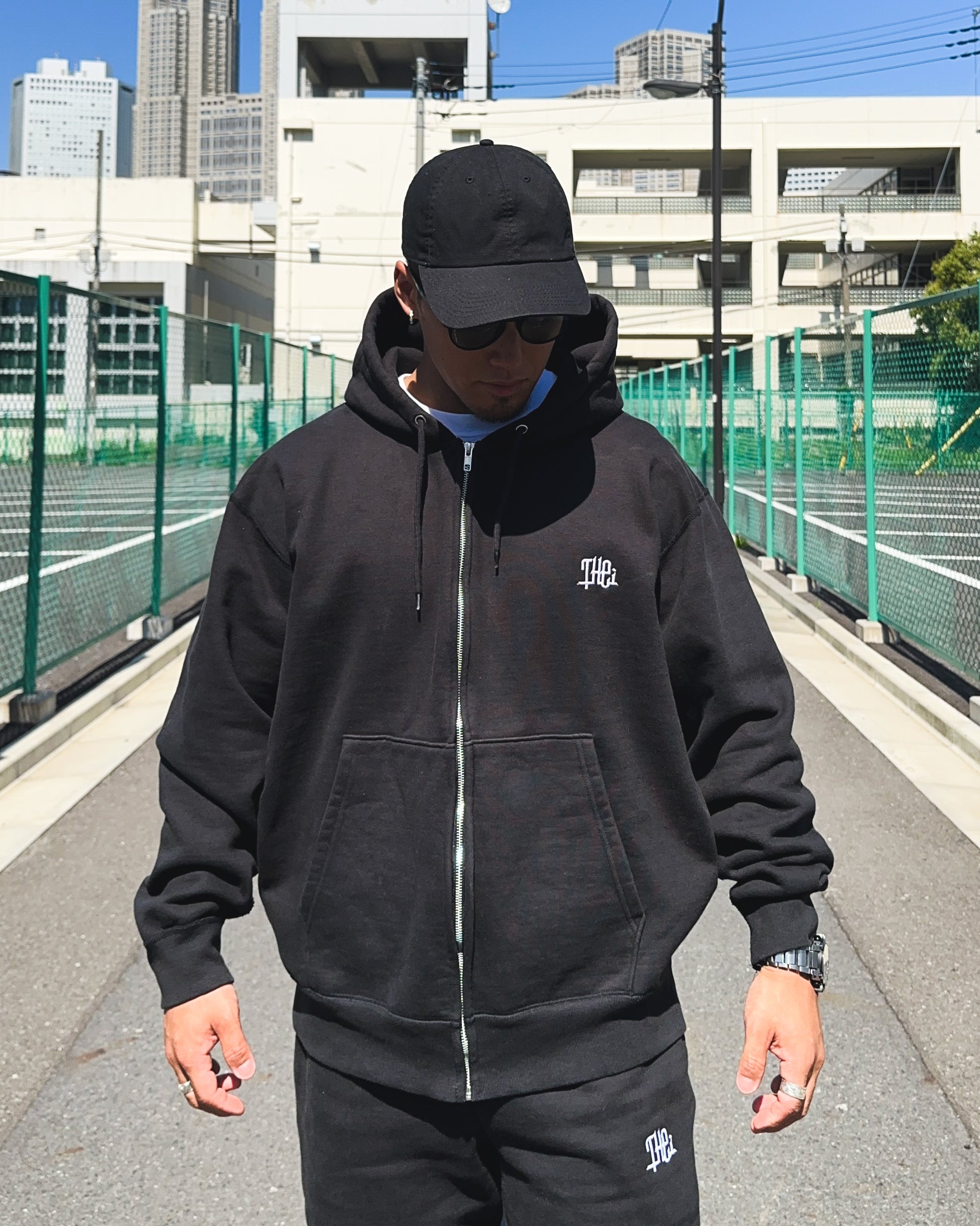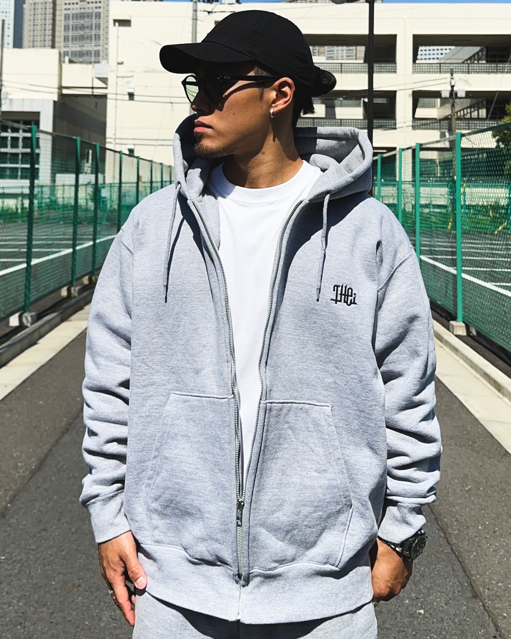 THEiのアラビックロゴを使用したヘヴィーウェイトのスウェットジップアップパーカー。