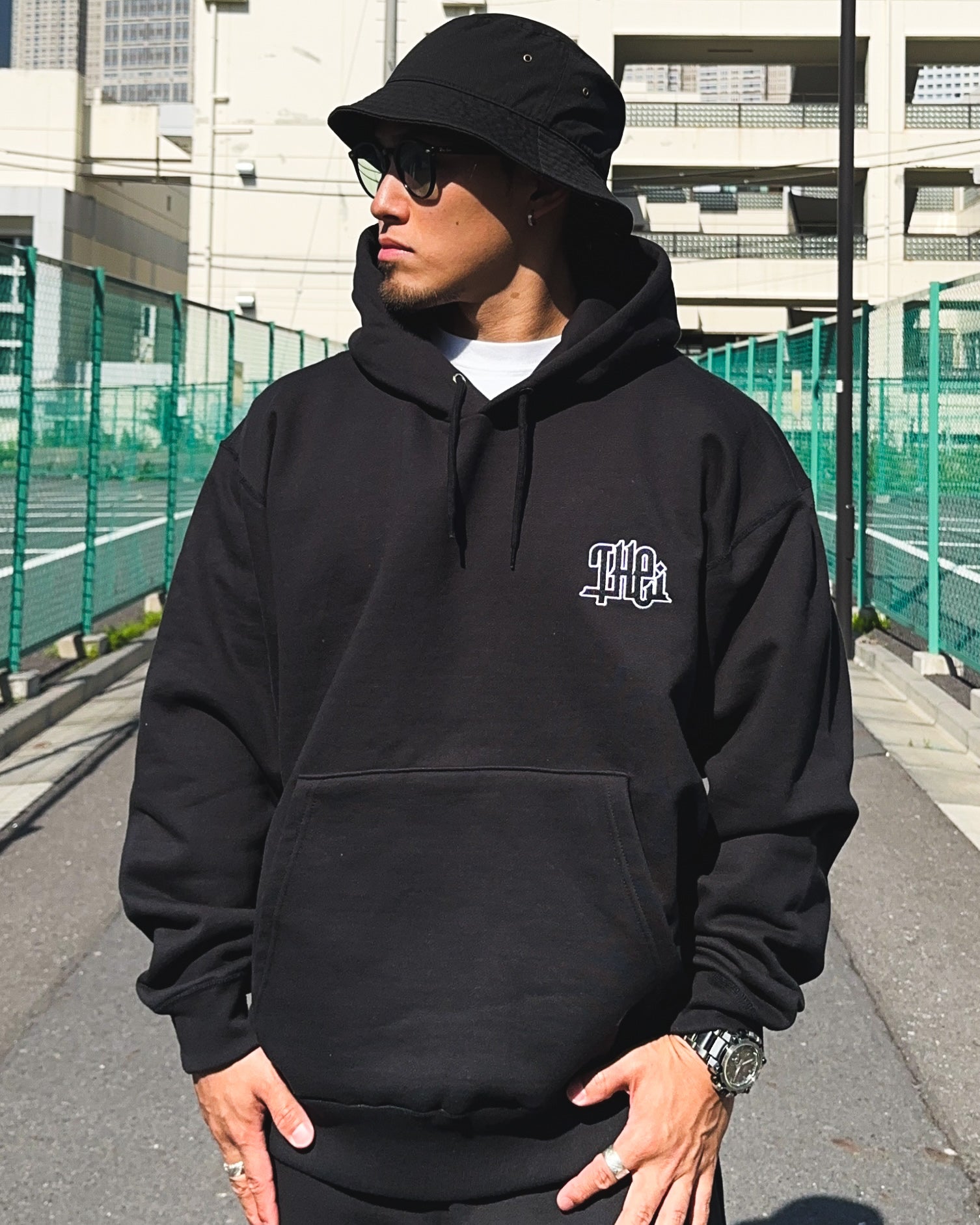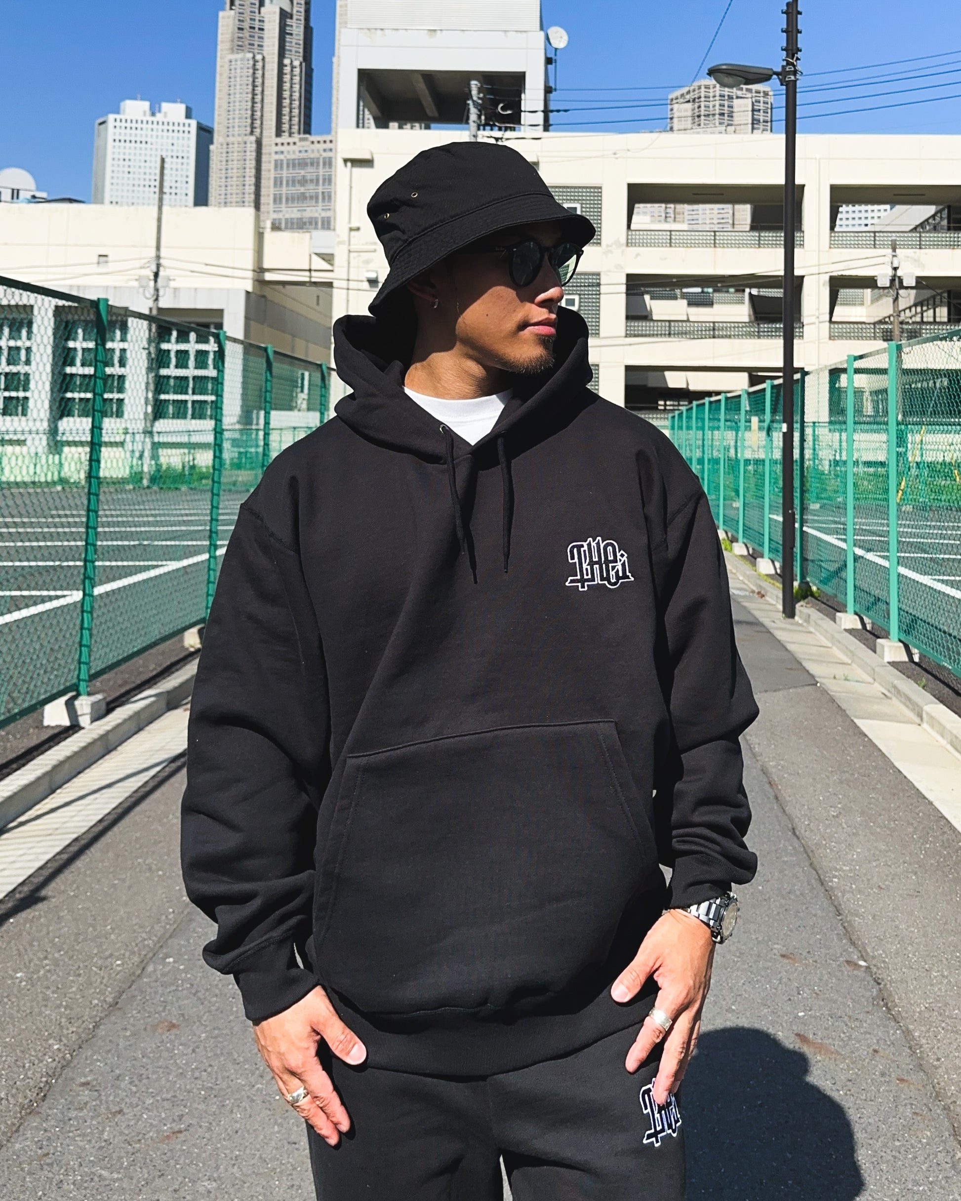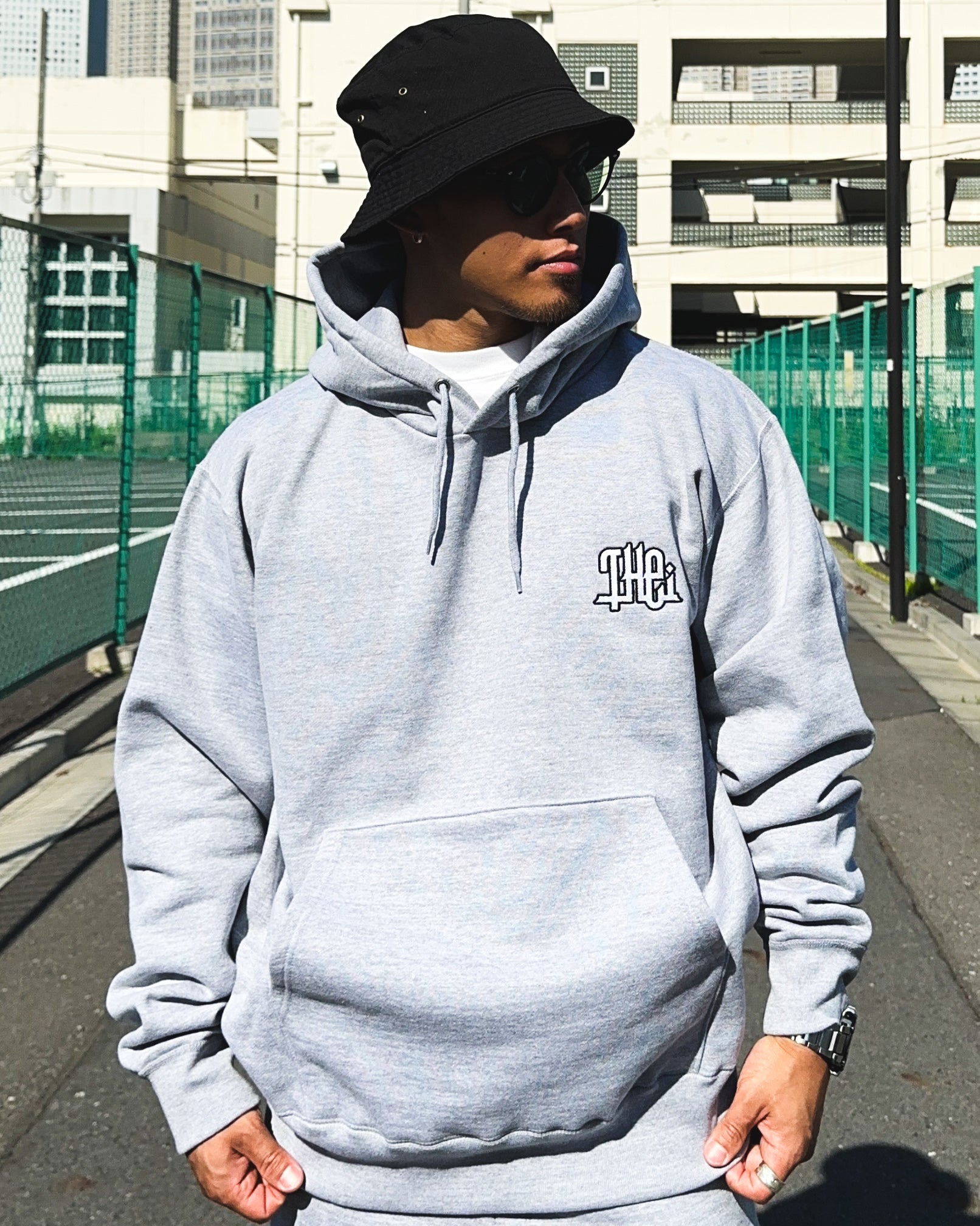 THEiのアラビックロゴ-タイプ2を使用したヘヴィーウェイトのスウェットプルオーバーパーカー。