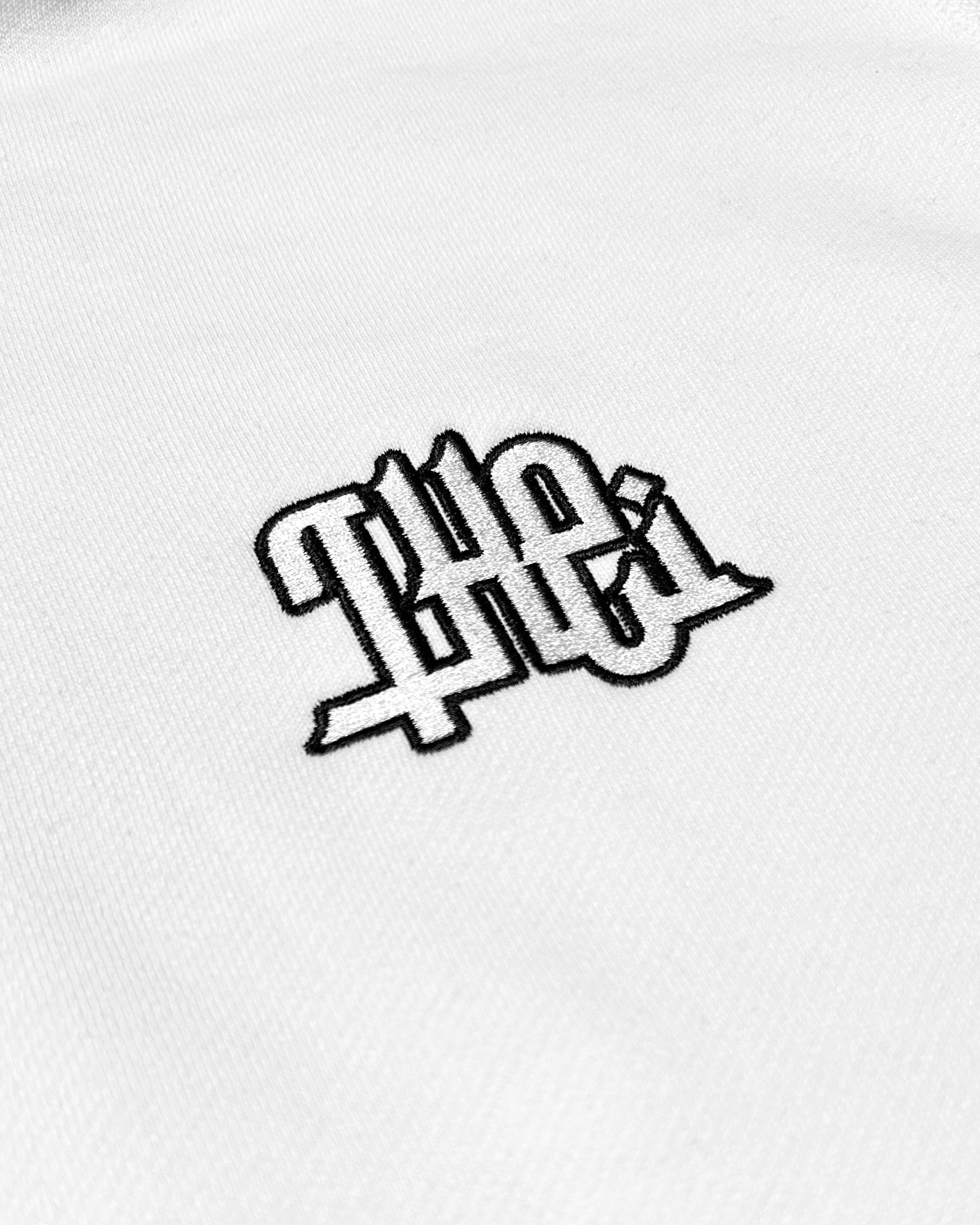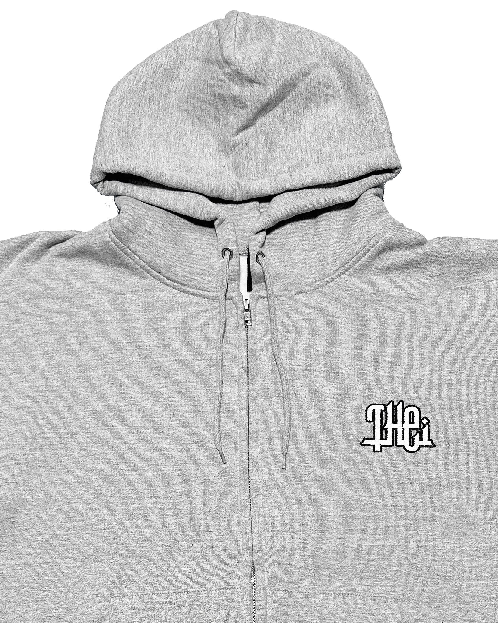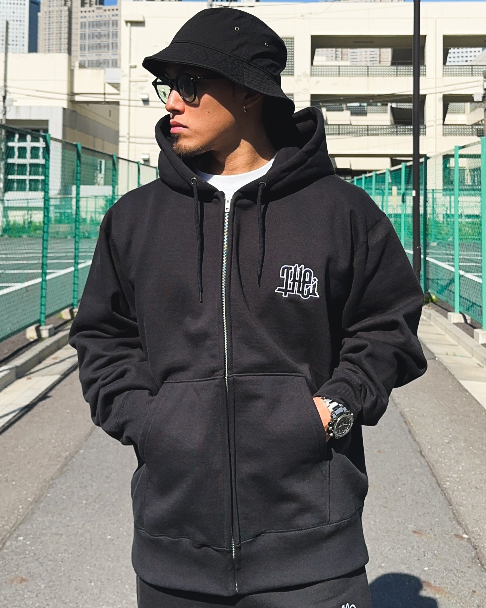 THEiのアラビックロゴ-タイプ2を使用したヘヴィーウェイトのスウェットジップアップパーカー。