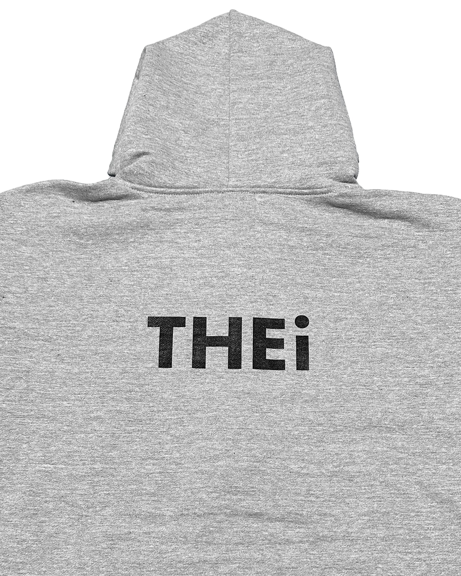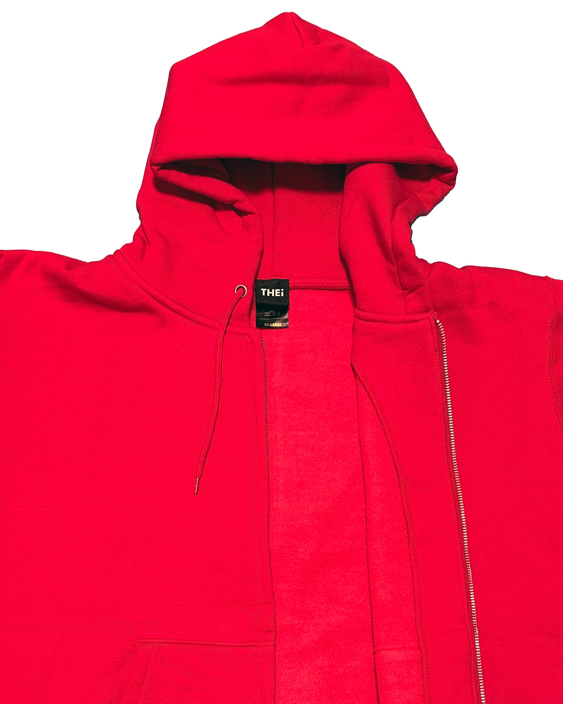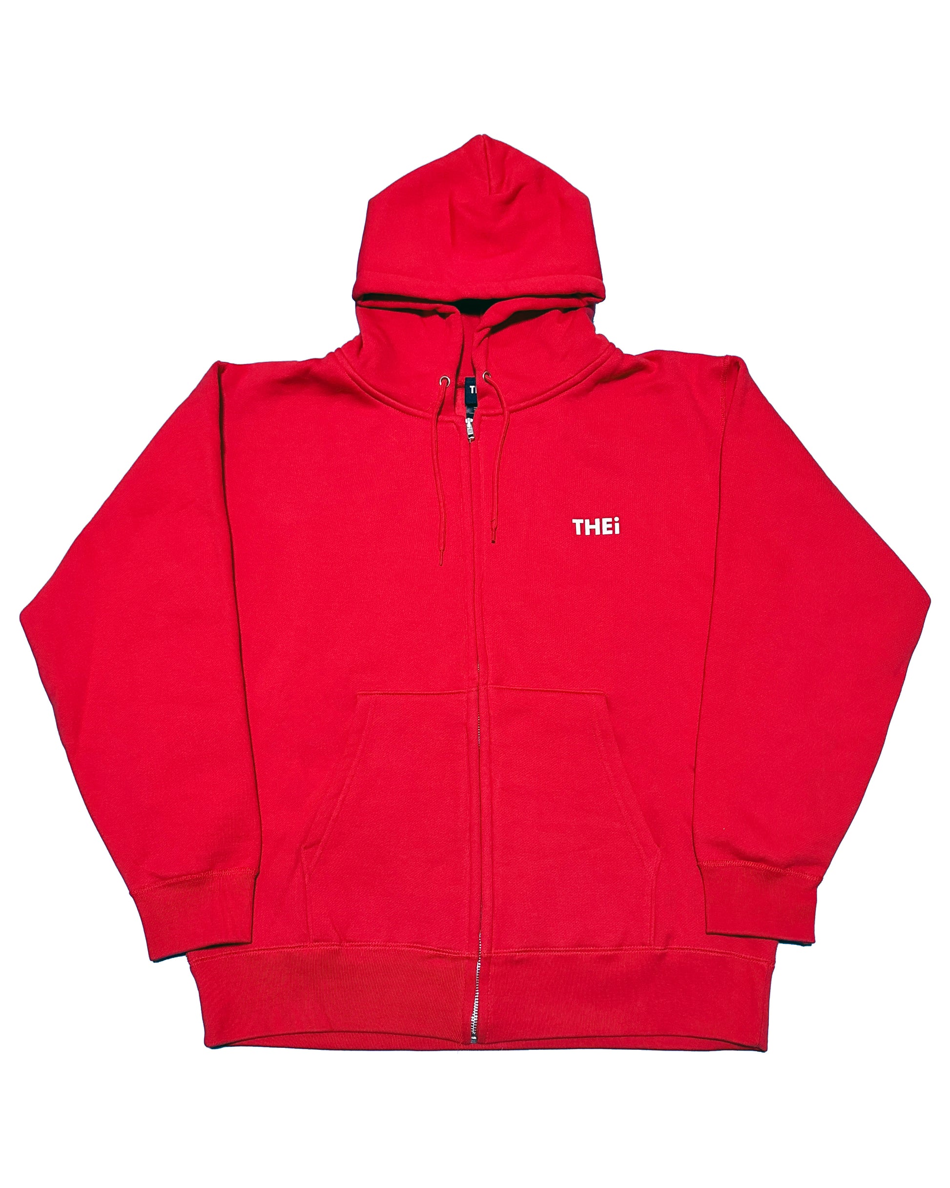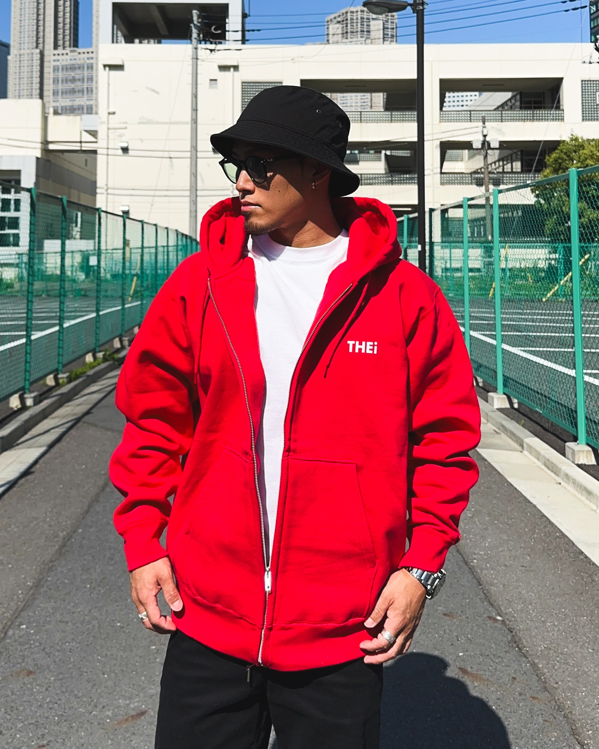 THEiのベーシックロゴを使用したヘヴィーウェイトのスウェットジップアップパーカー。
