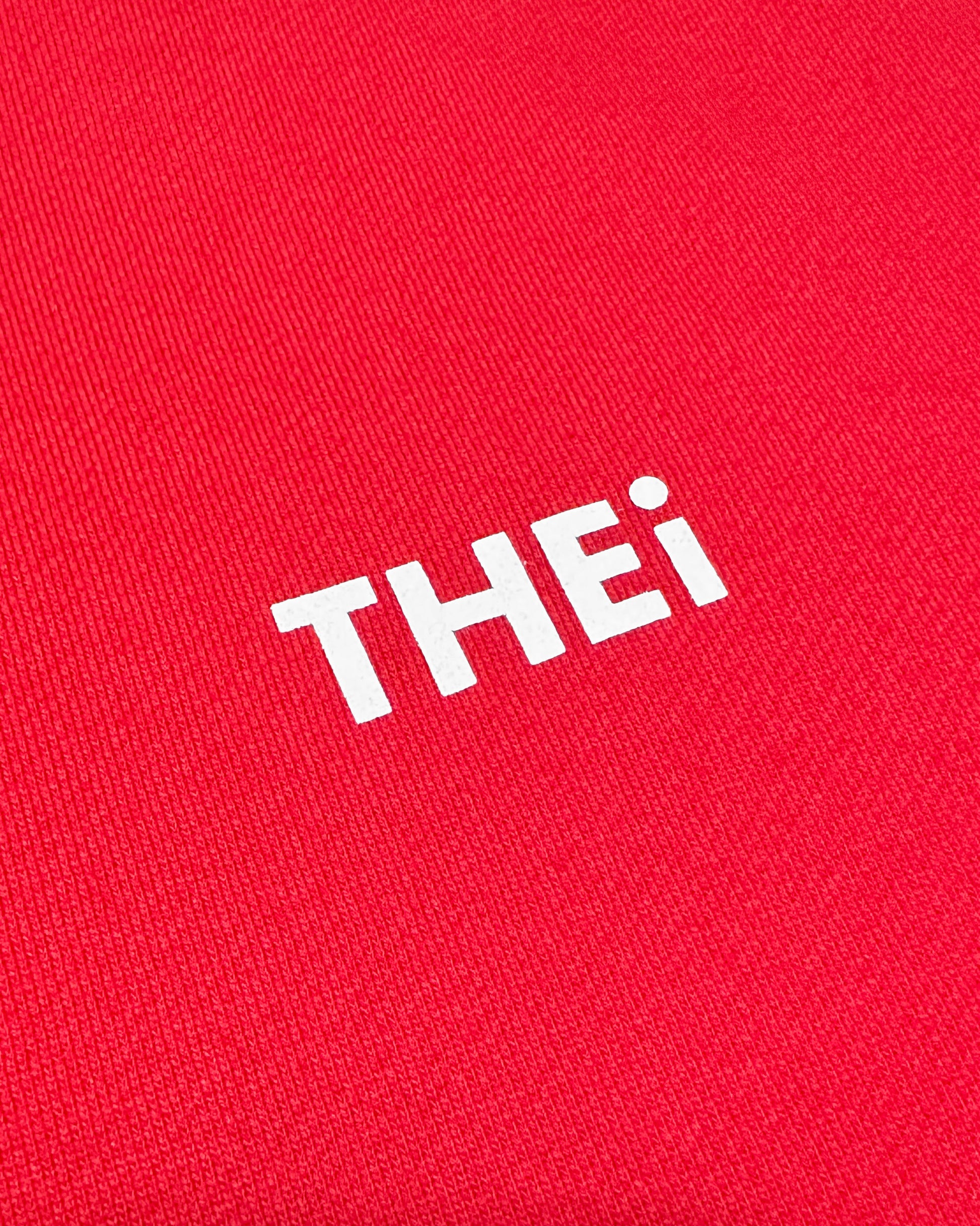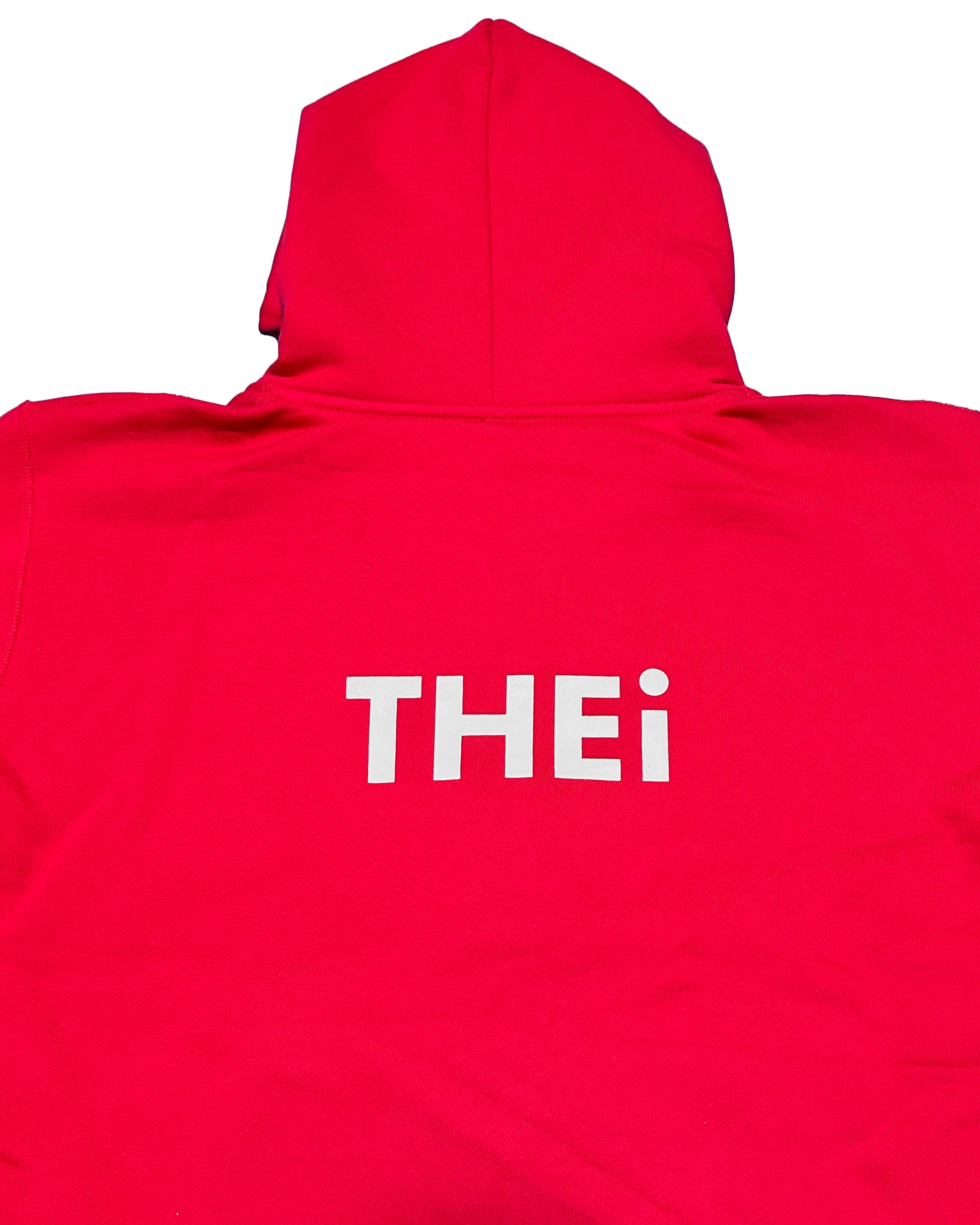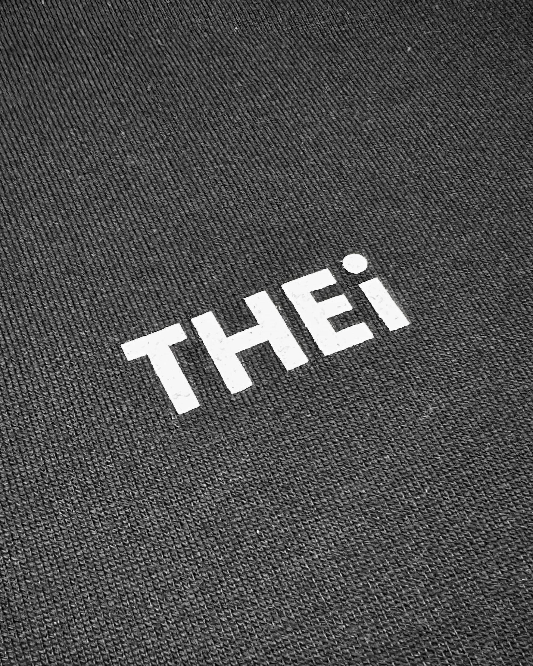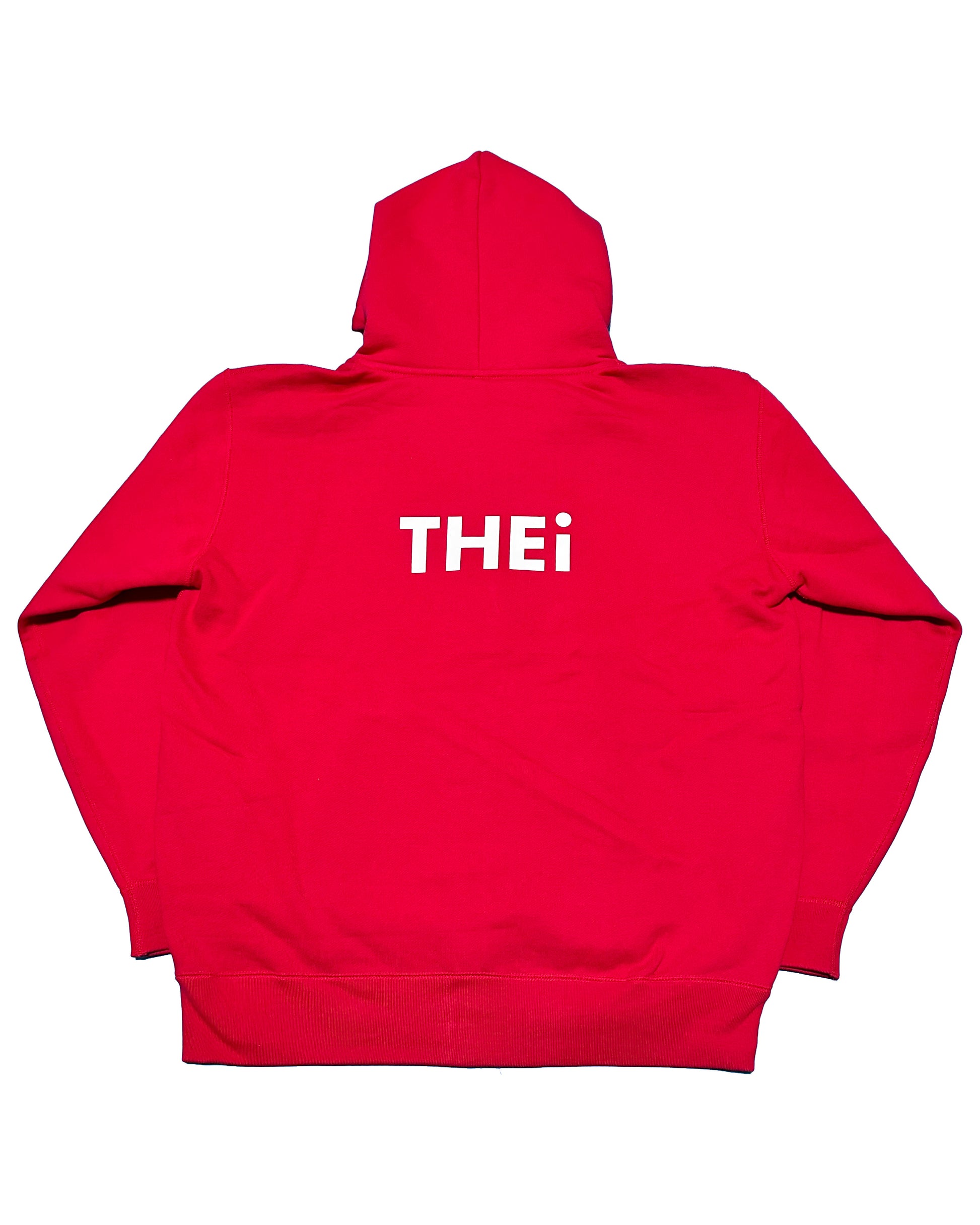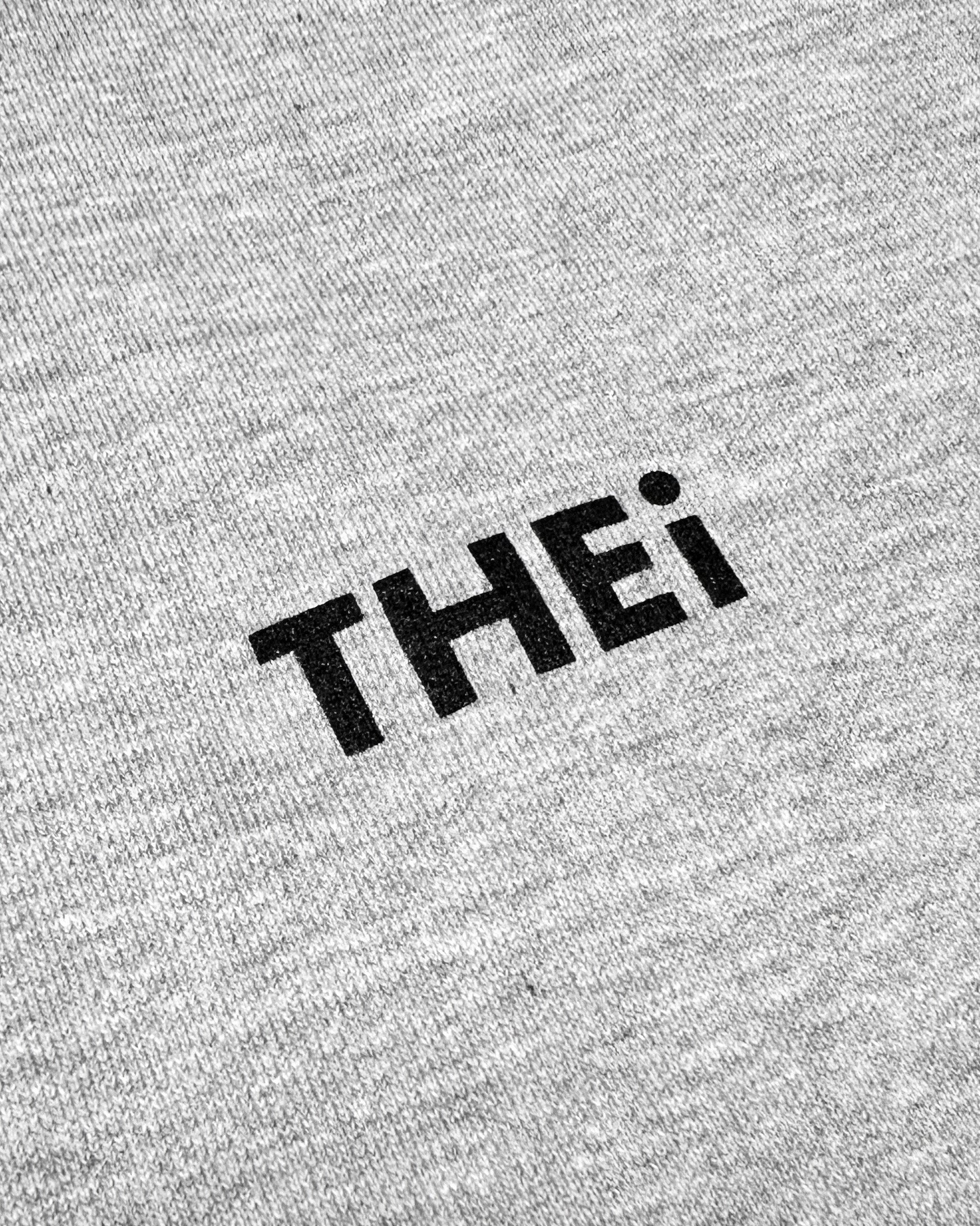 THEiのベーシックロゴを使用したヘヴィーウェイトのスウェットジップアップパーカー。
