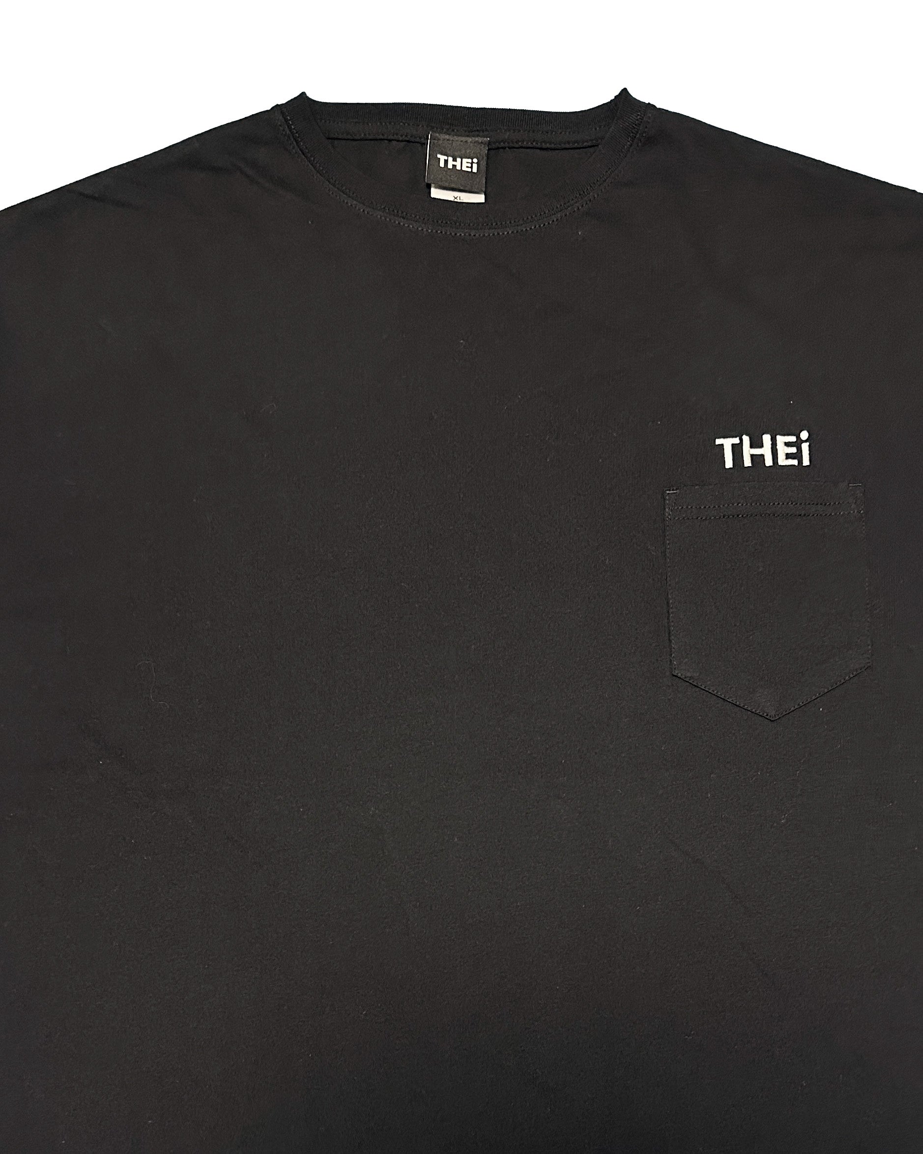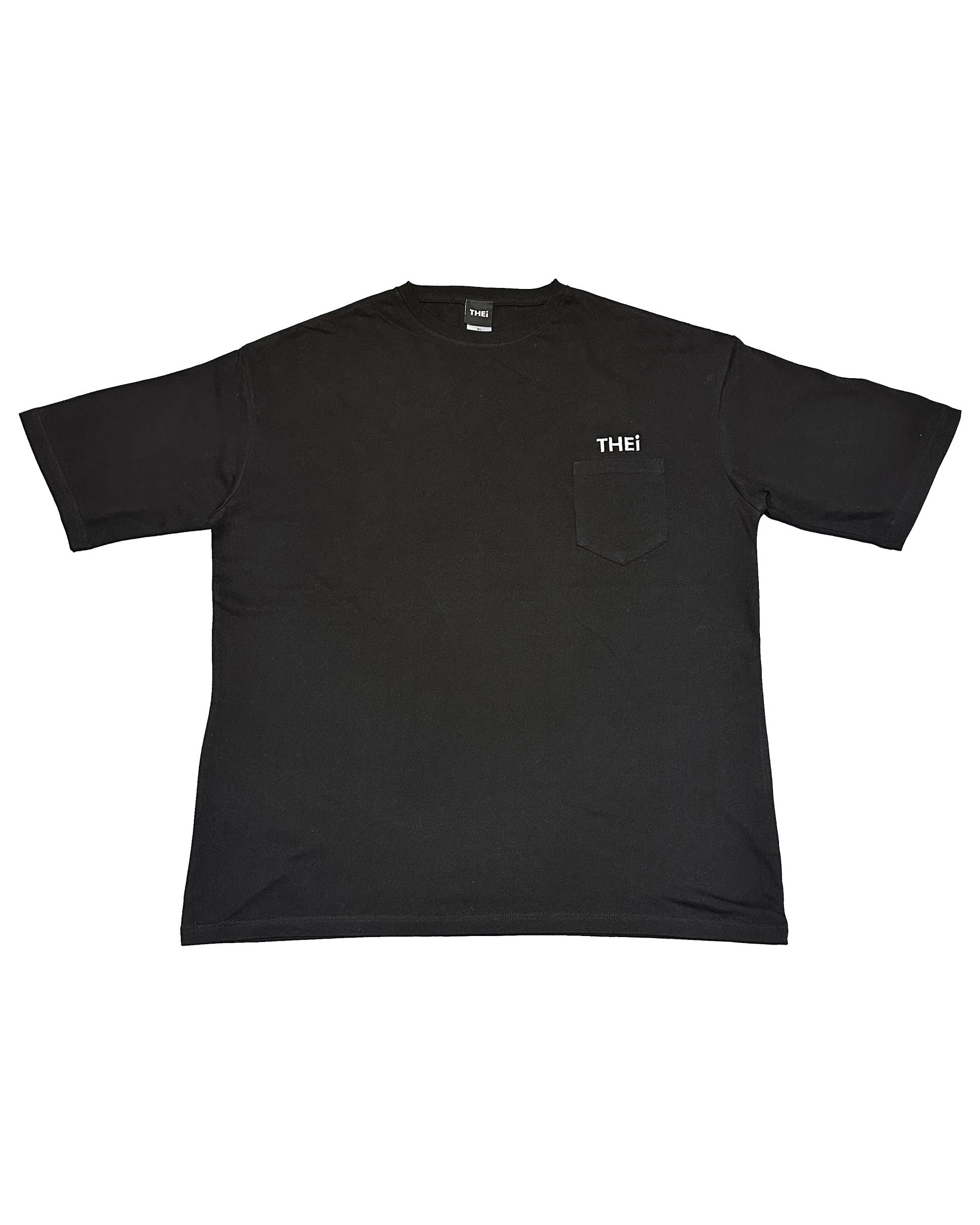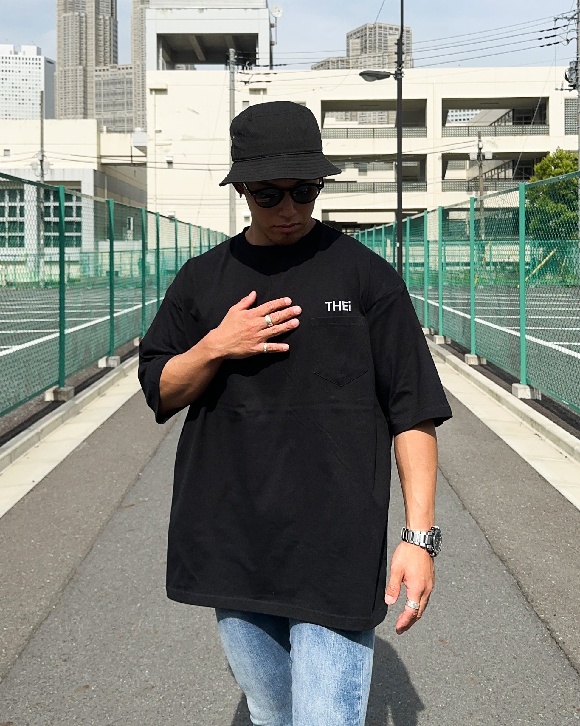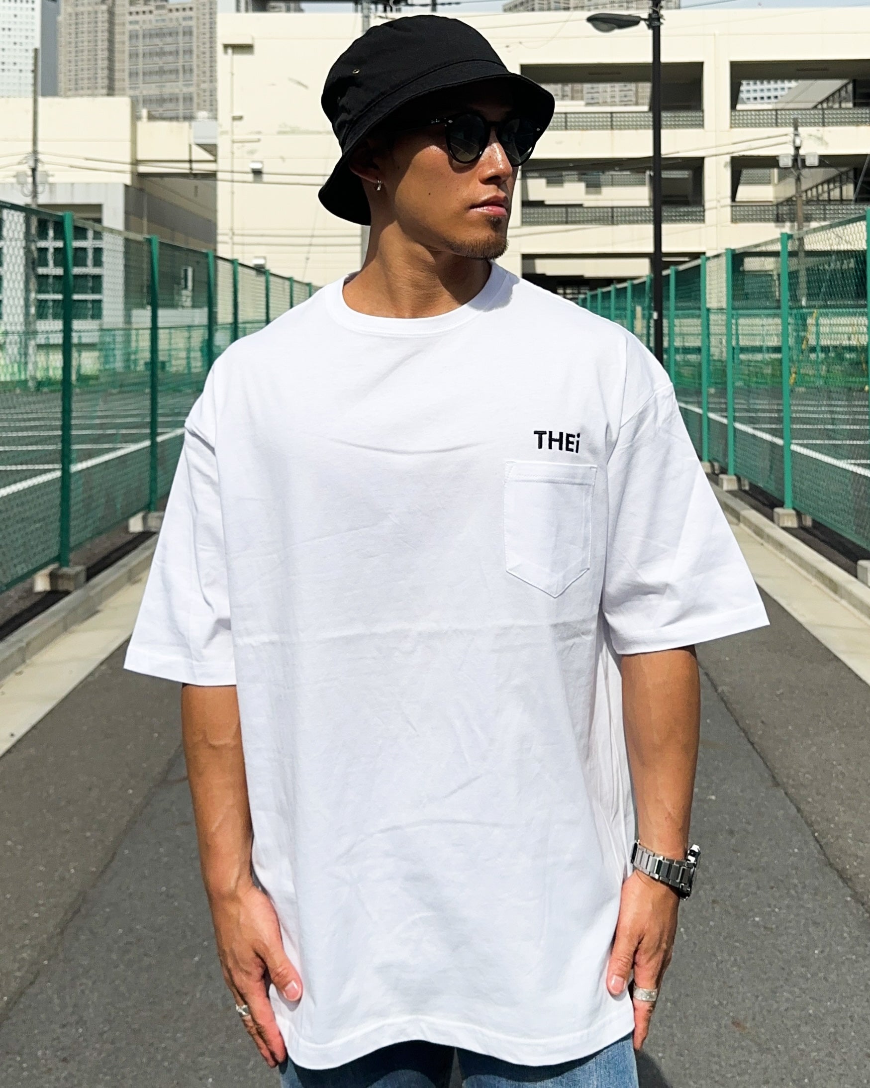 THEiのベーシックロゴを使用したポケット付きのビッグシルエット半袖Tシャツ。
