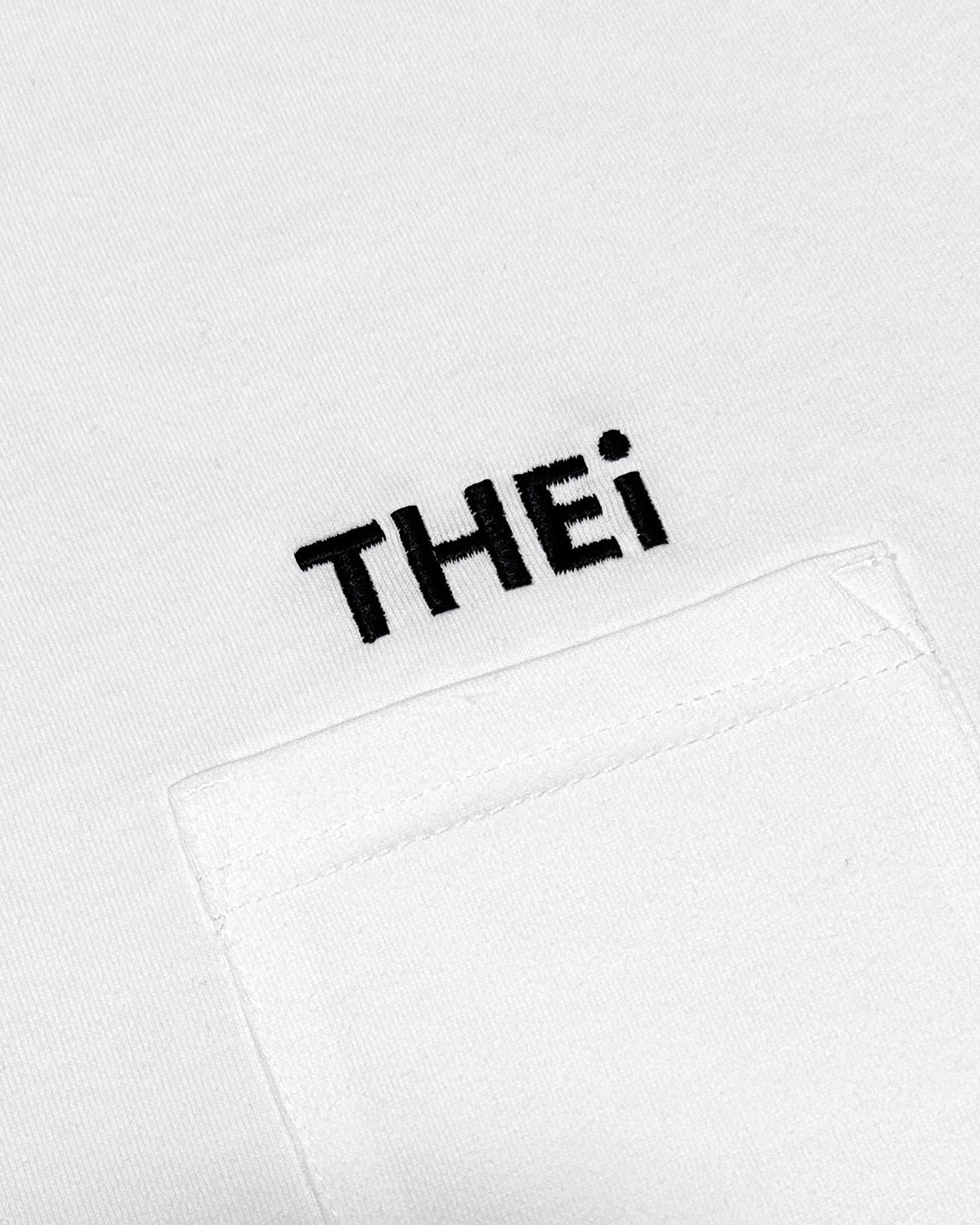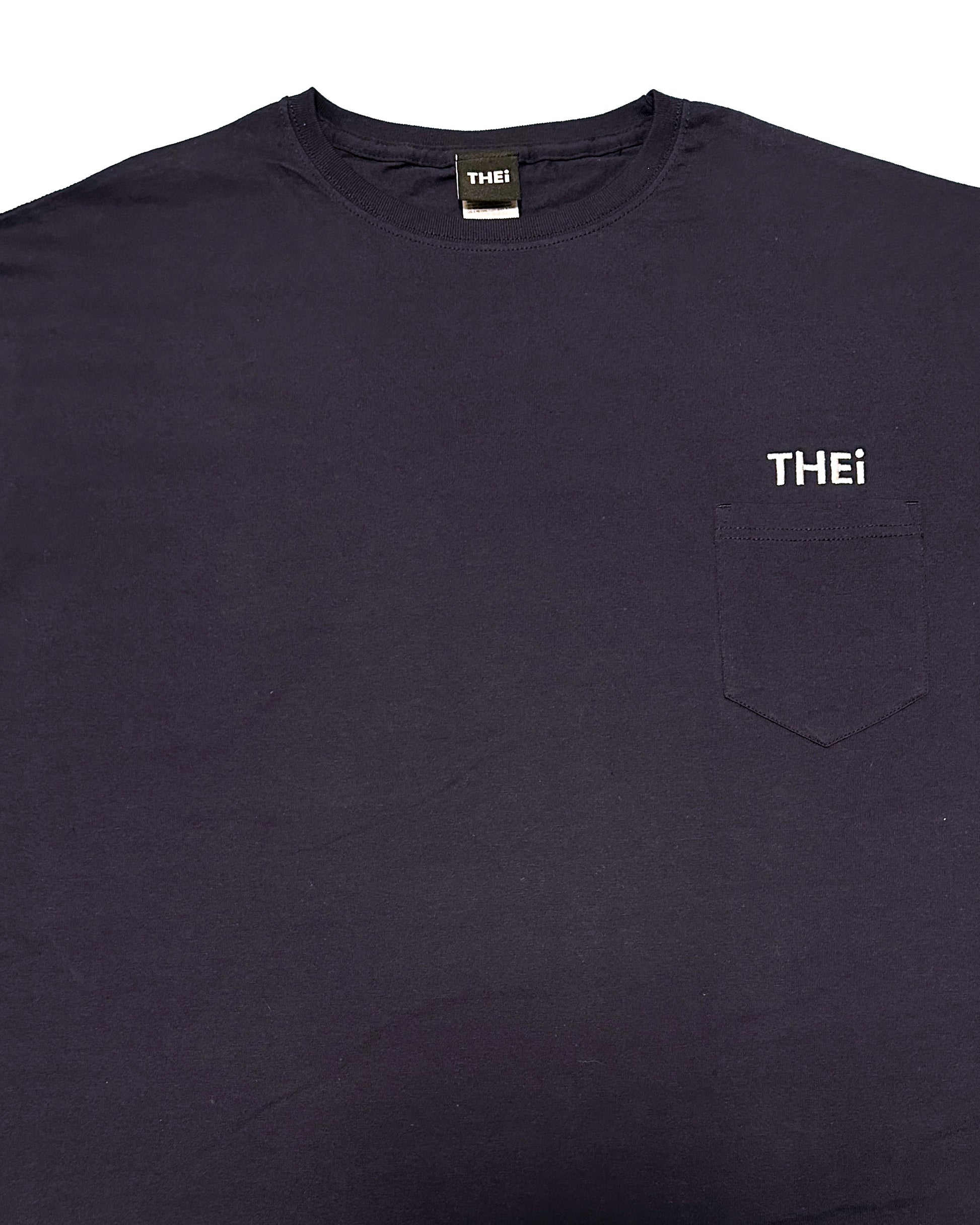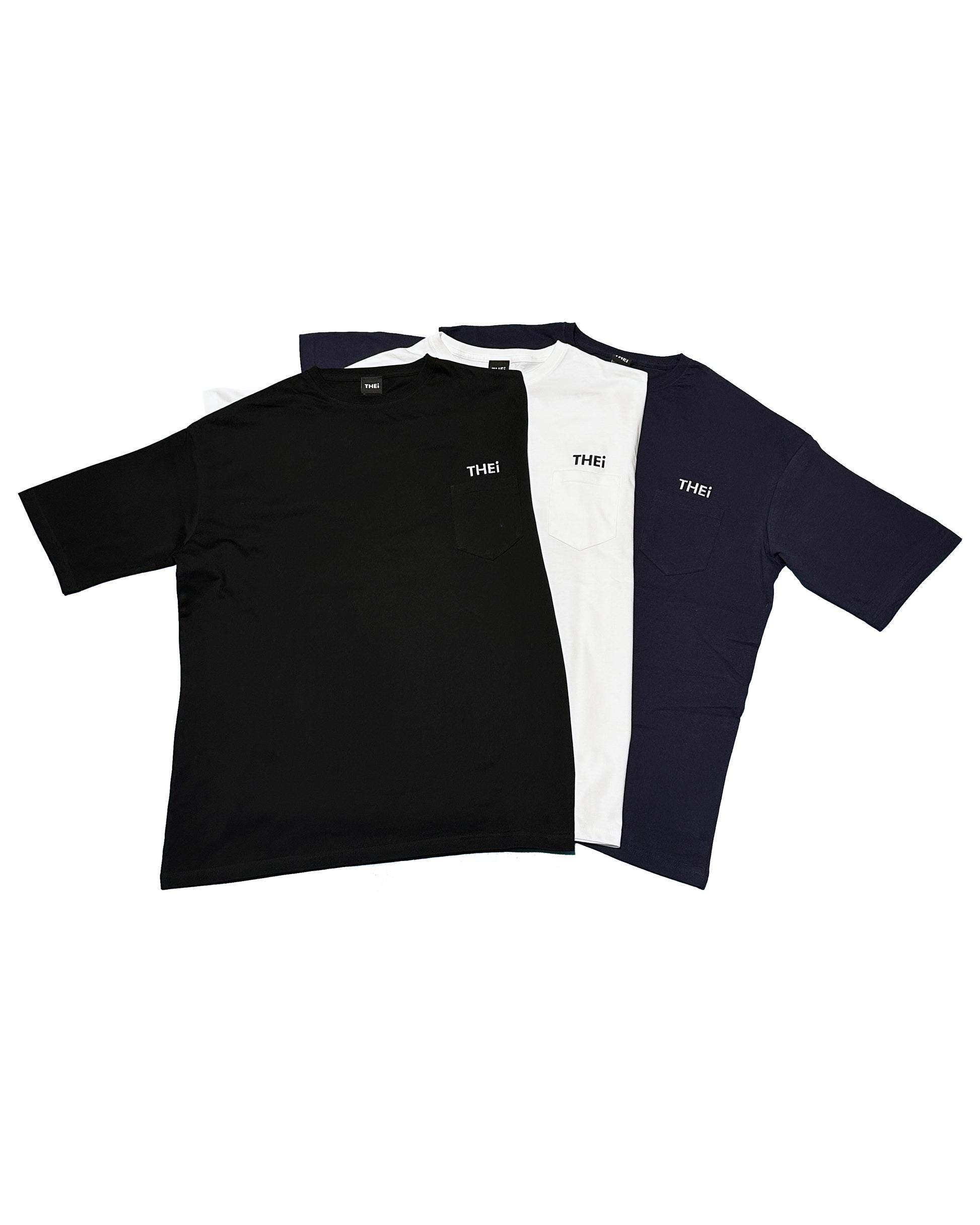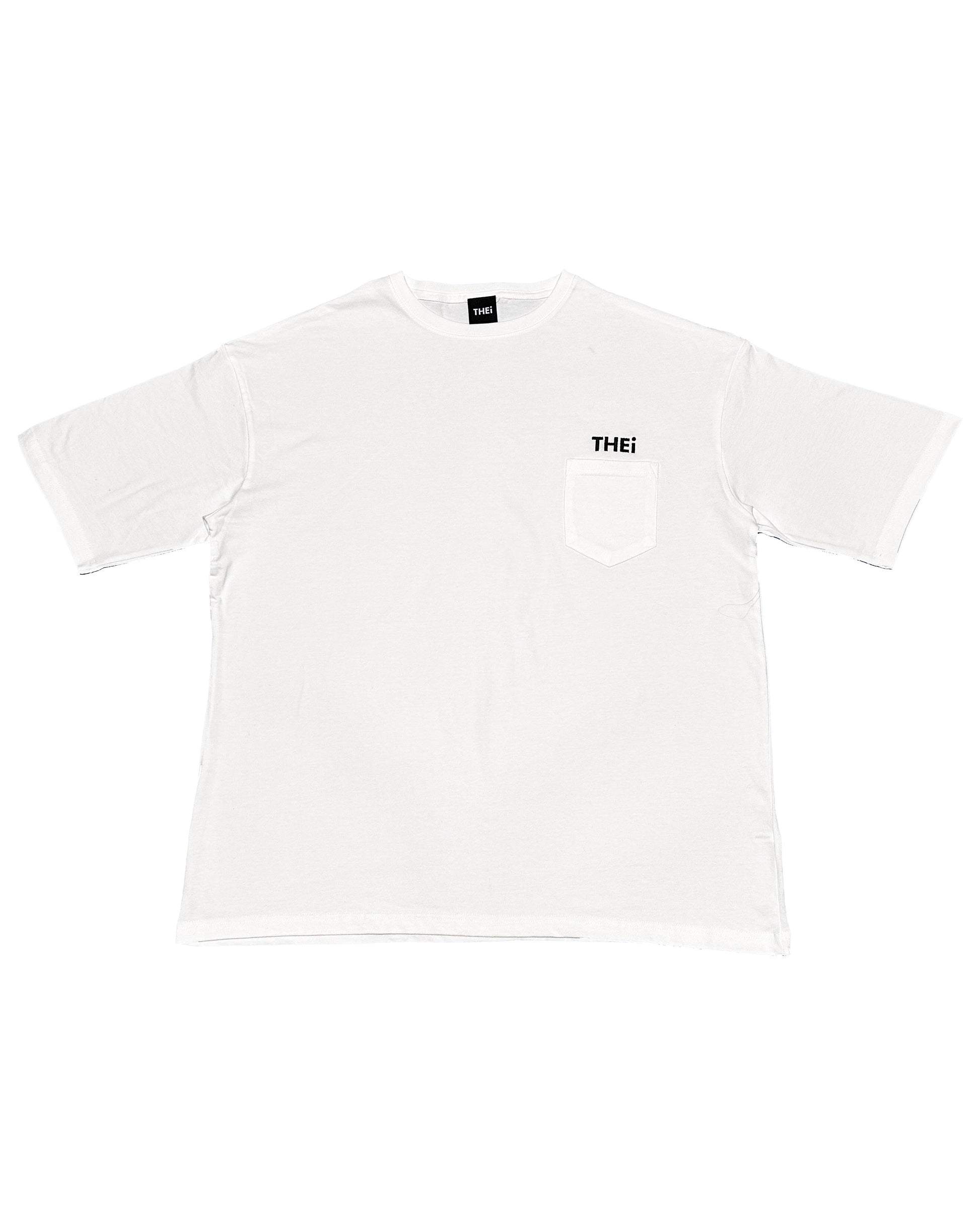 THEiのベーシックロゴを使用したポケット付きのビッグシルエット半袖Tシャツ。