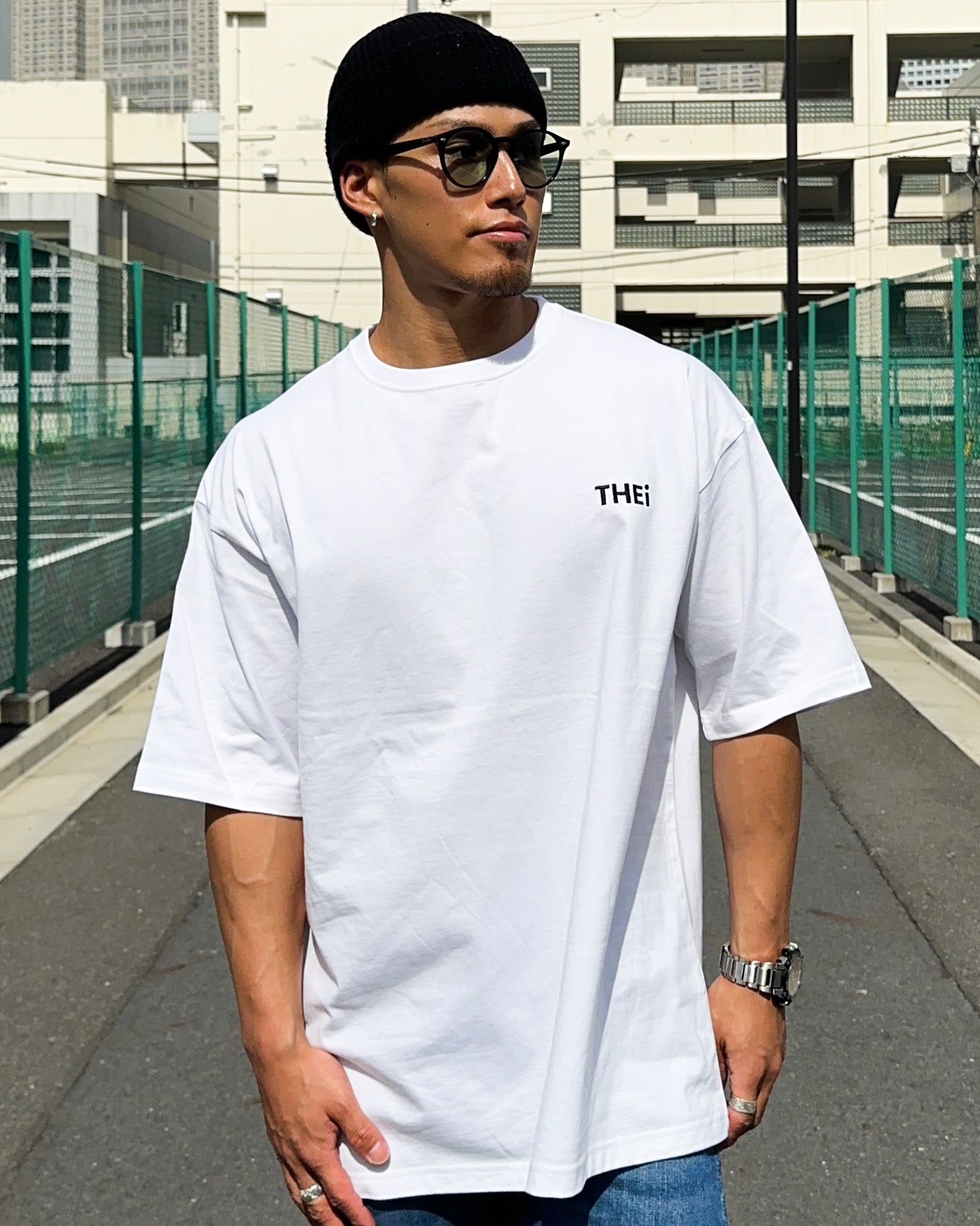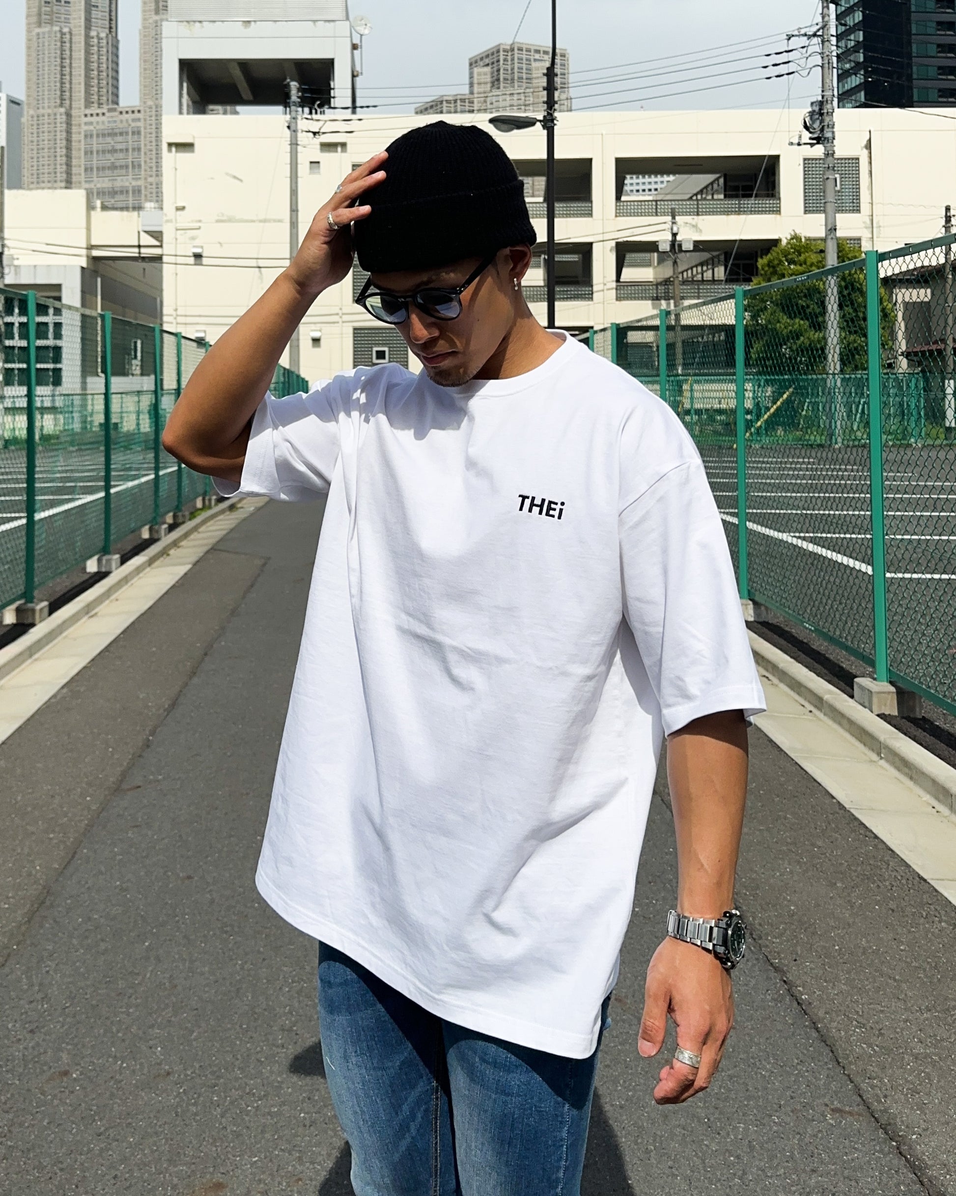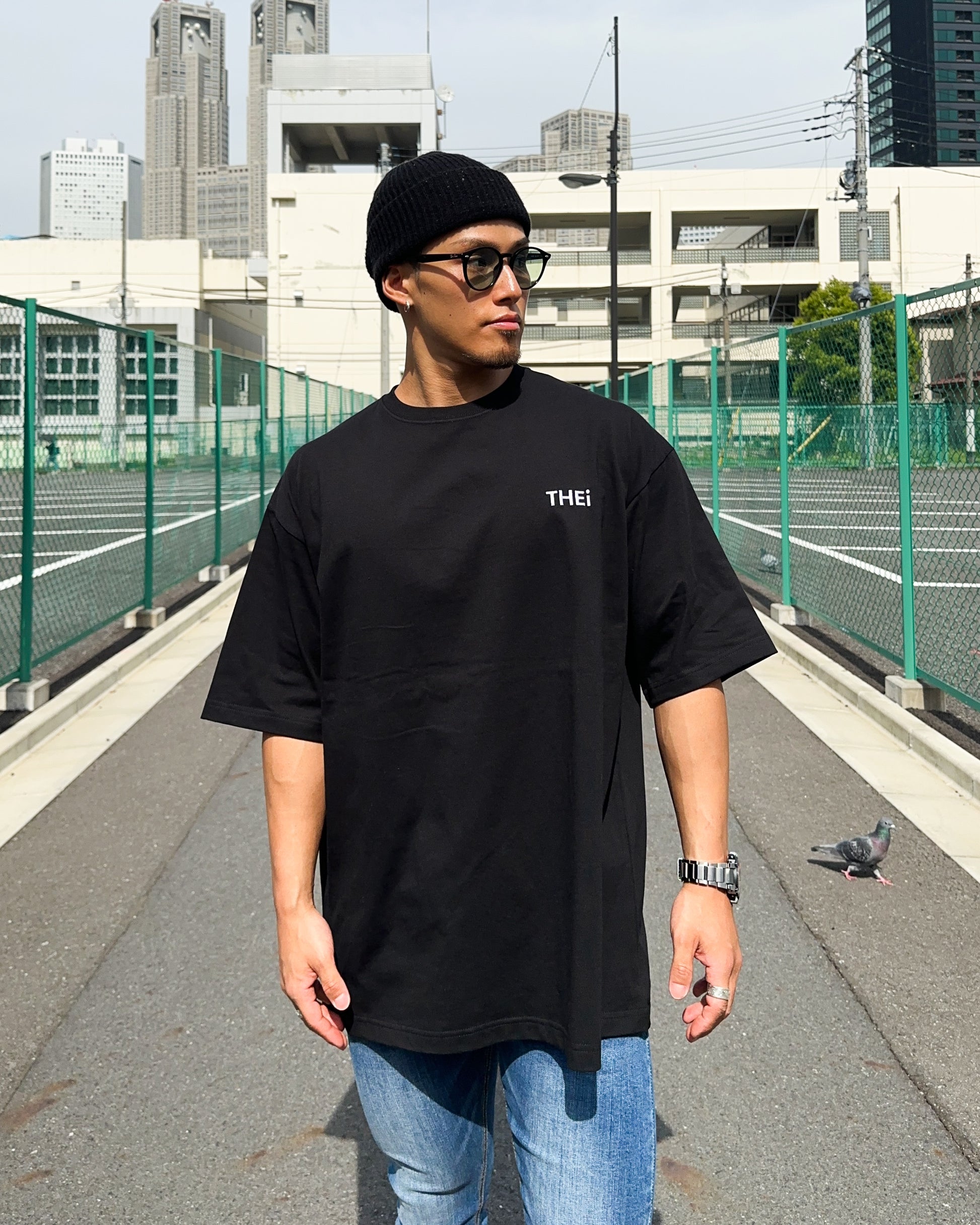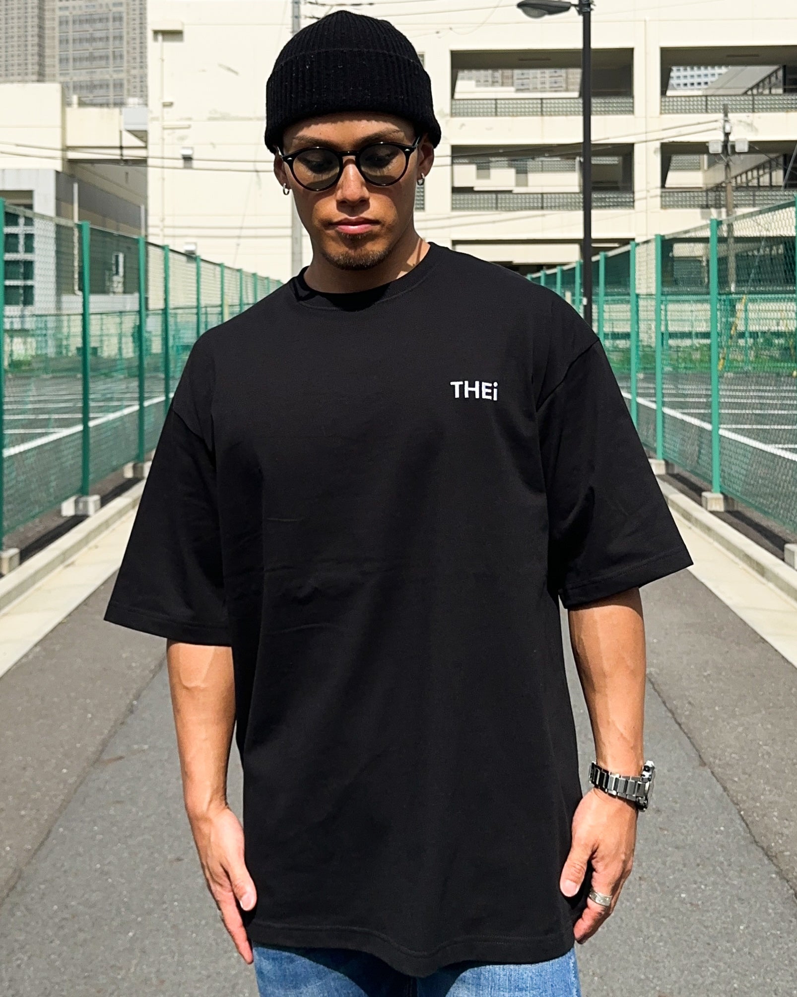 THEiのベーシックロゴを使用したビッグシルエット半袖Tシャツ。