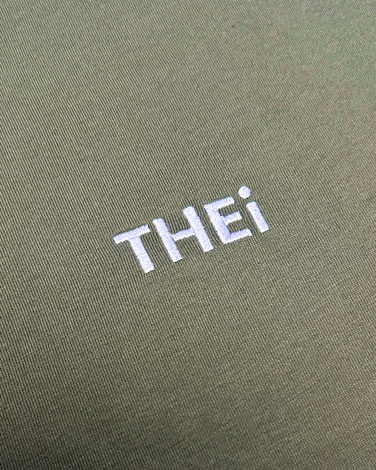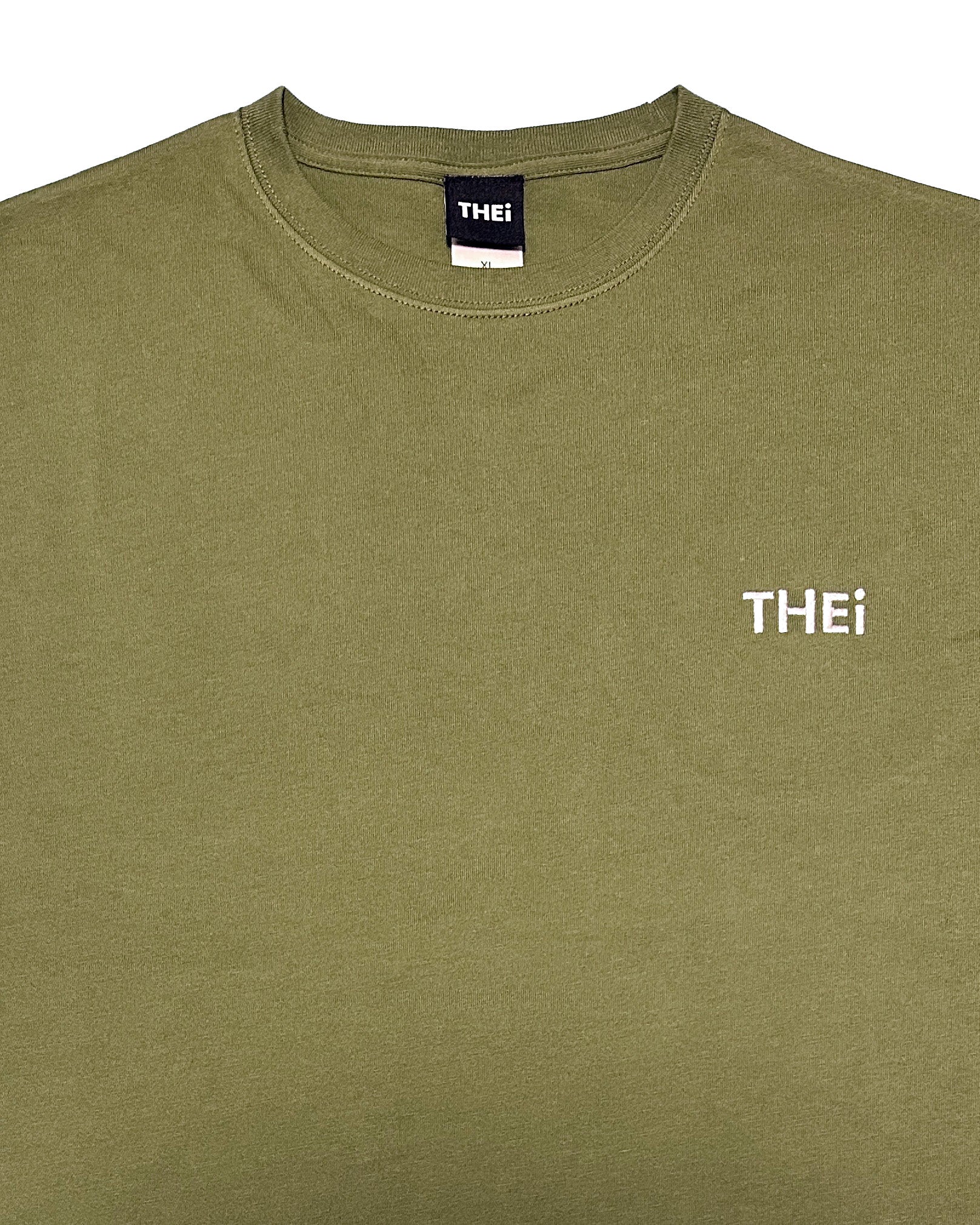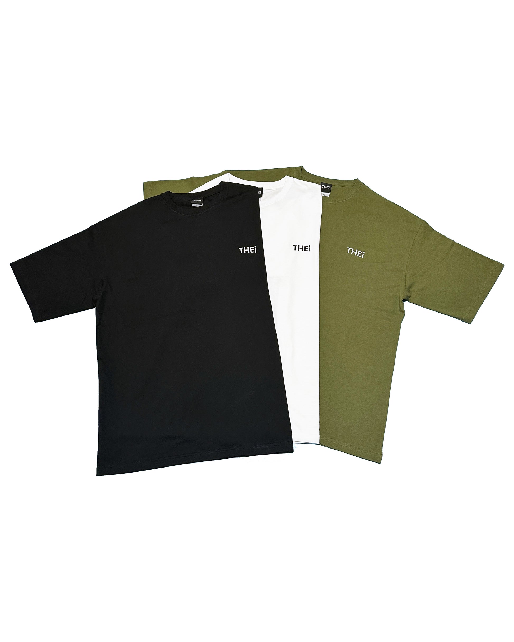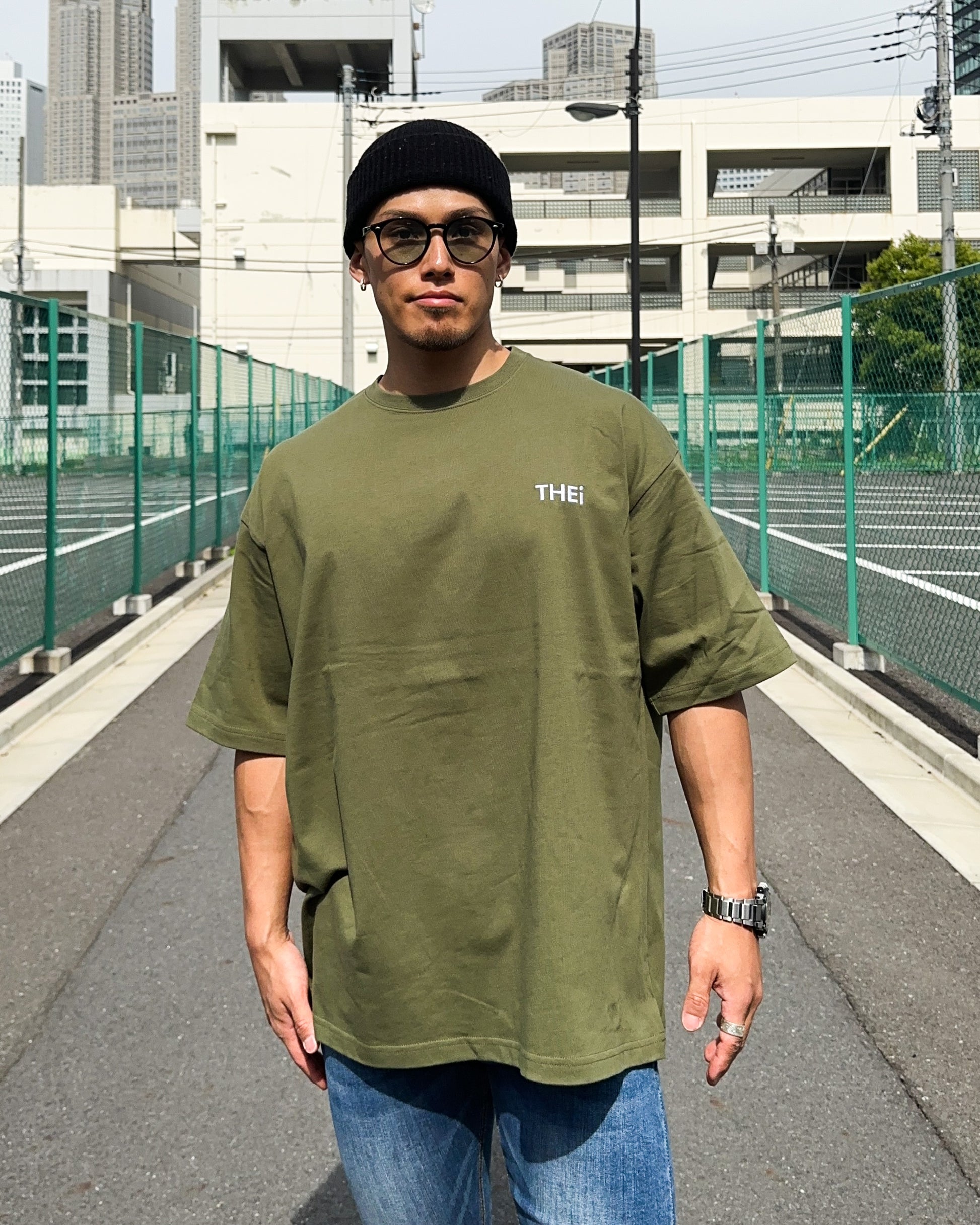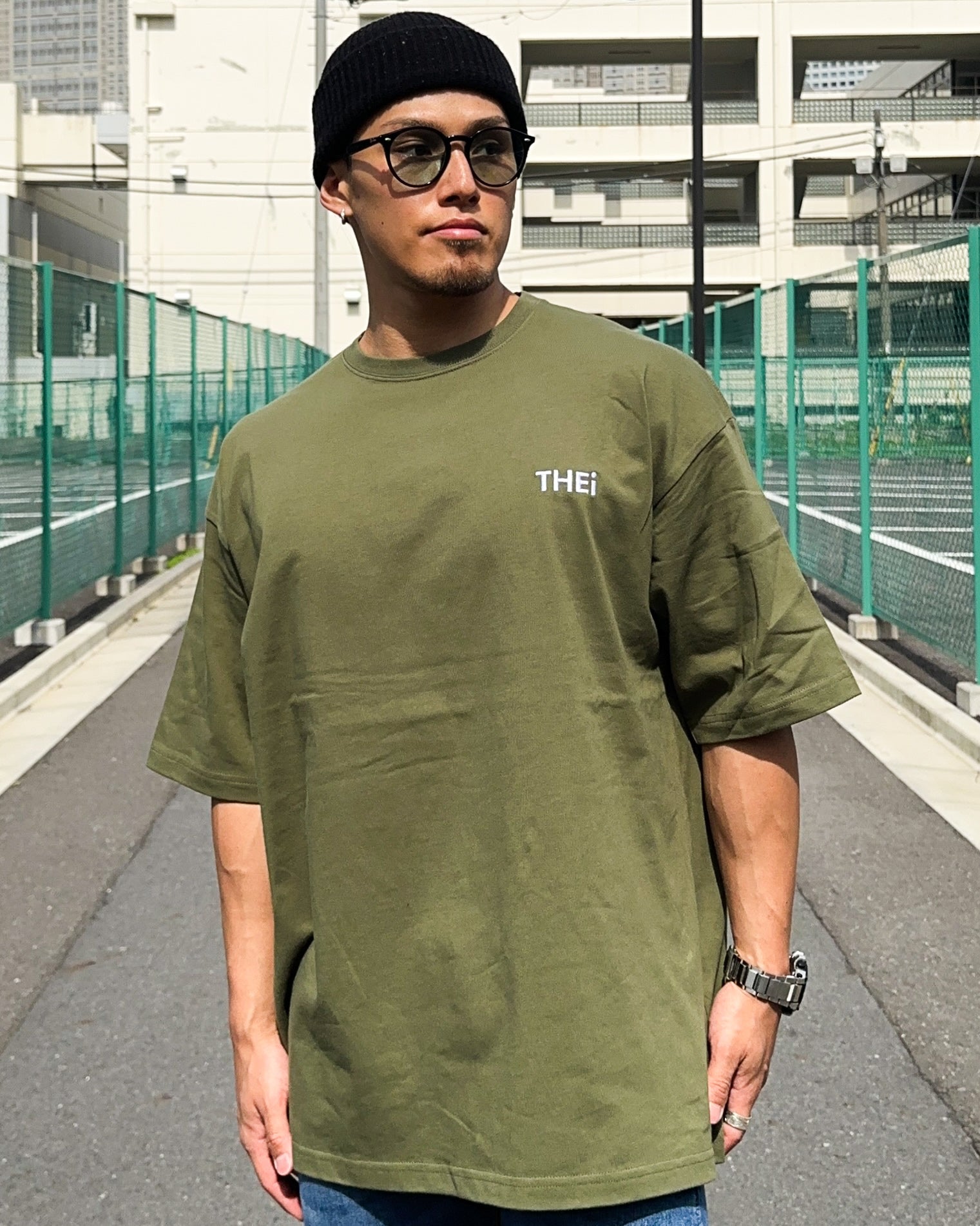 THEiのベーシックロゴを使用したビッグシルエット半袖Tシャツ。
