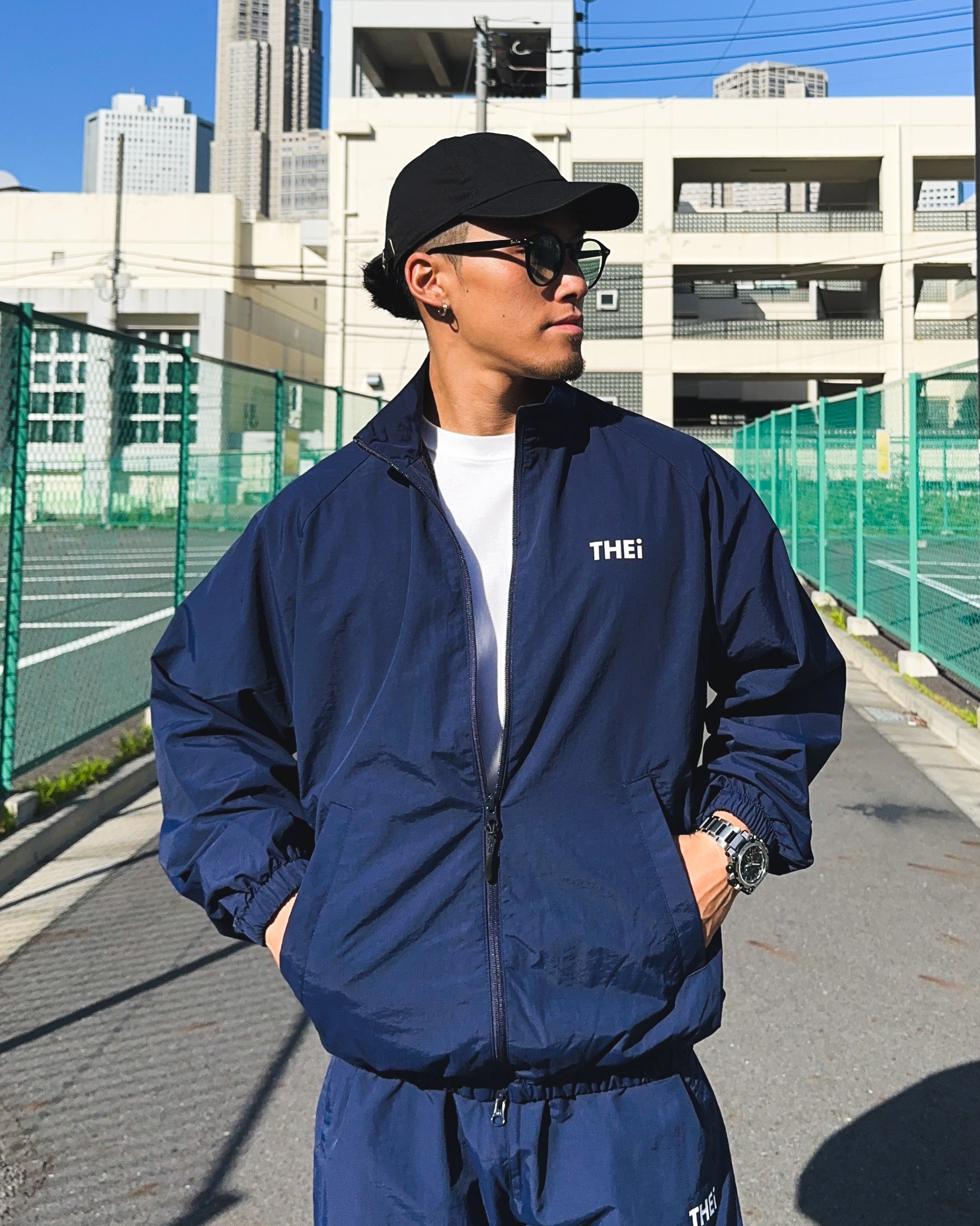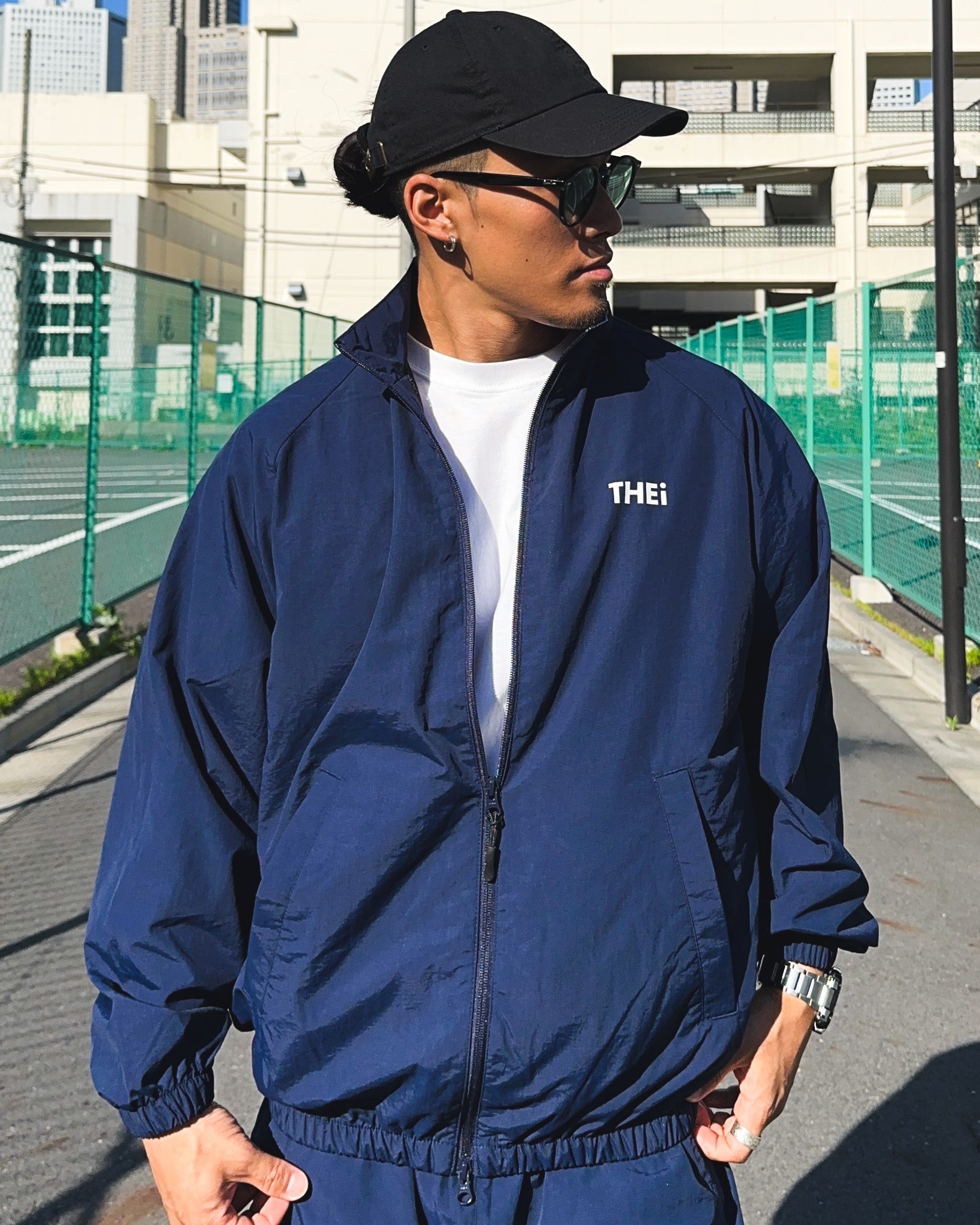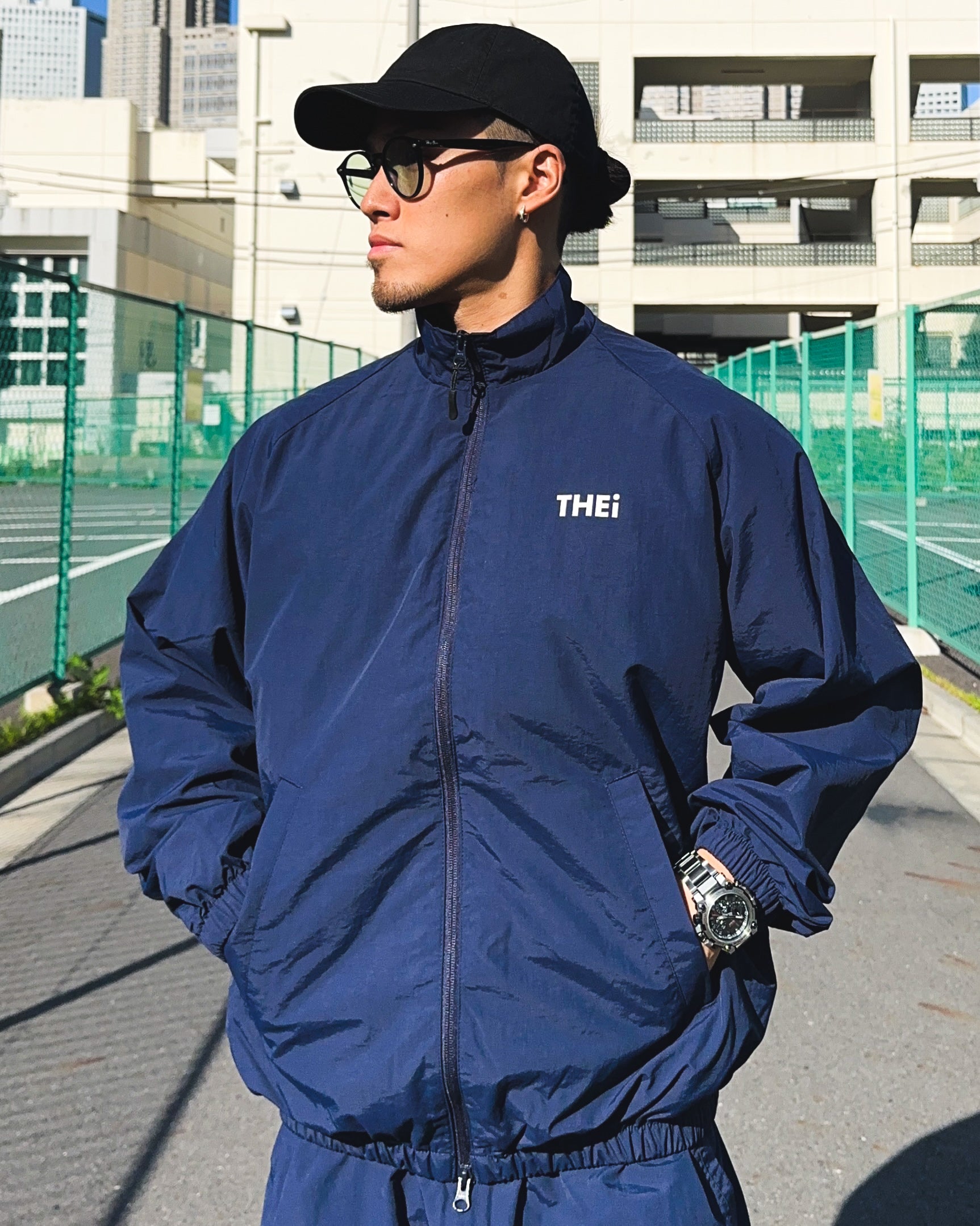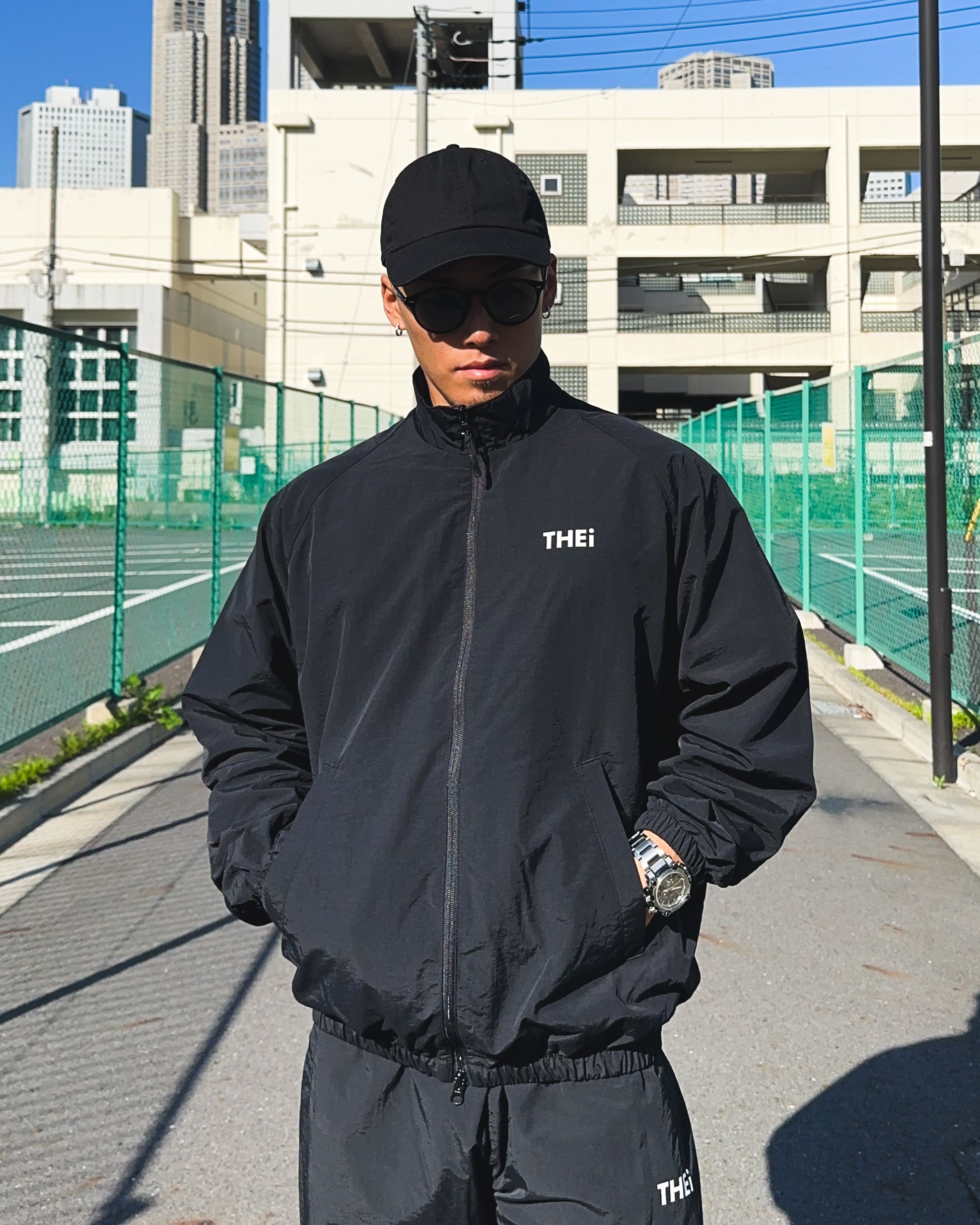 THEiのベーシックロゴを使用したナイロントラックジャケット。
