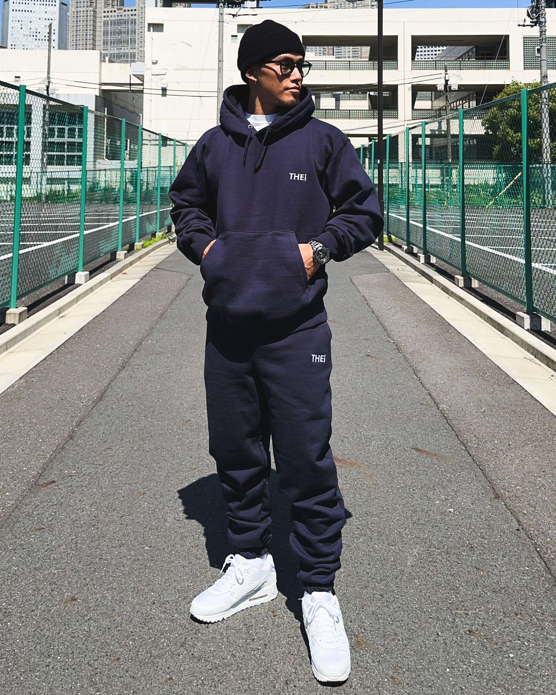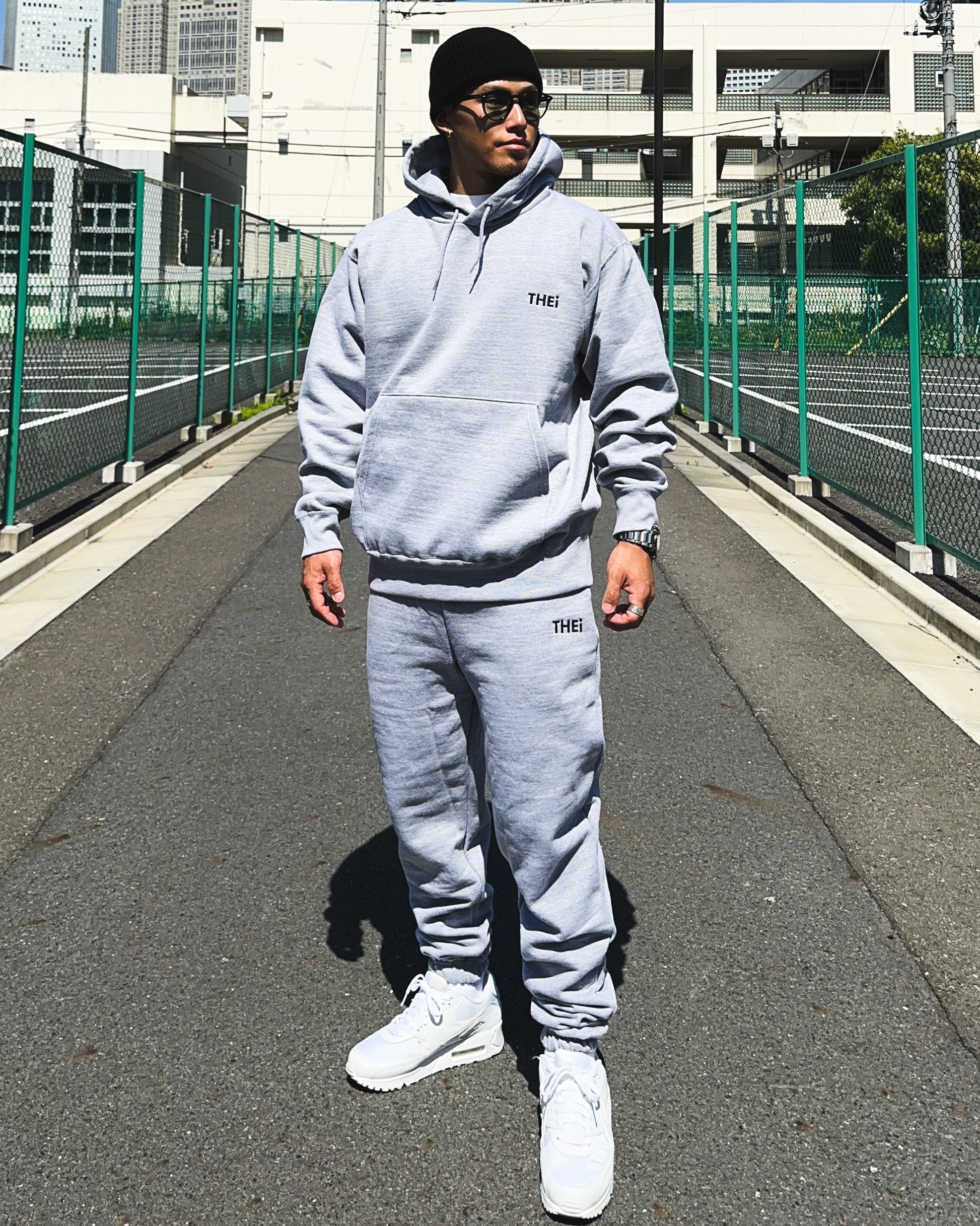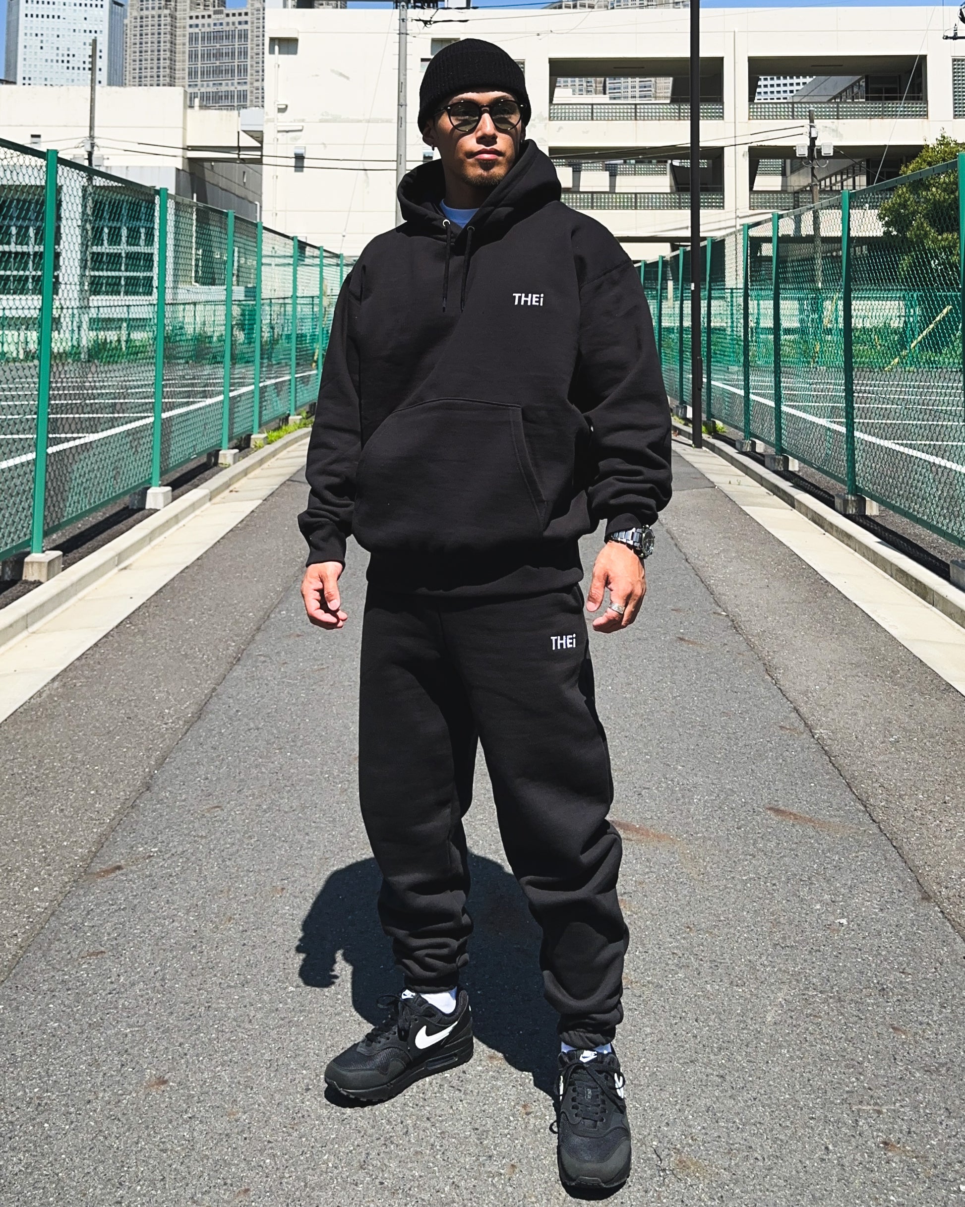 THEiのベーシックロゴを使用したヘヴィーウェイトのスウェットプルオーバーパーカー。