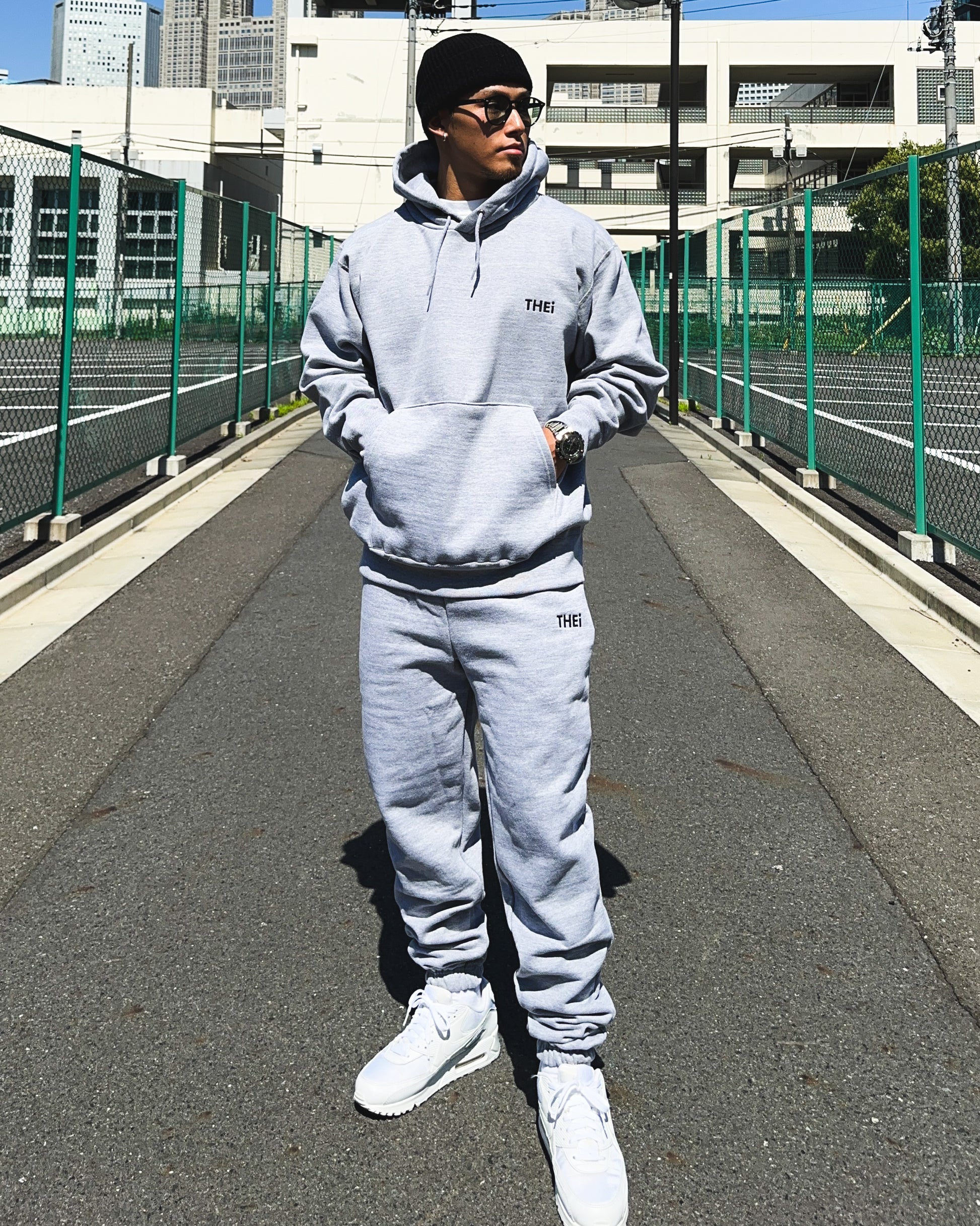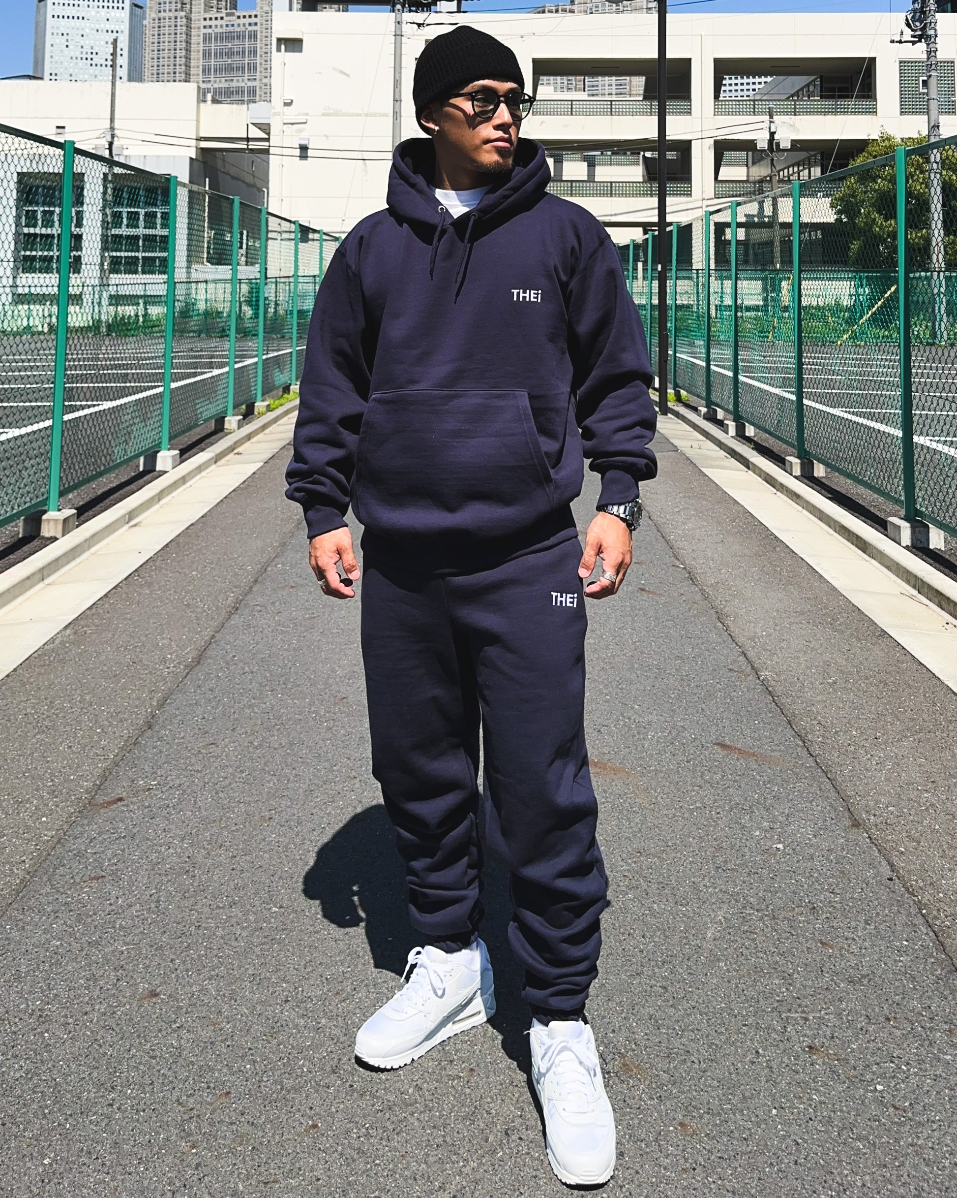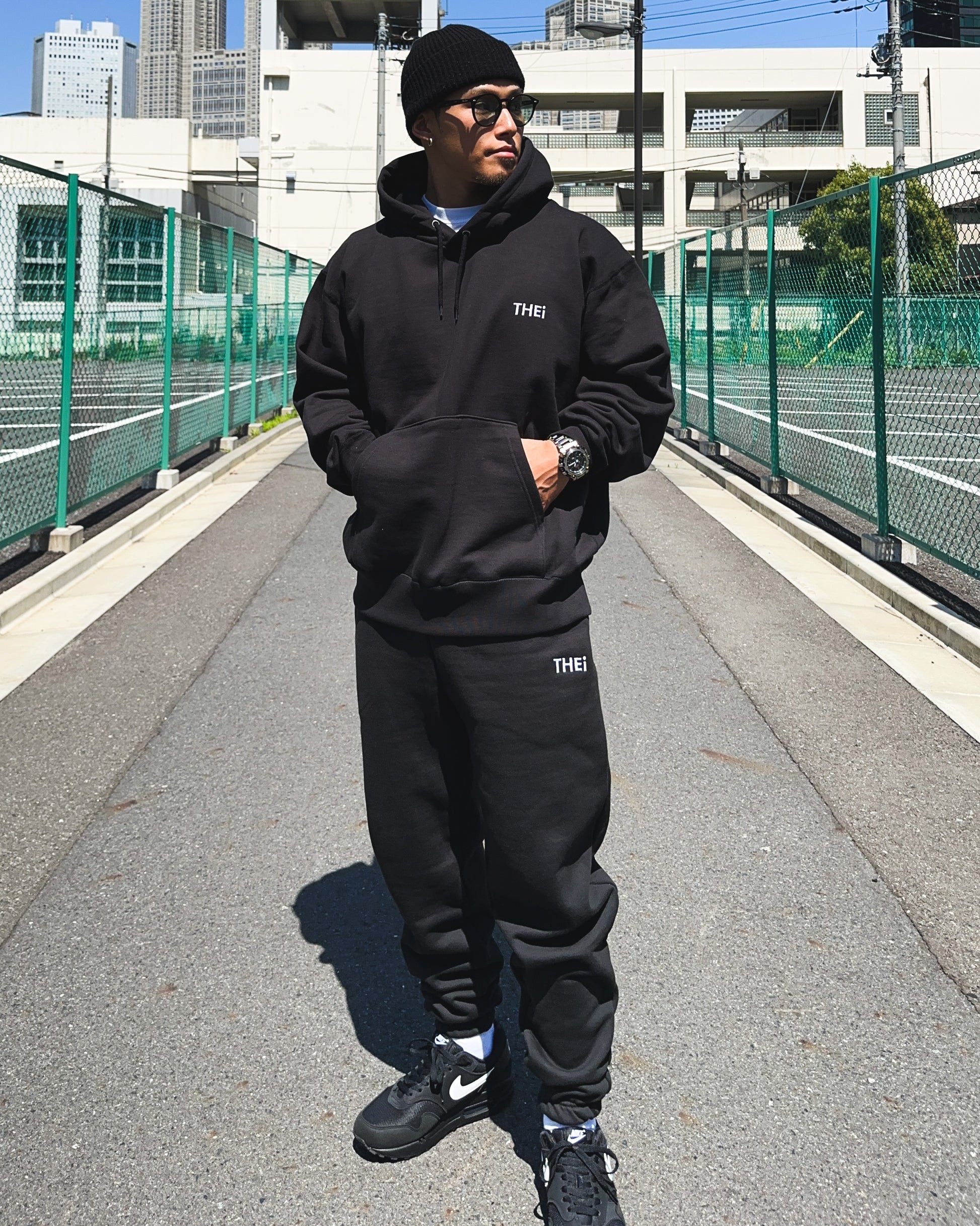 THEiのベーシックロゴを使用したヘヴィーウェイトのスウェットプルオーバーパーカー。