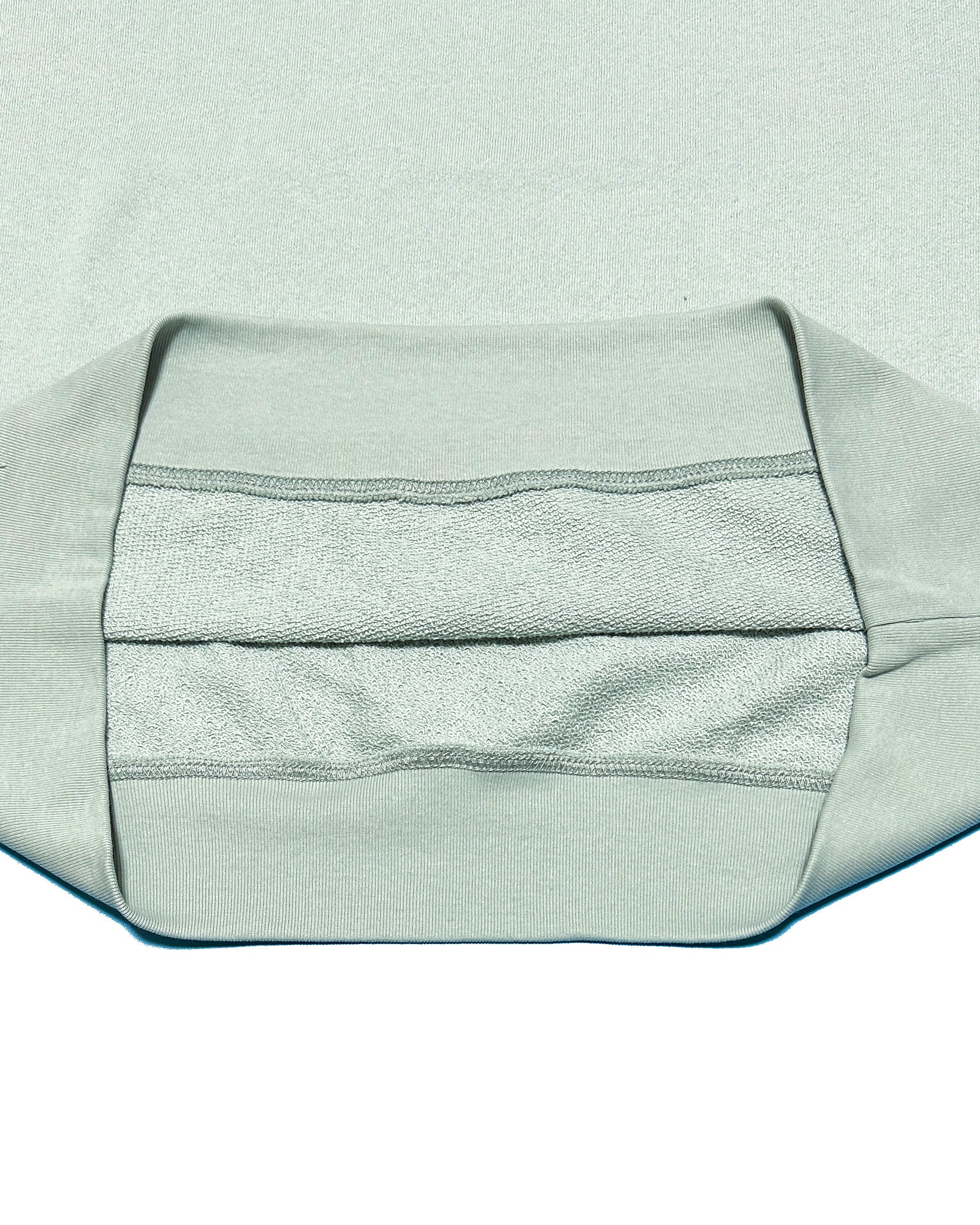 旧式編み機の「トンプキン」を使用し、通常の編み機より時間をかけて編んだヴィンテージ風の裏パイル生地を採用。