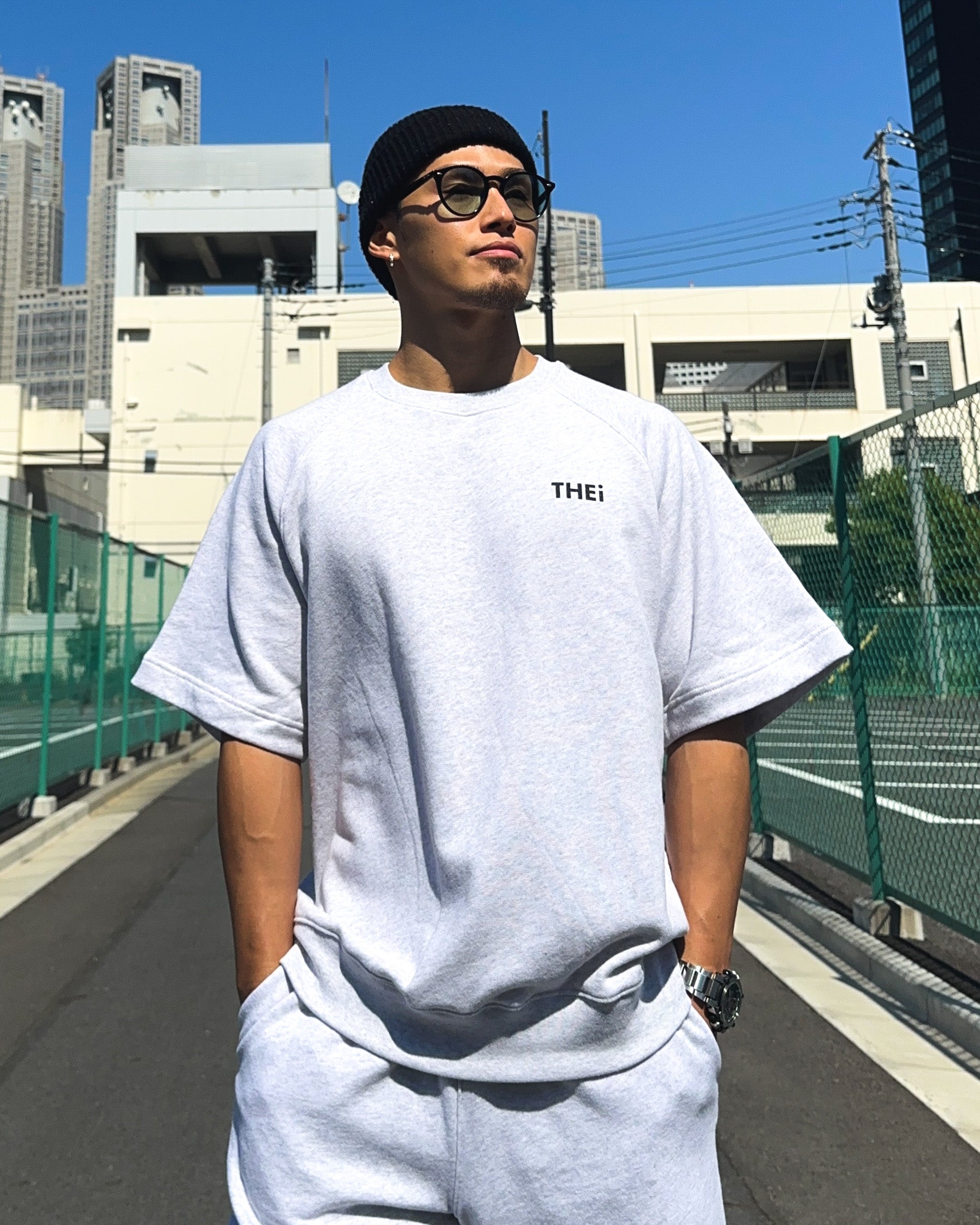 THEiのベーシックロゴを使用したスウェット半袖Tシャツ。