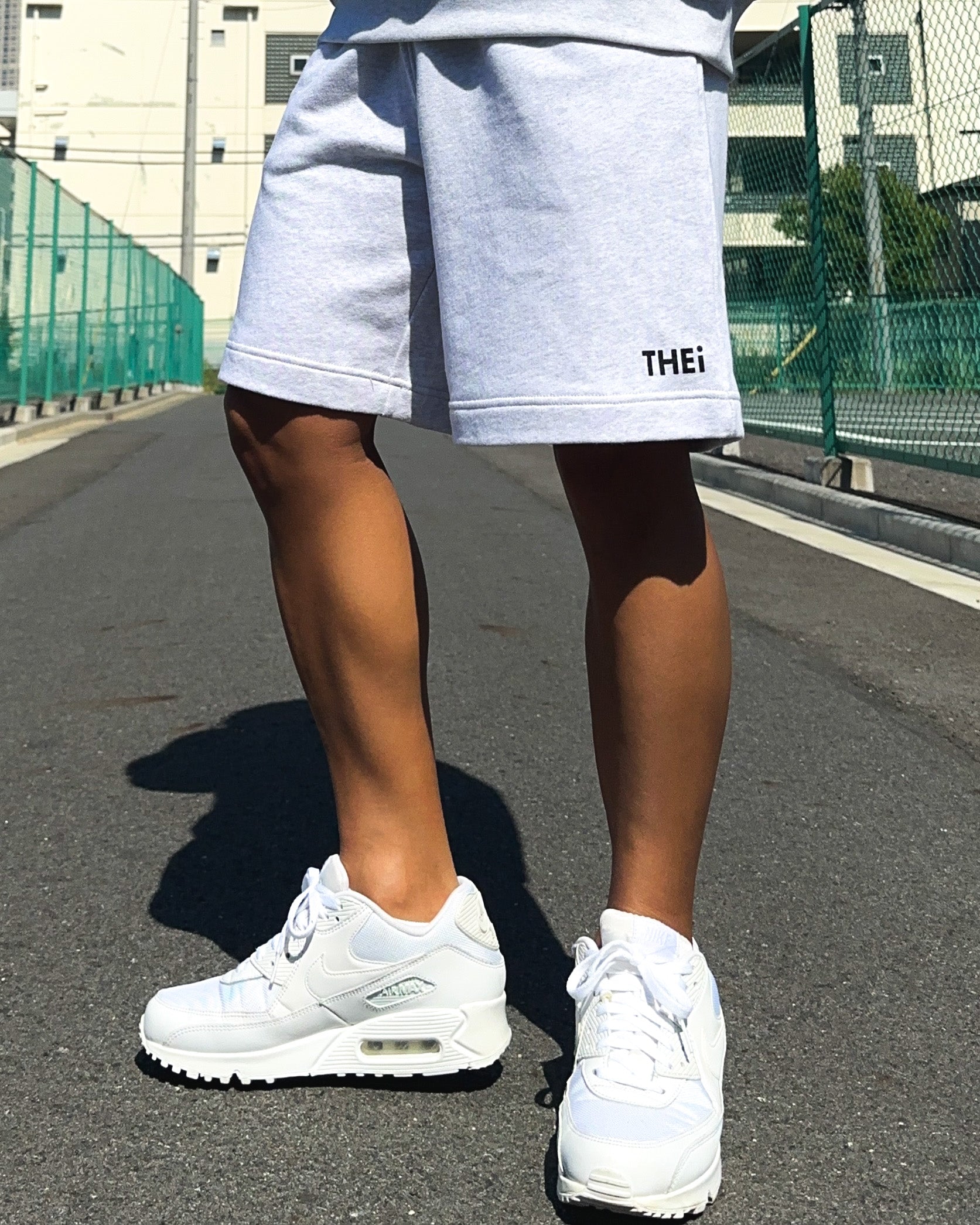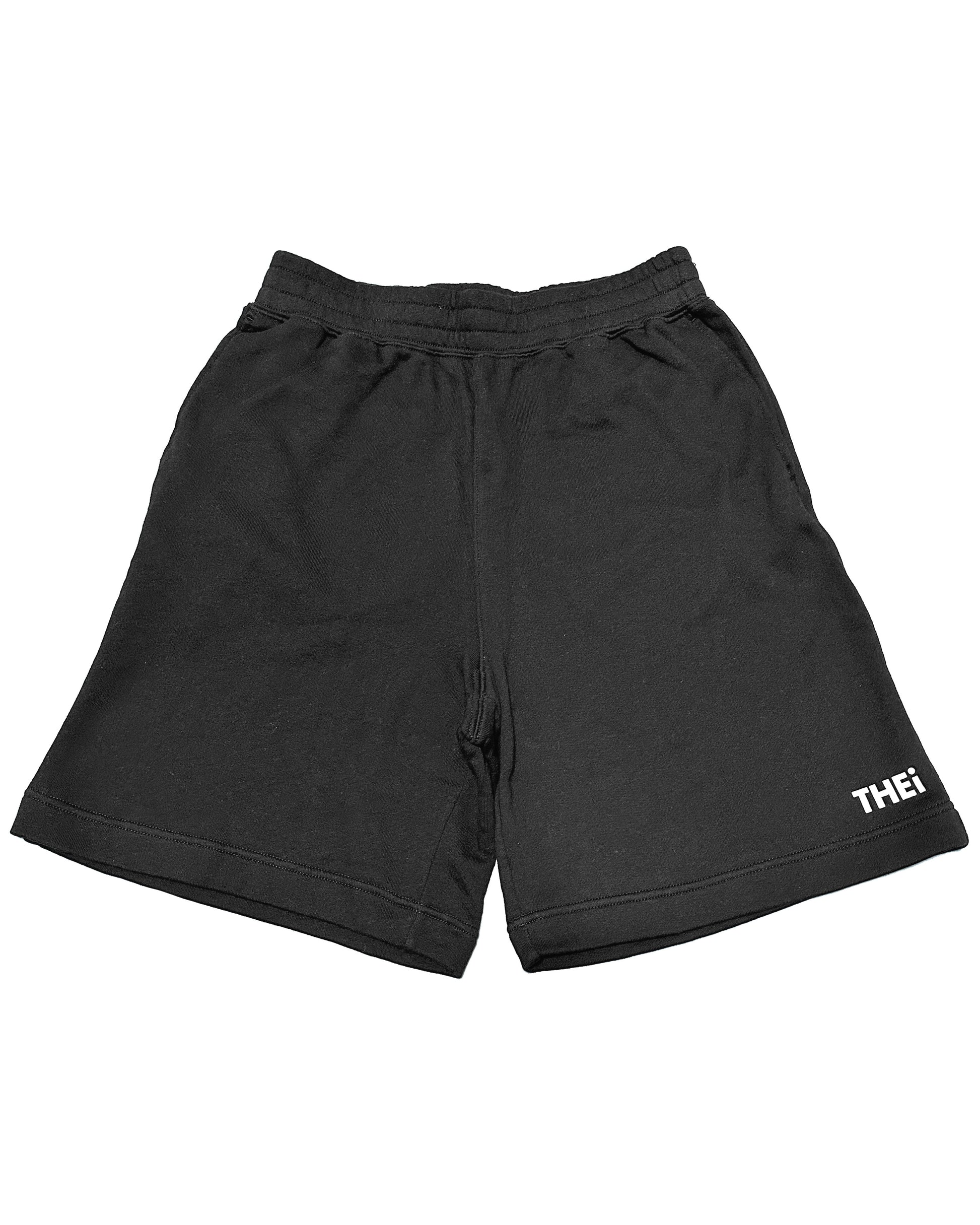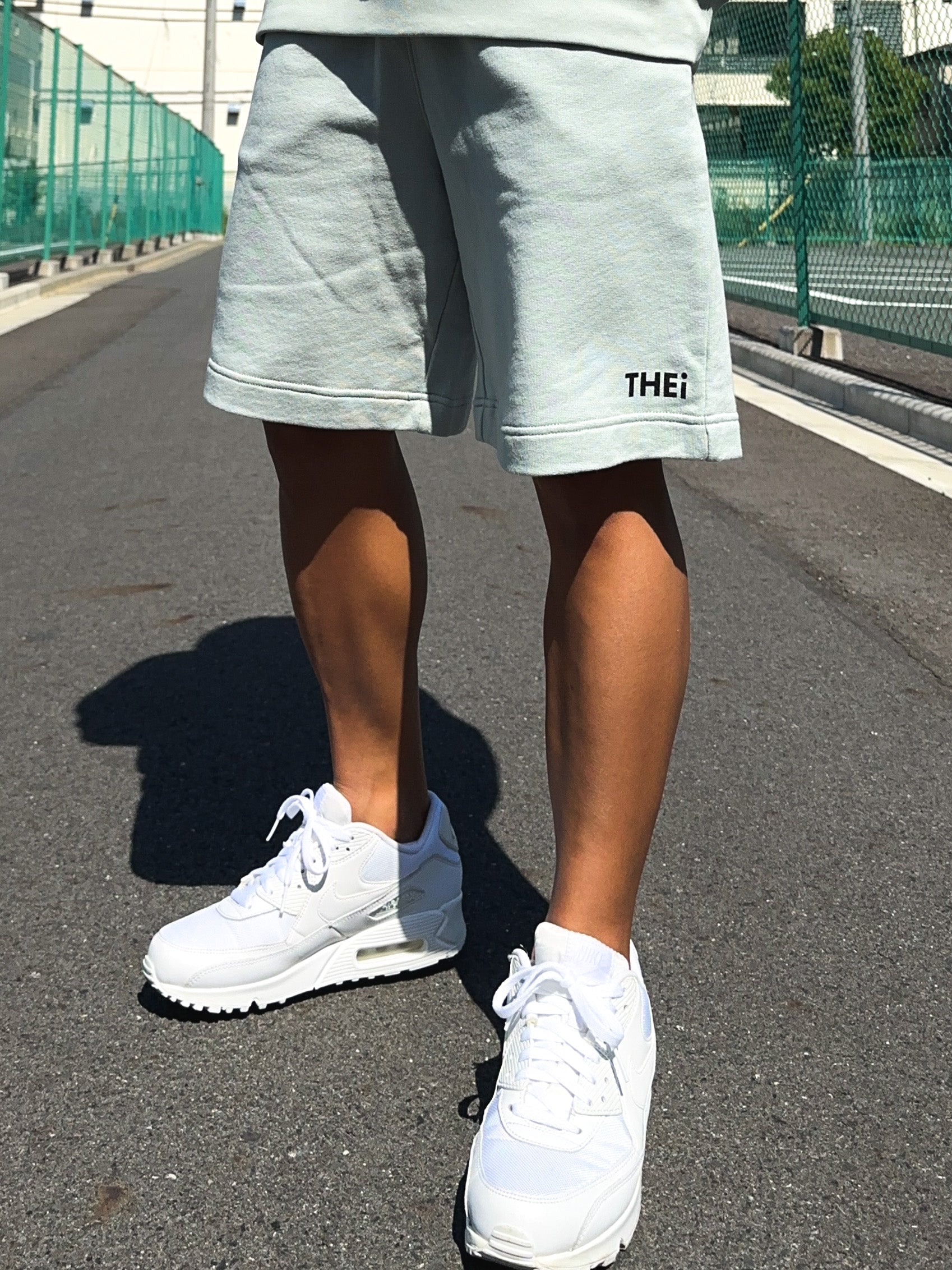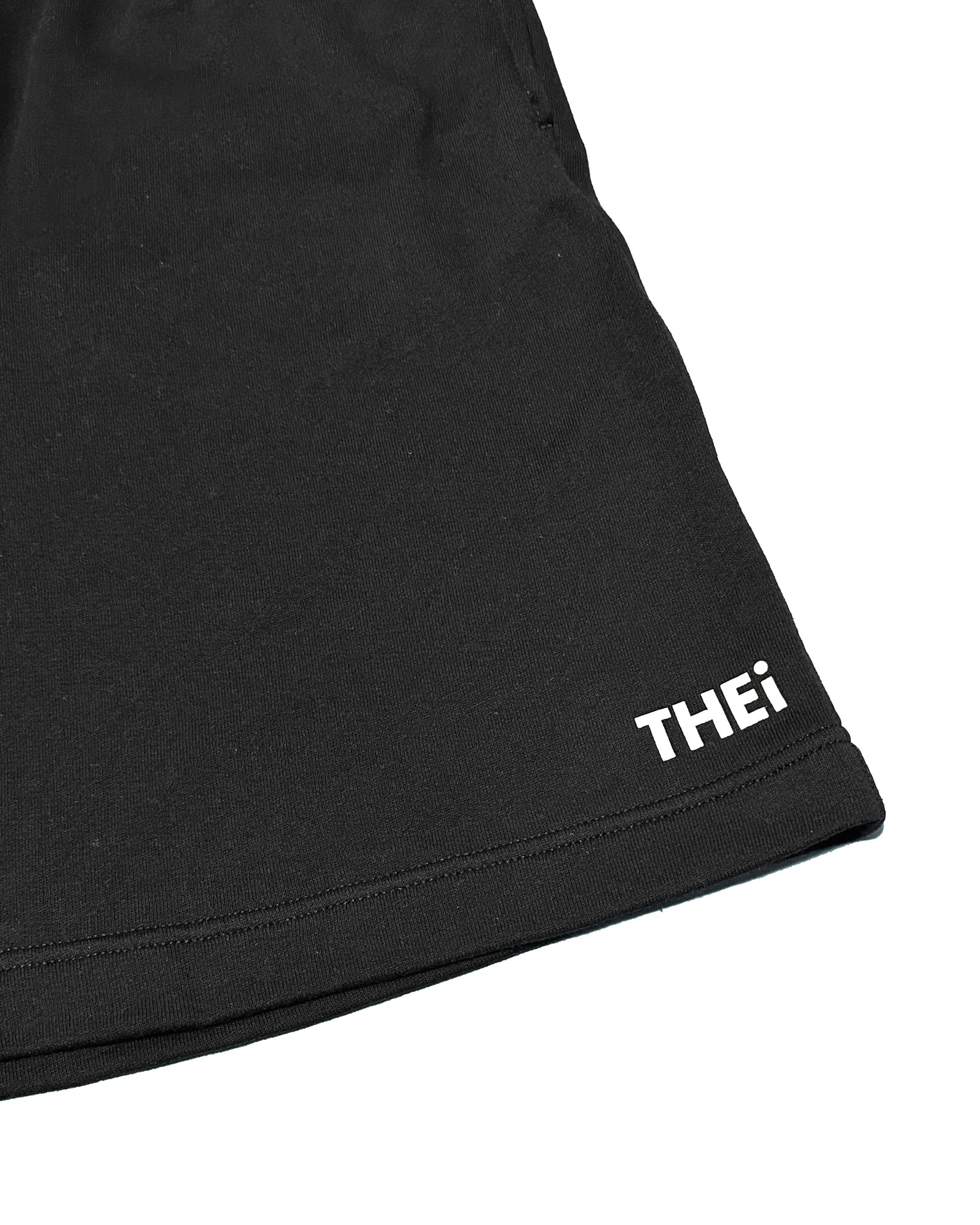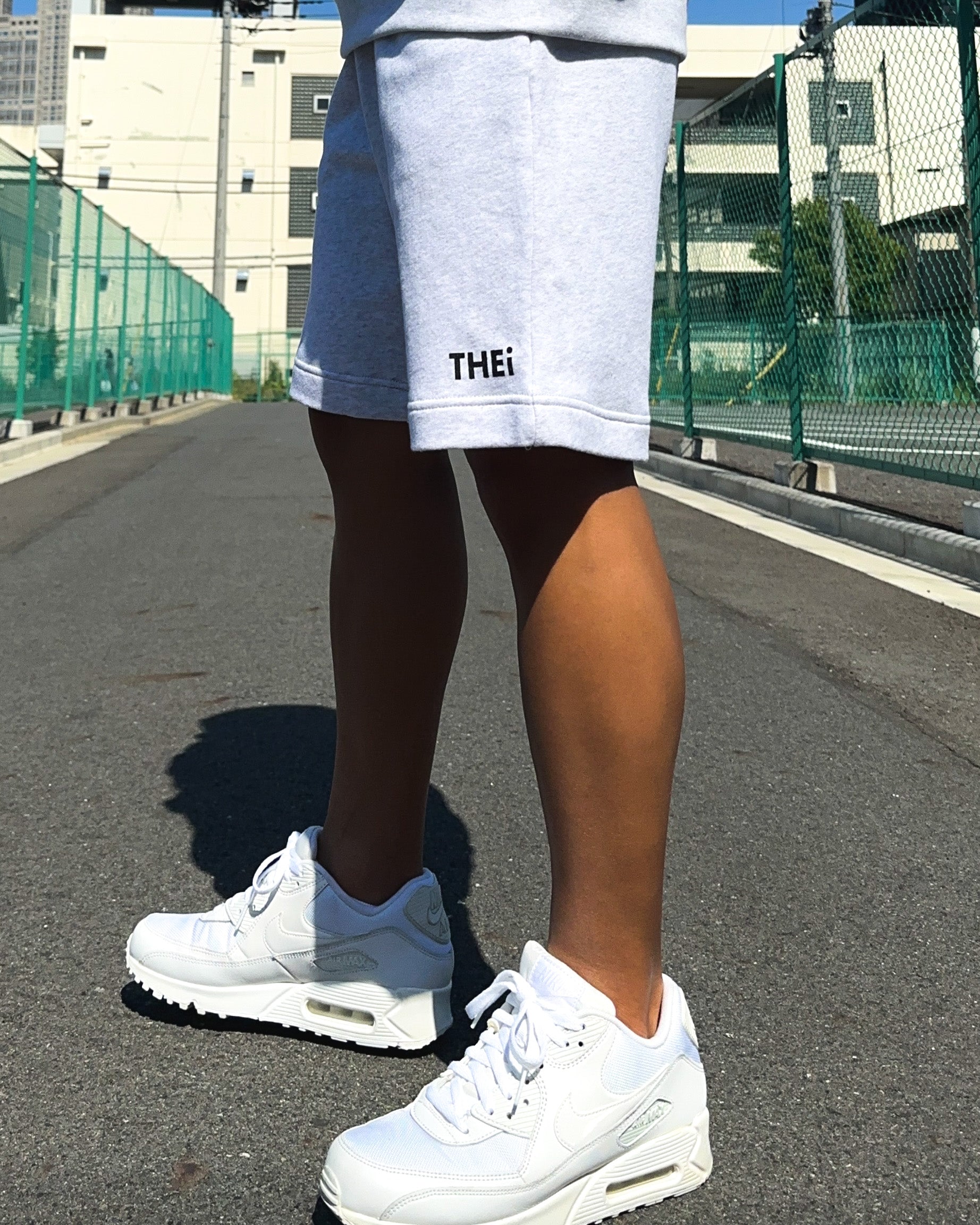 THEiのベーシックロゴを使用したスウェットショーツ。