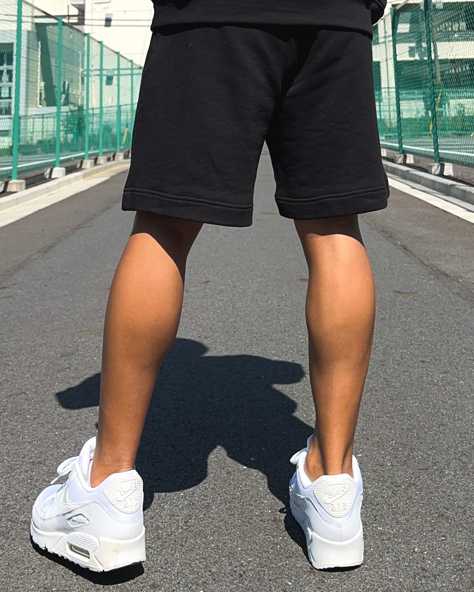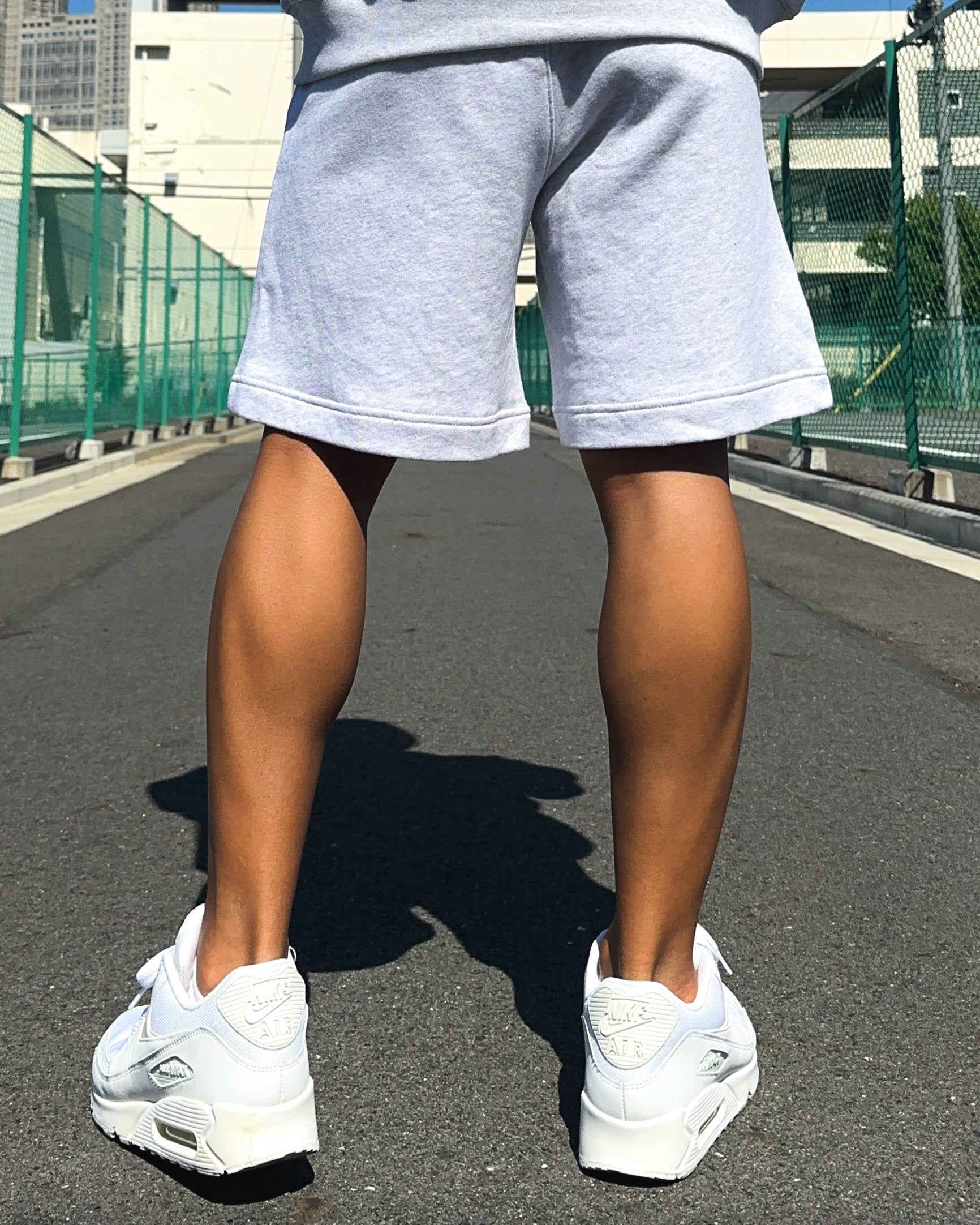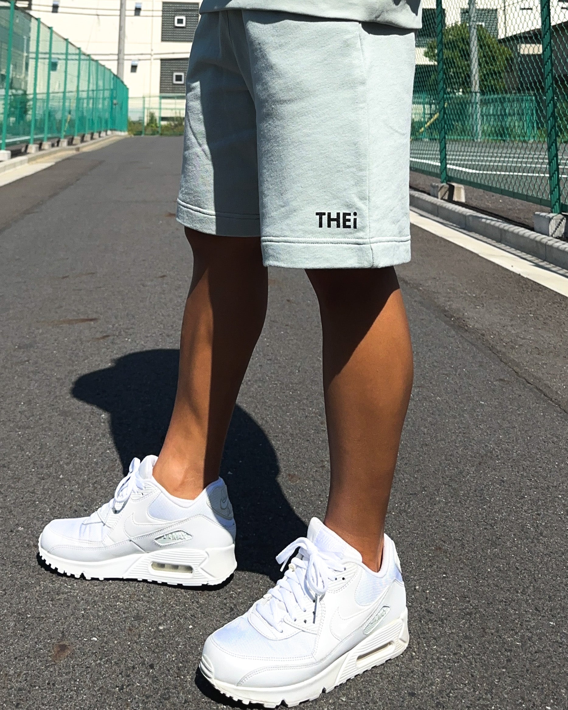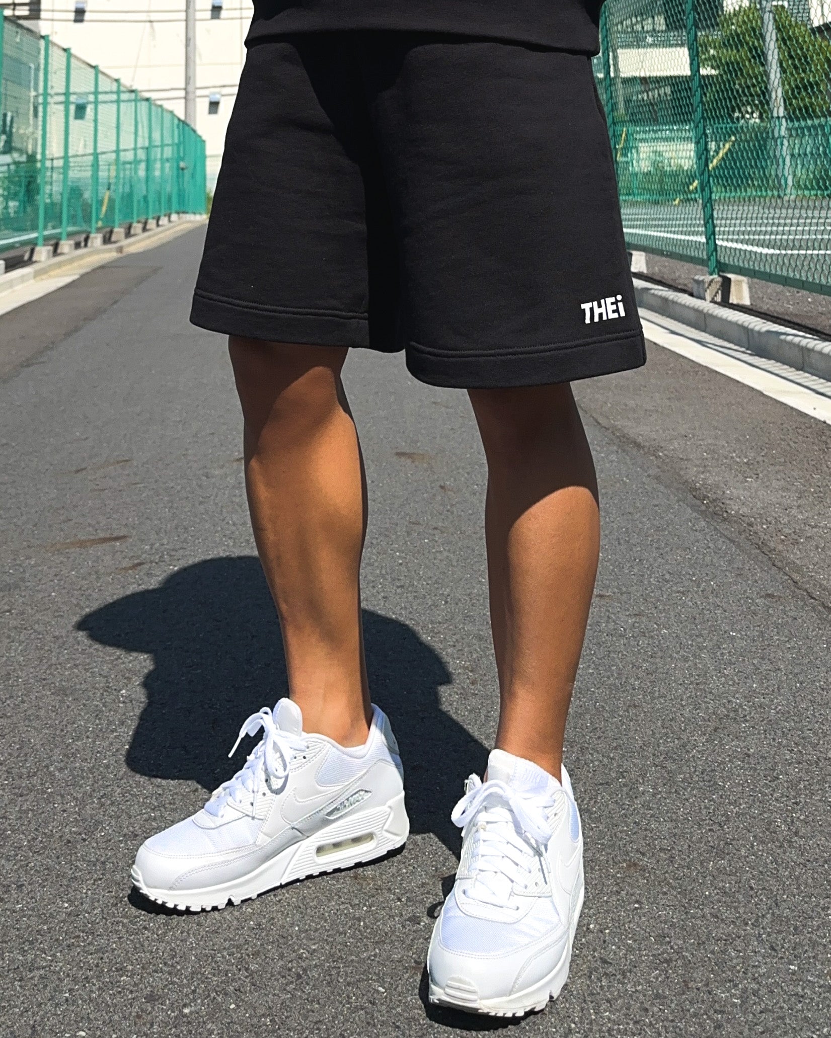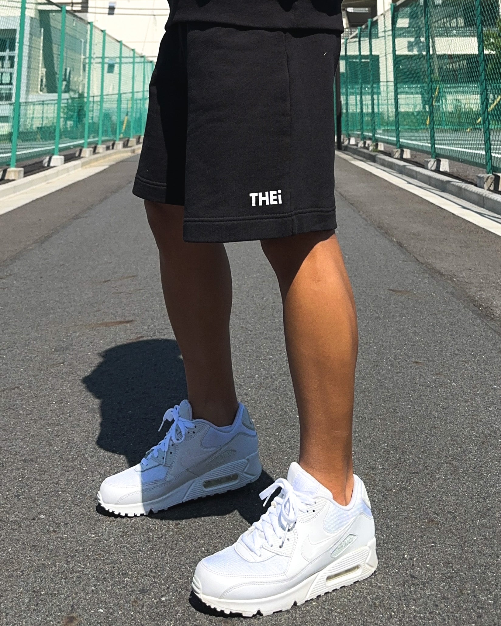 THEiのベーシックロゴを使用したスウェットショーツ。