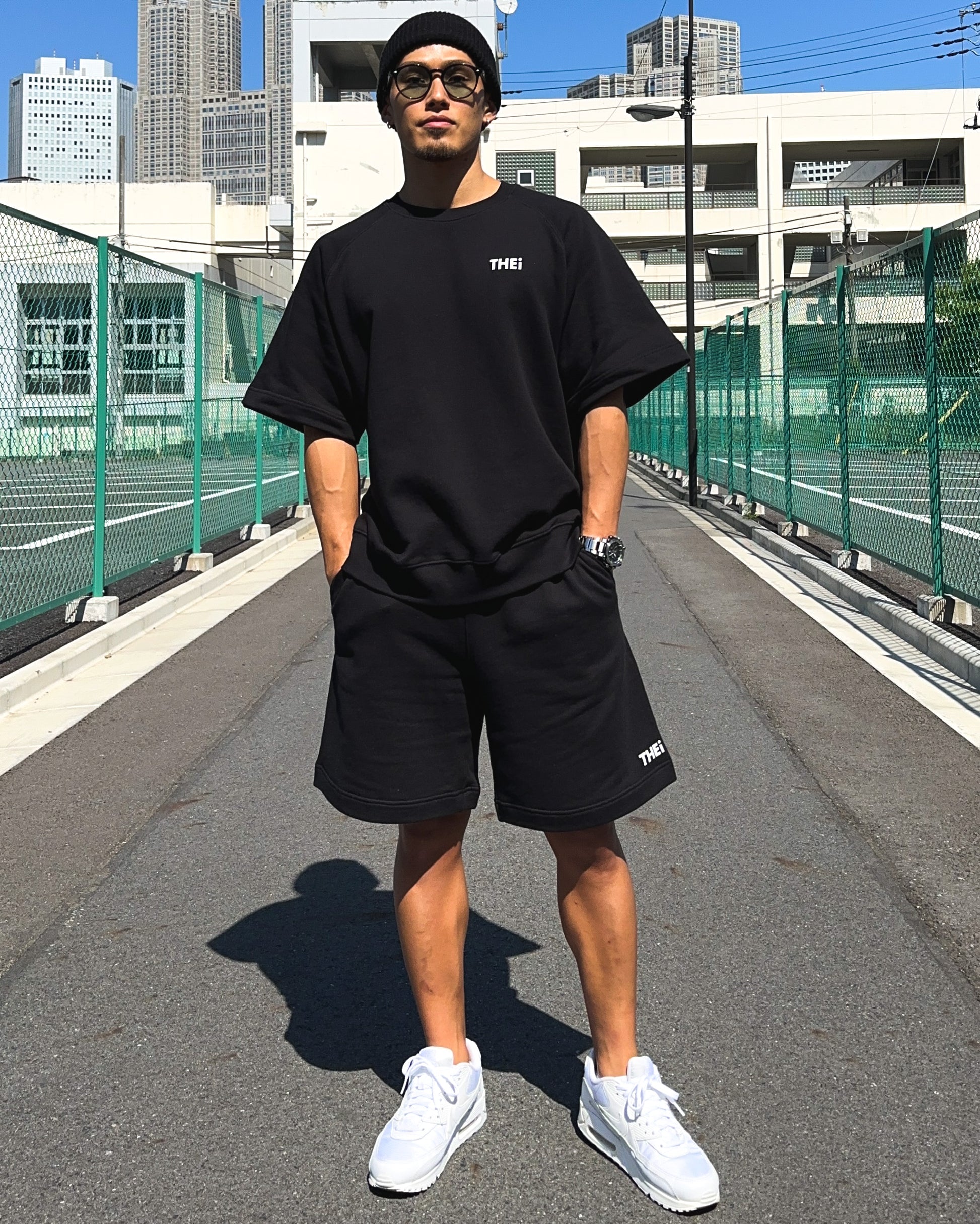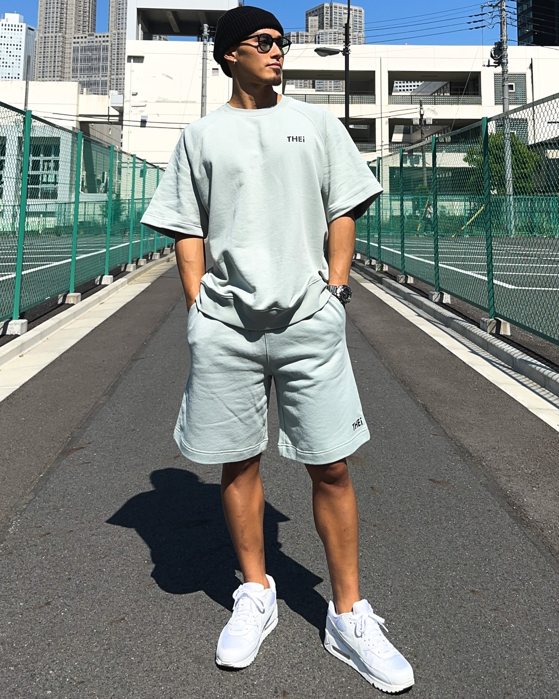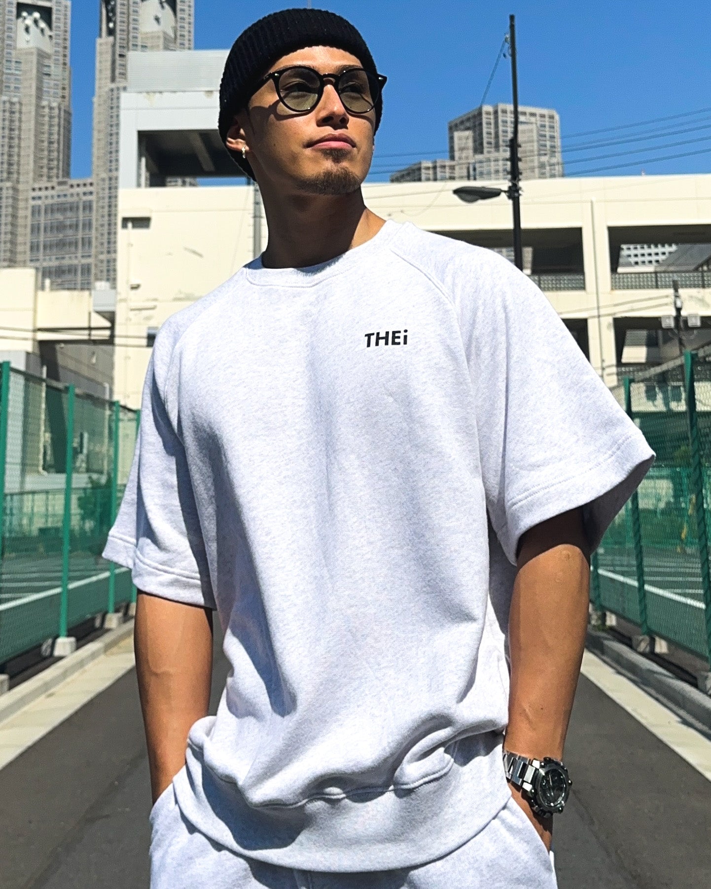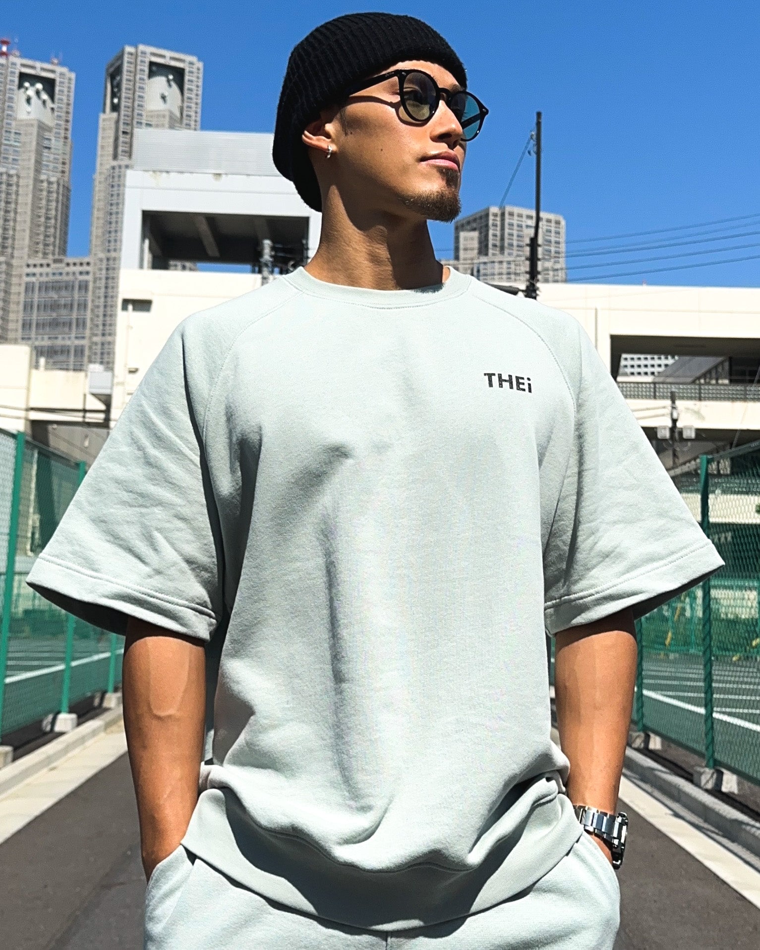 THEiのベーシックロゴを使用したスウェット半袖Tシャツ。