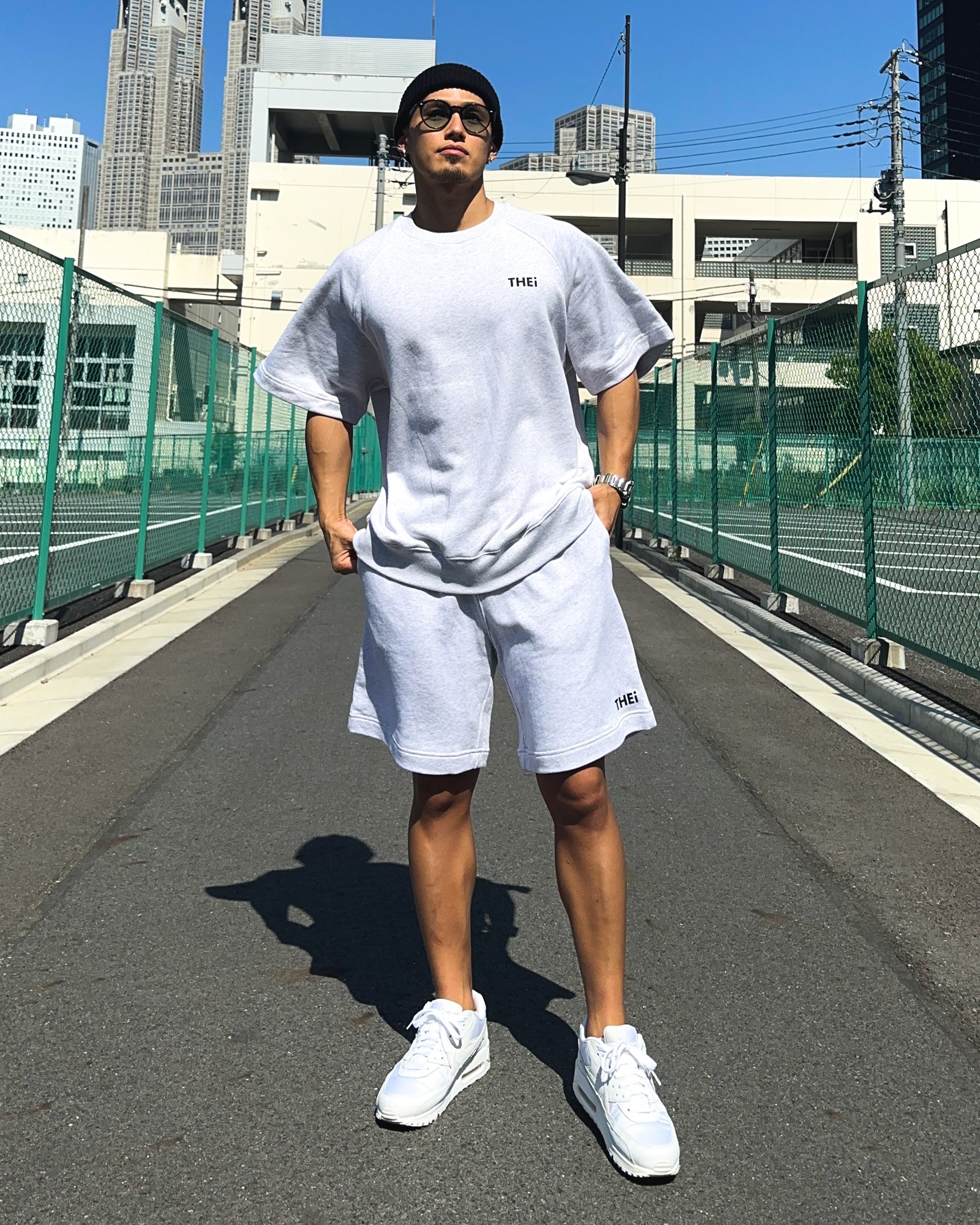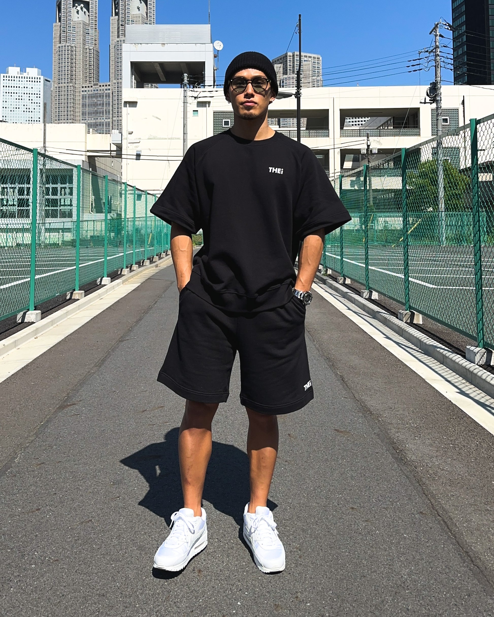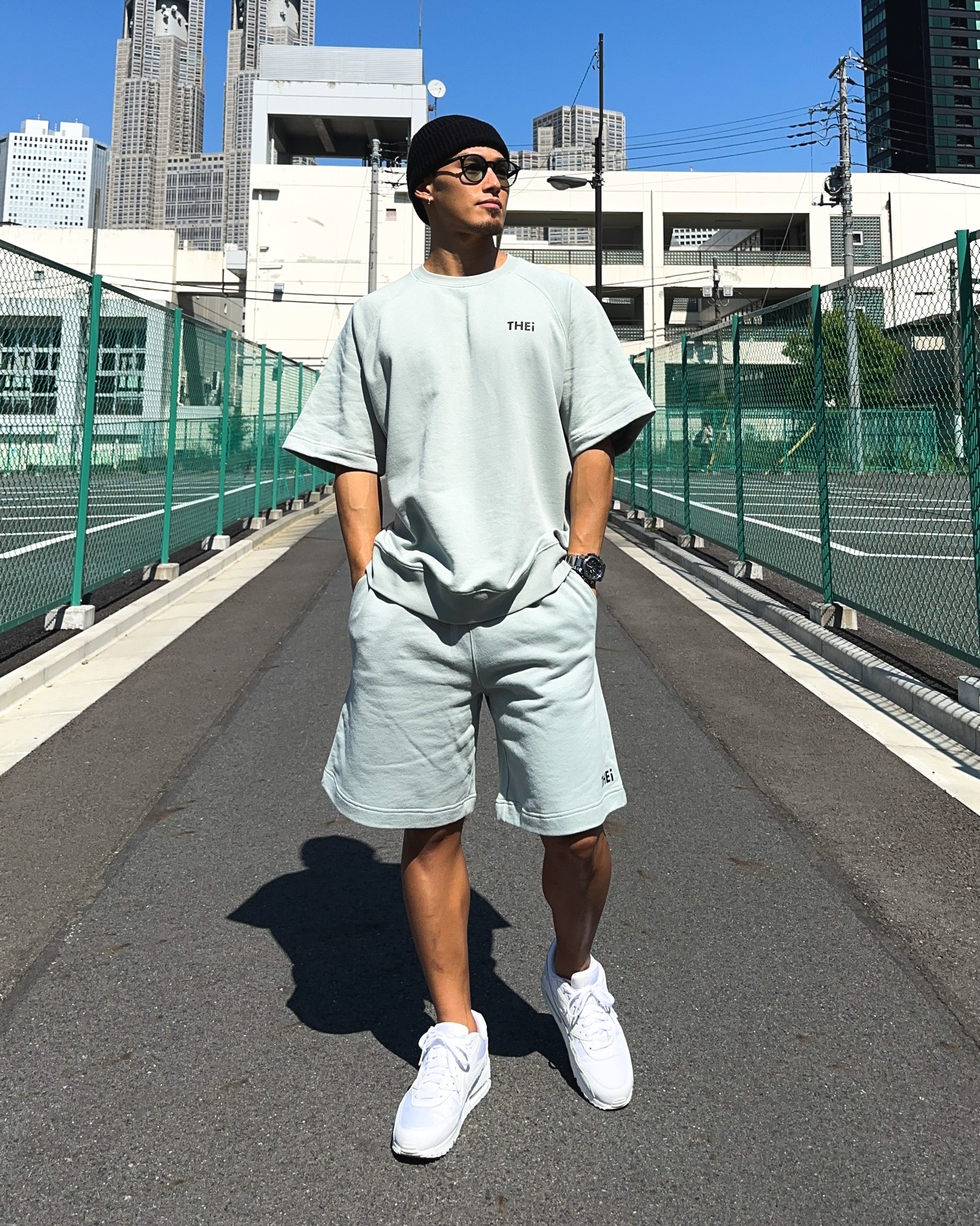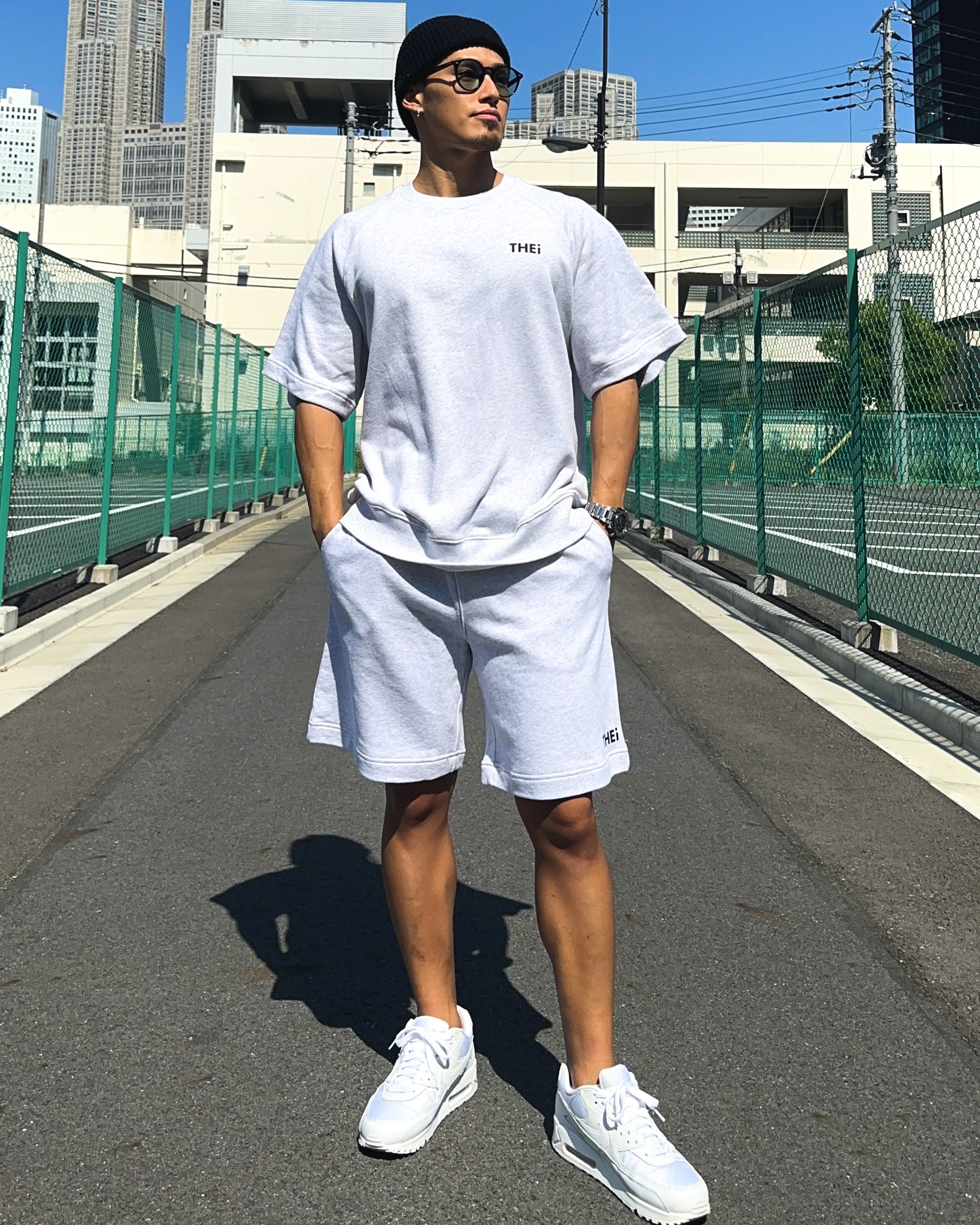 THEiのベーシックロゴを使用したスウェット半袖Tシャツ。