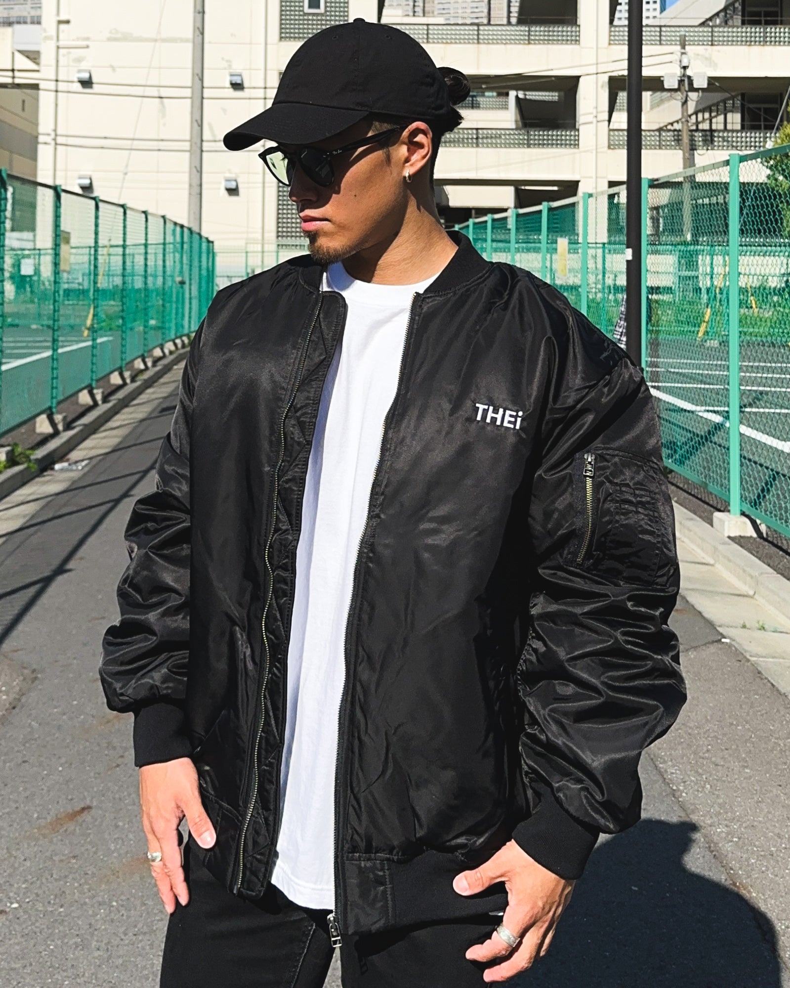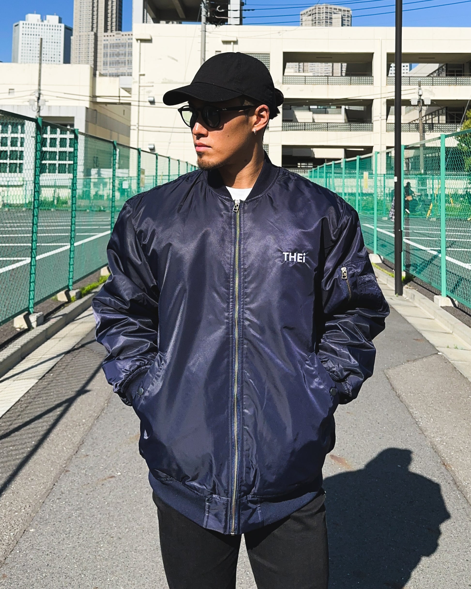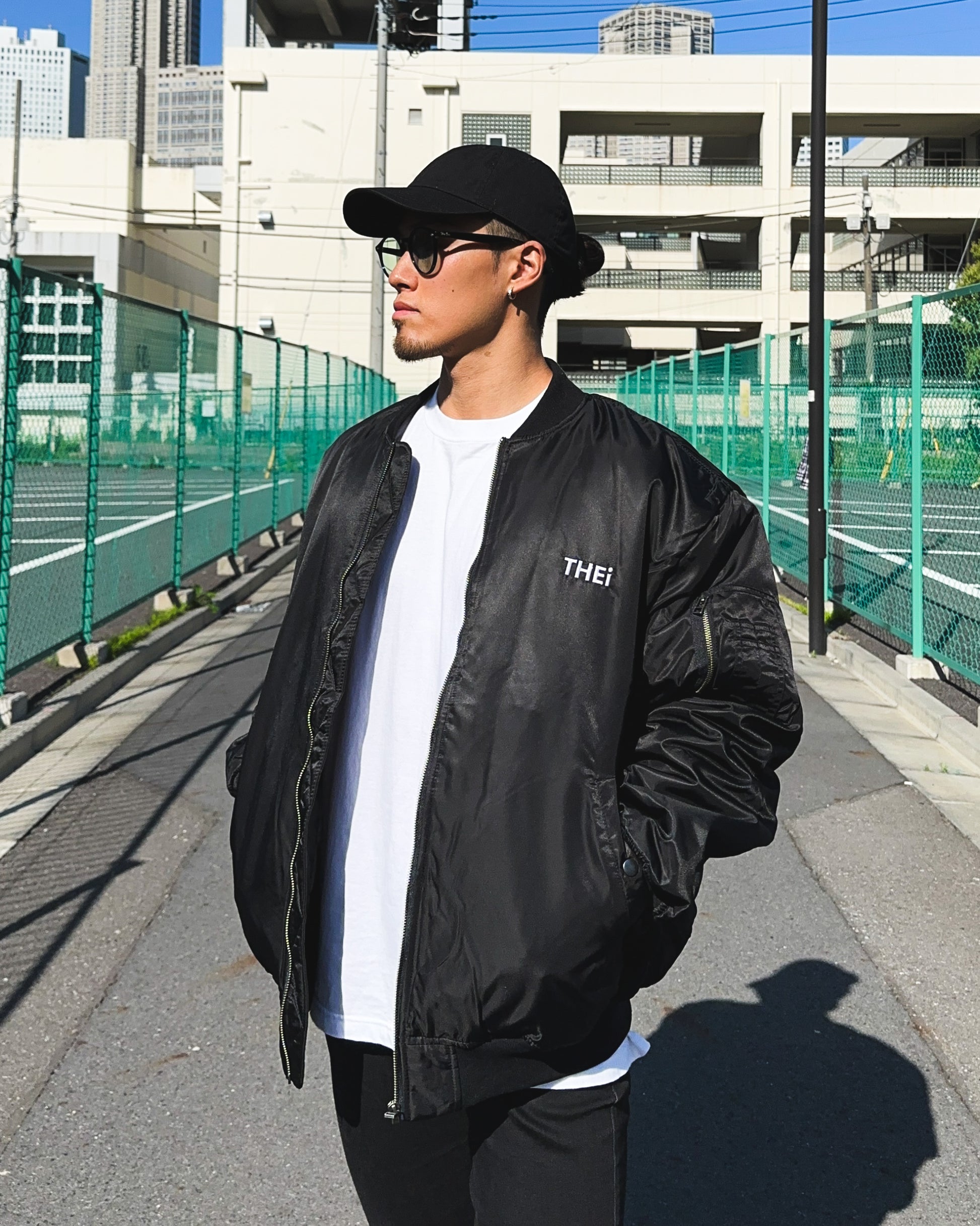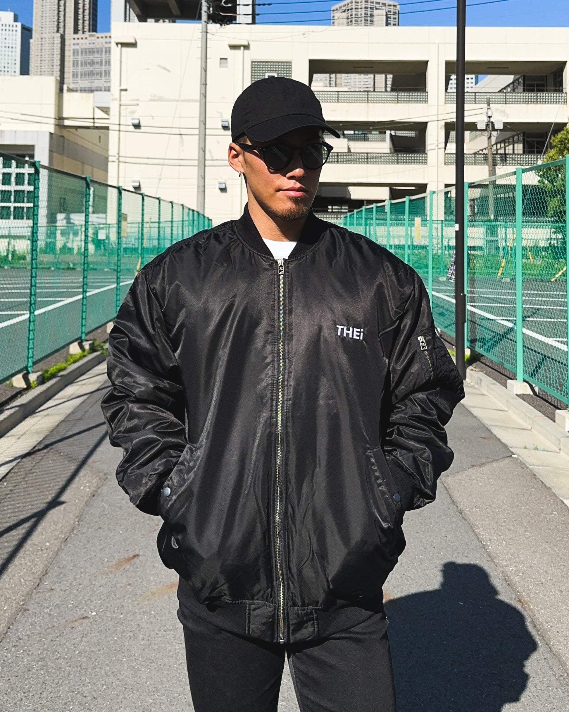 THEiのベーシックロゴを使用したMA-1フライトジャケット。