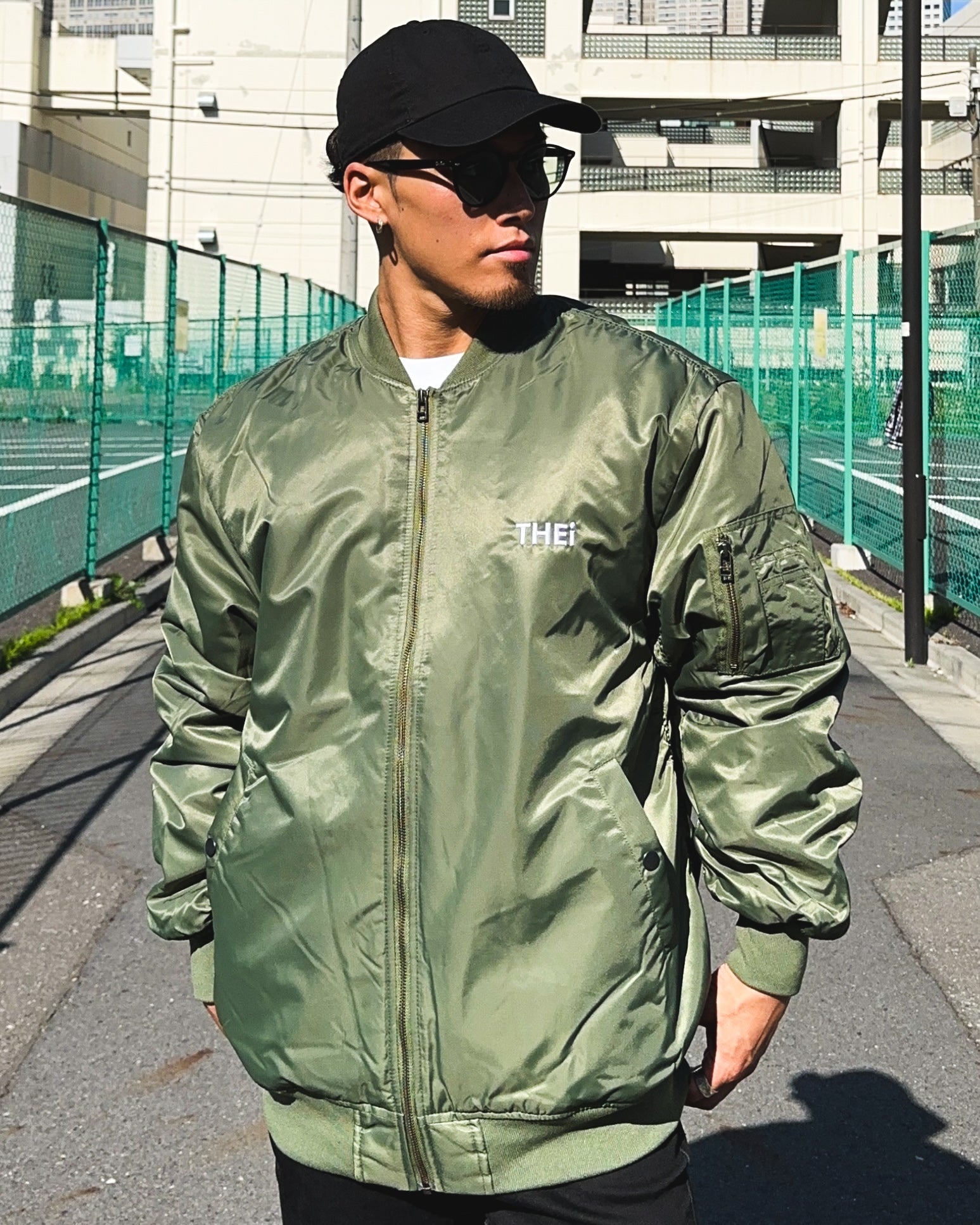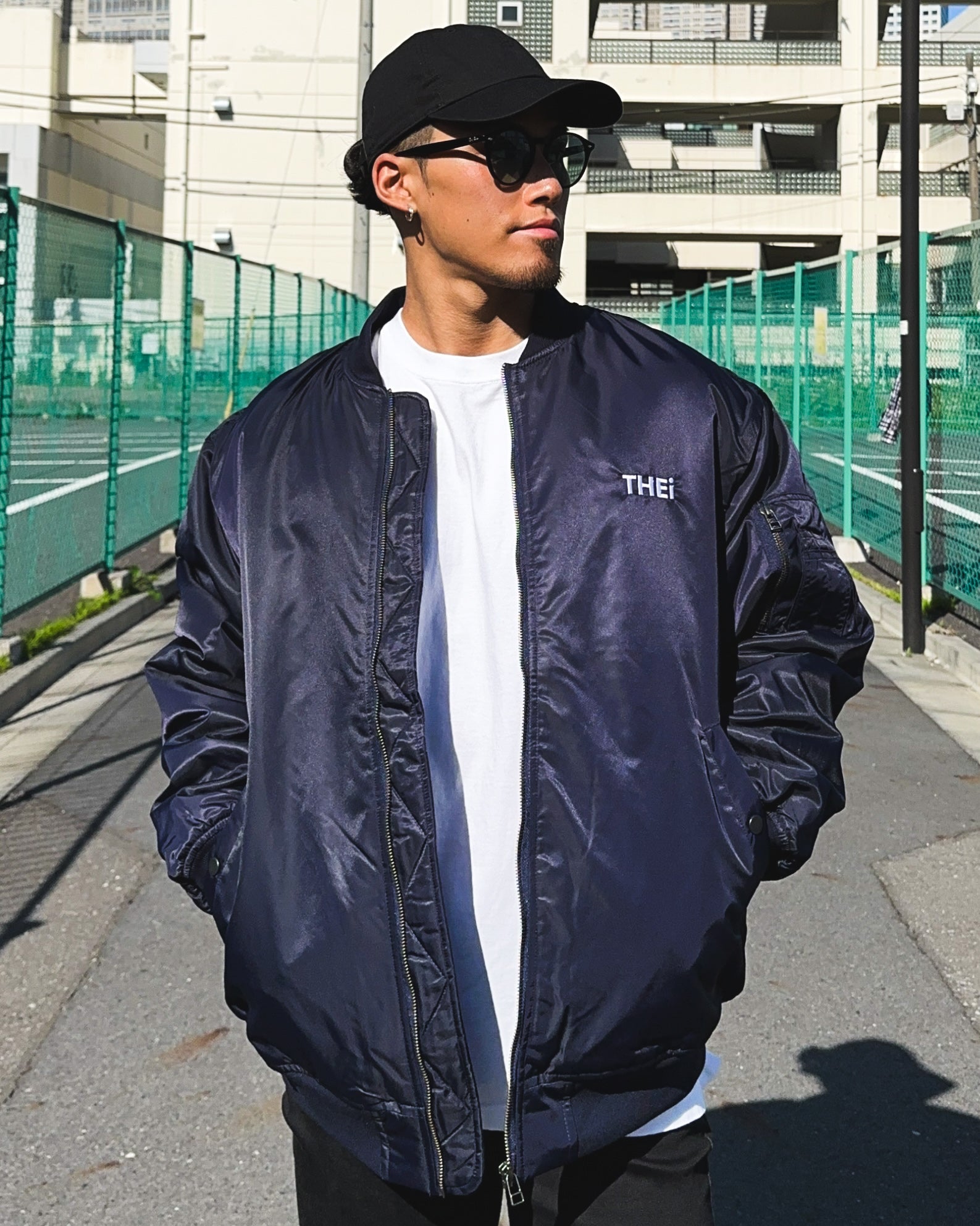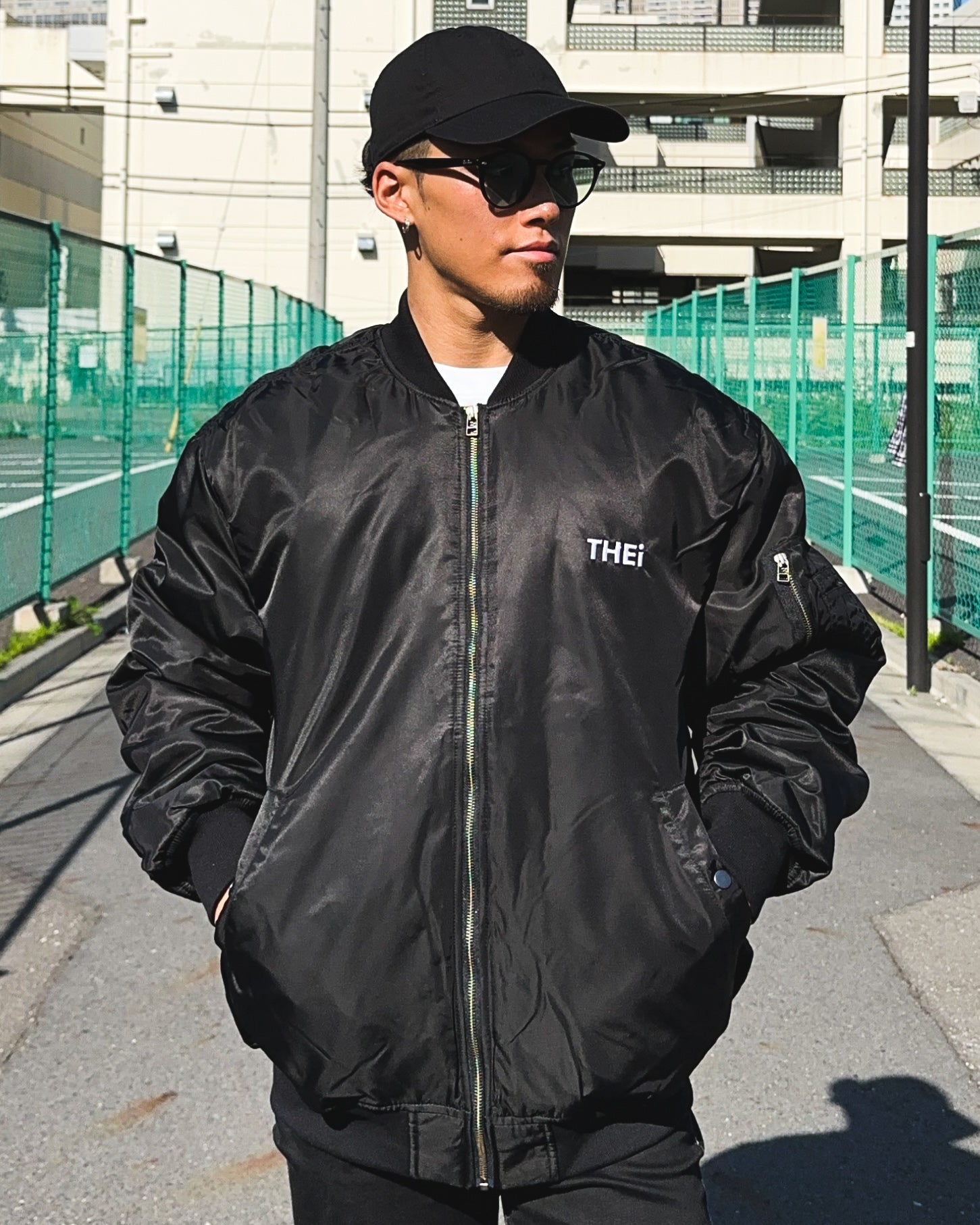 THEiのベーシックロゴを使用したMA-1フライトジャケット。