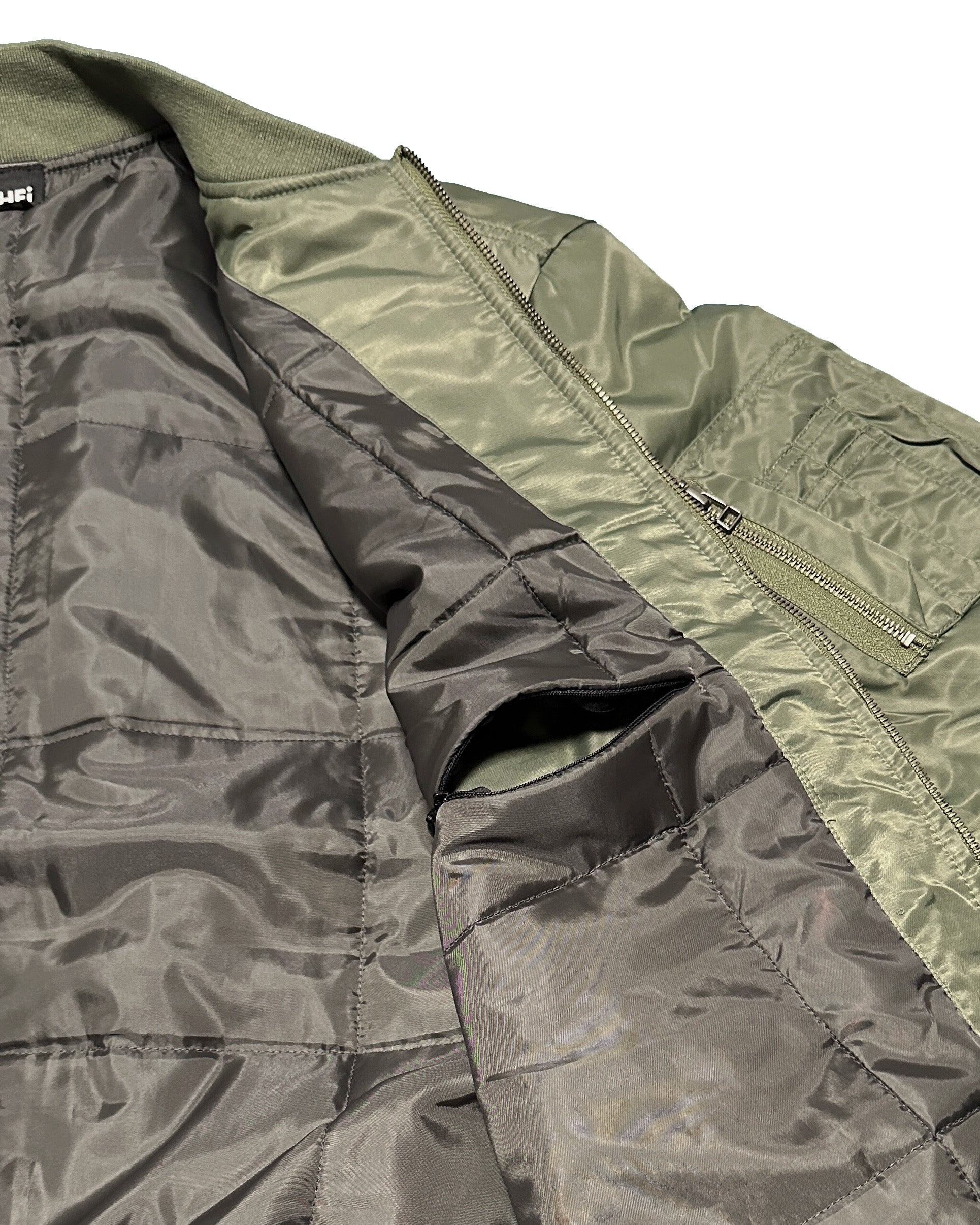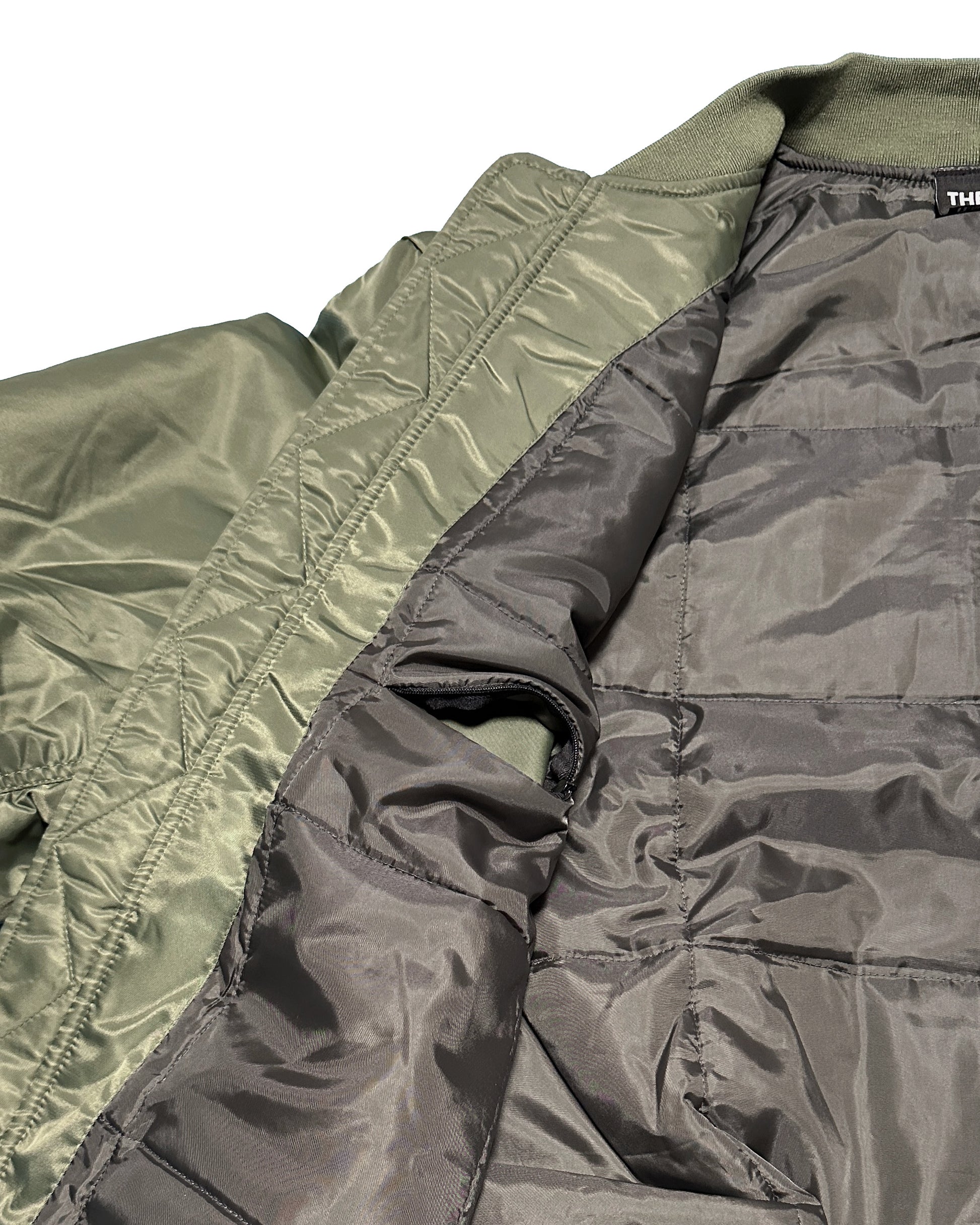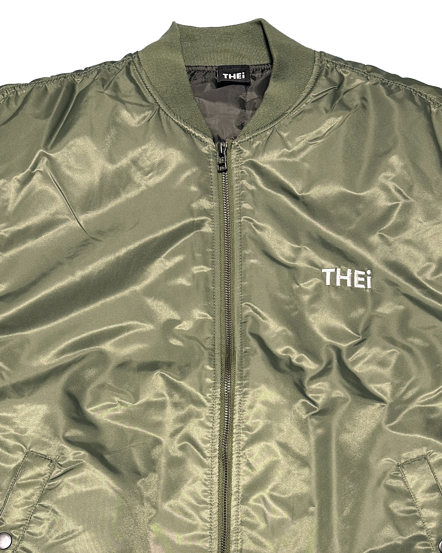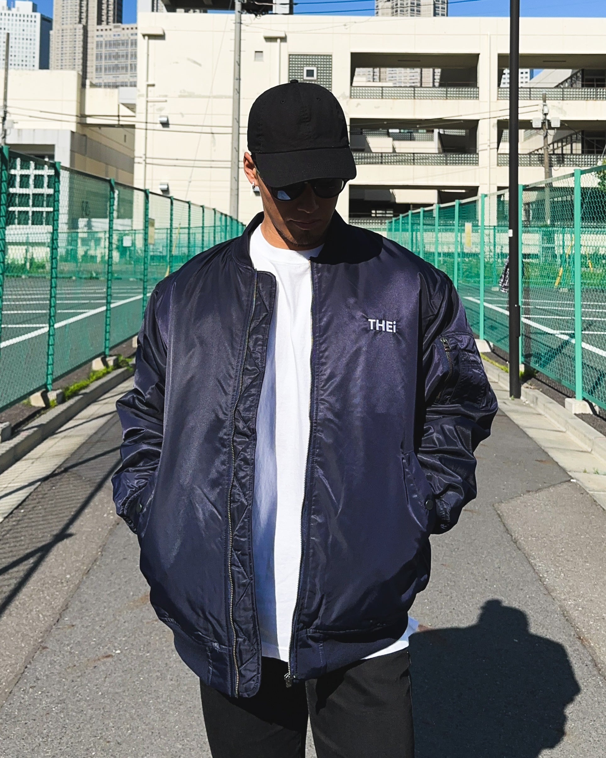 THEiのベーシックロゴを使用したMA-1フライトジャケット。