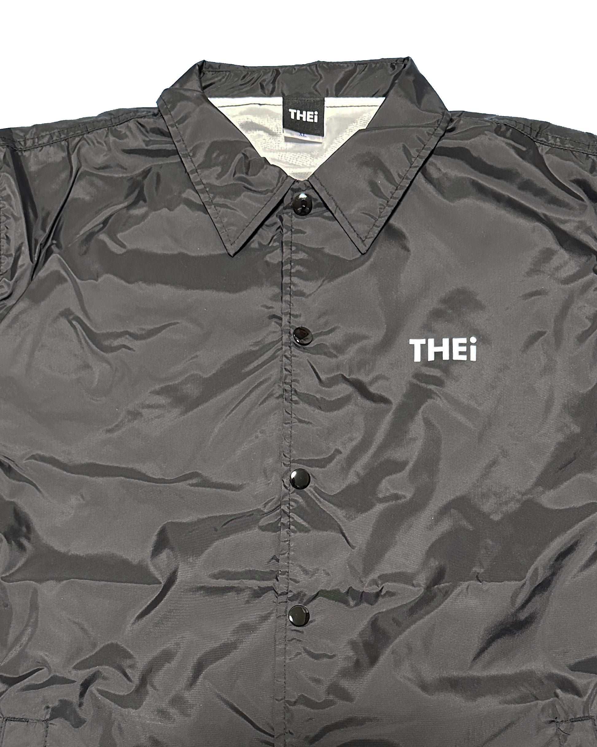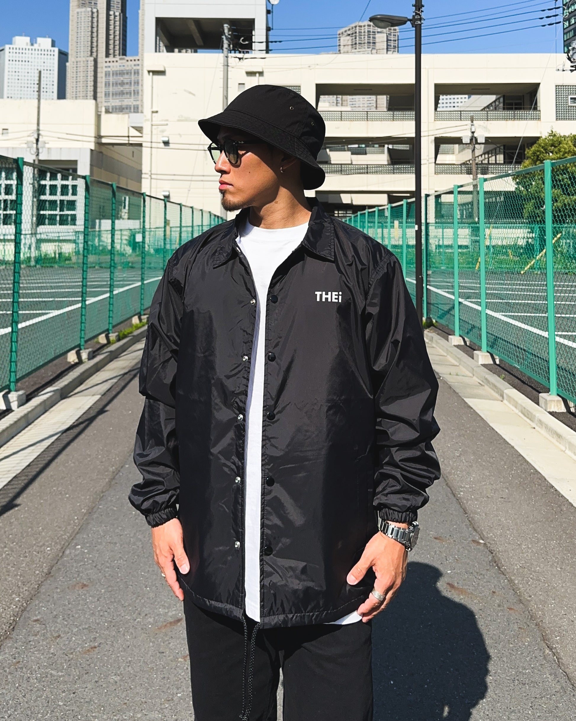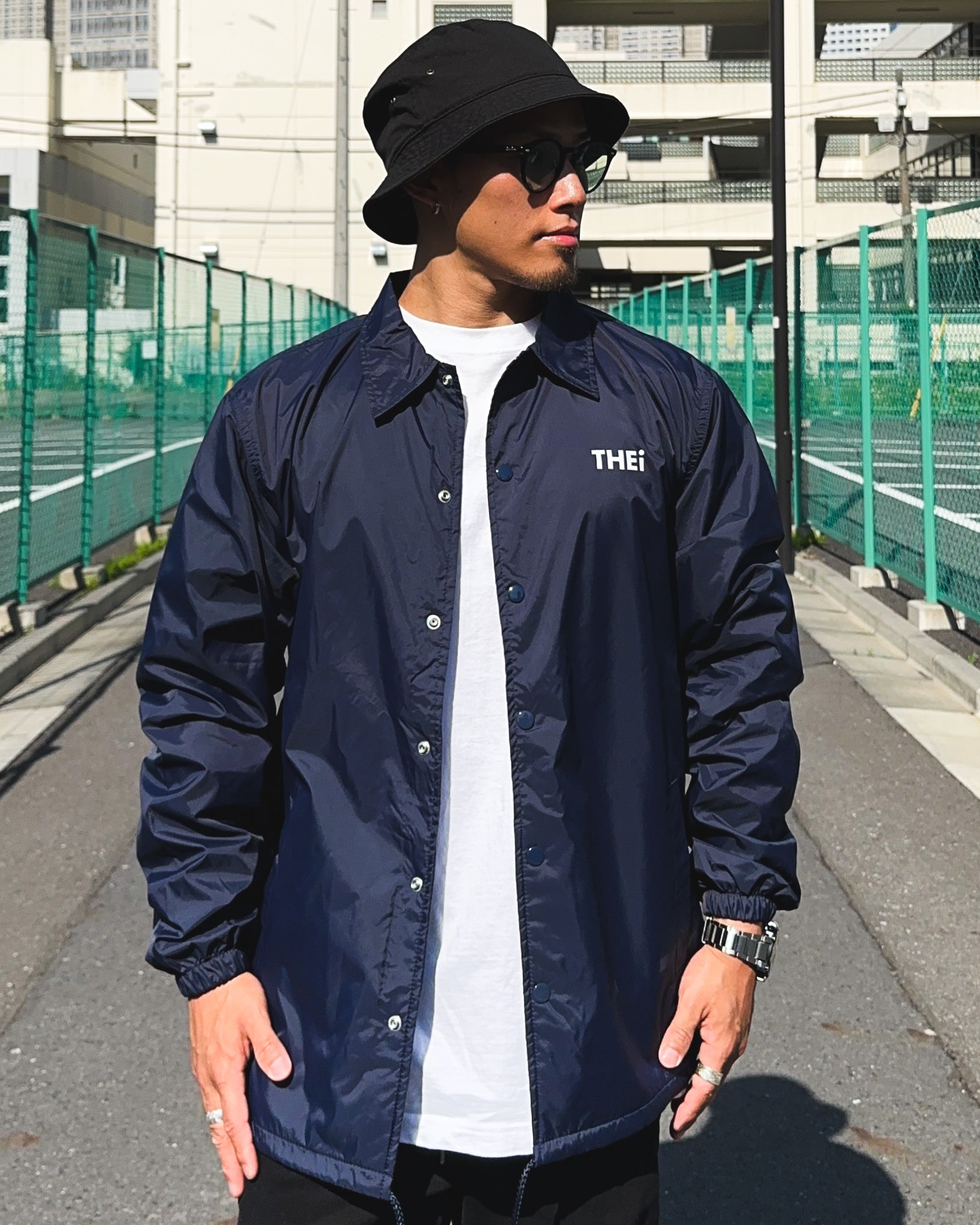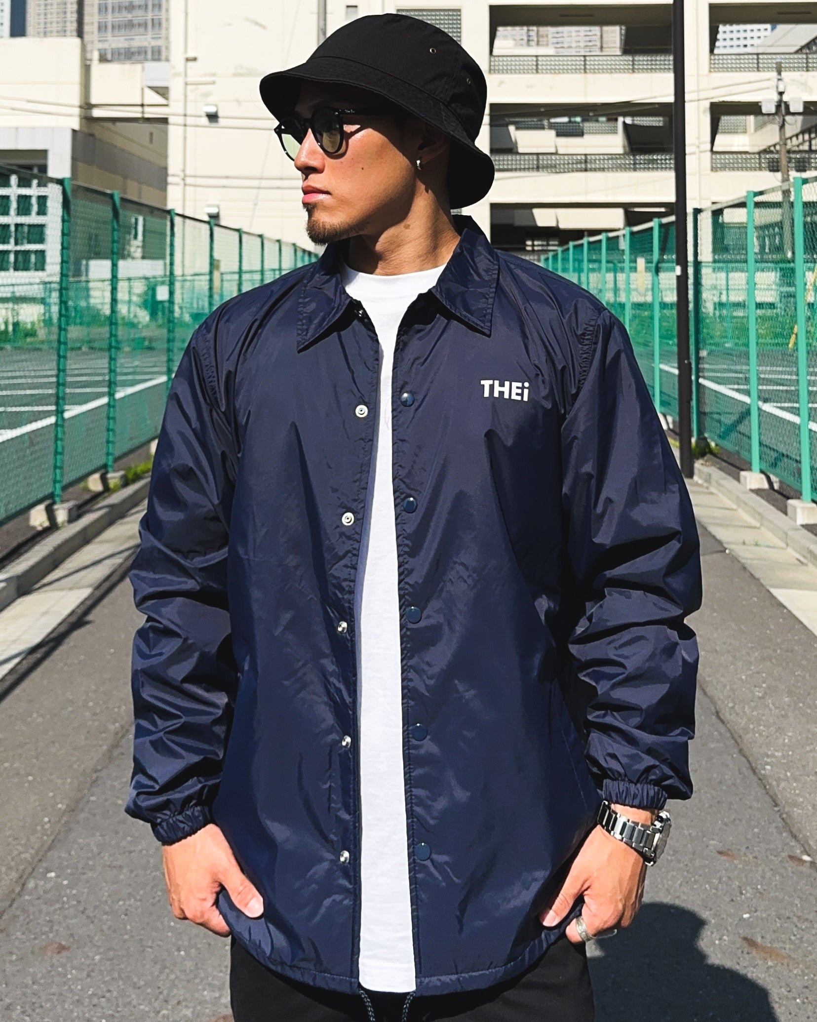 THEiのベーシックロゴを使用したナイロンコーチジャケット。