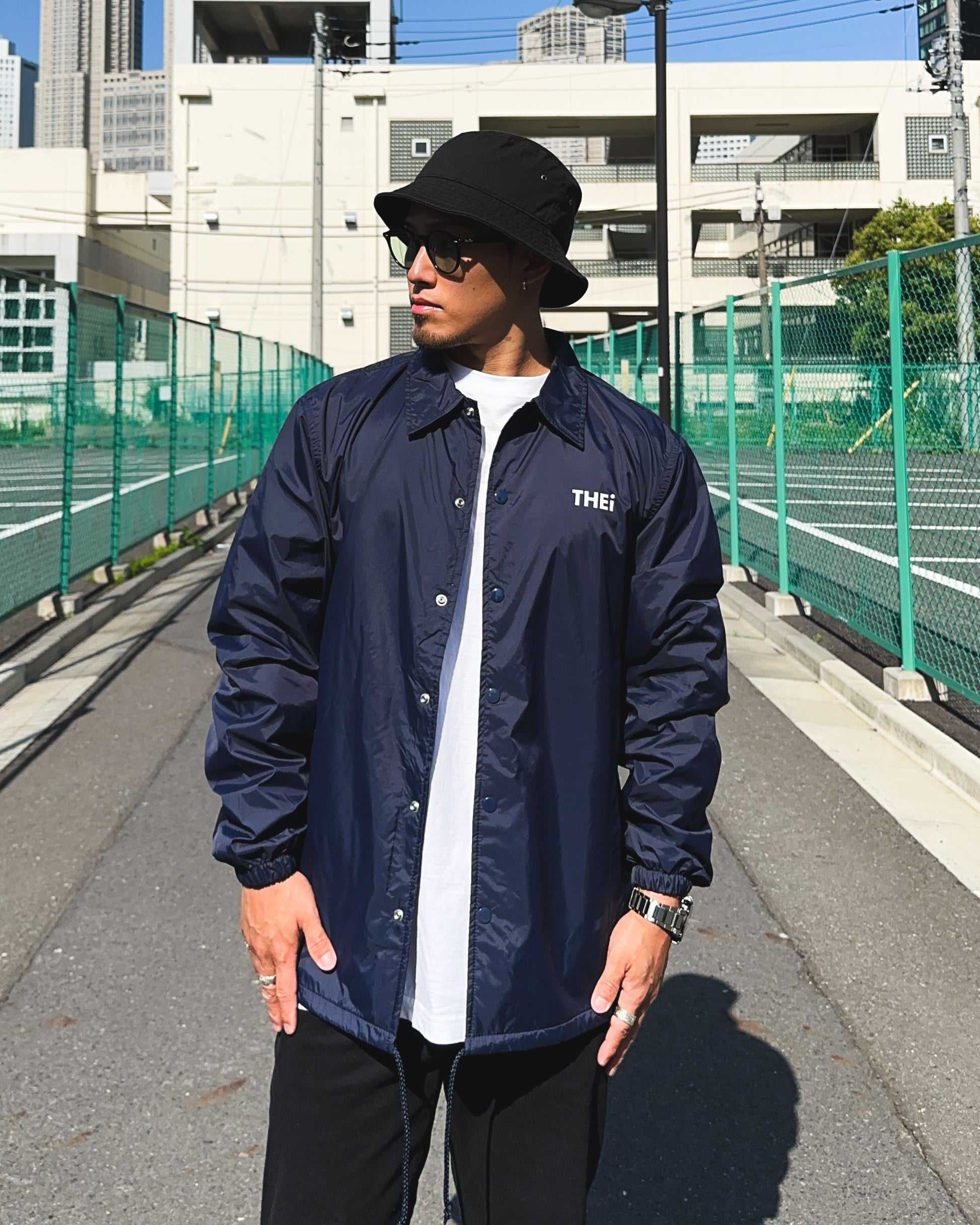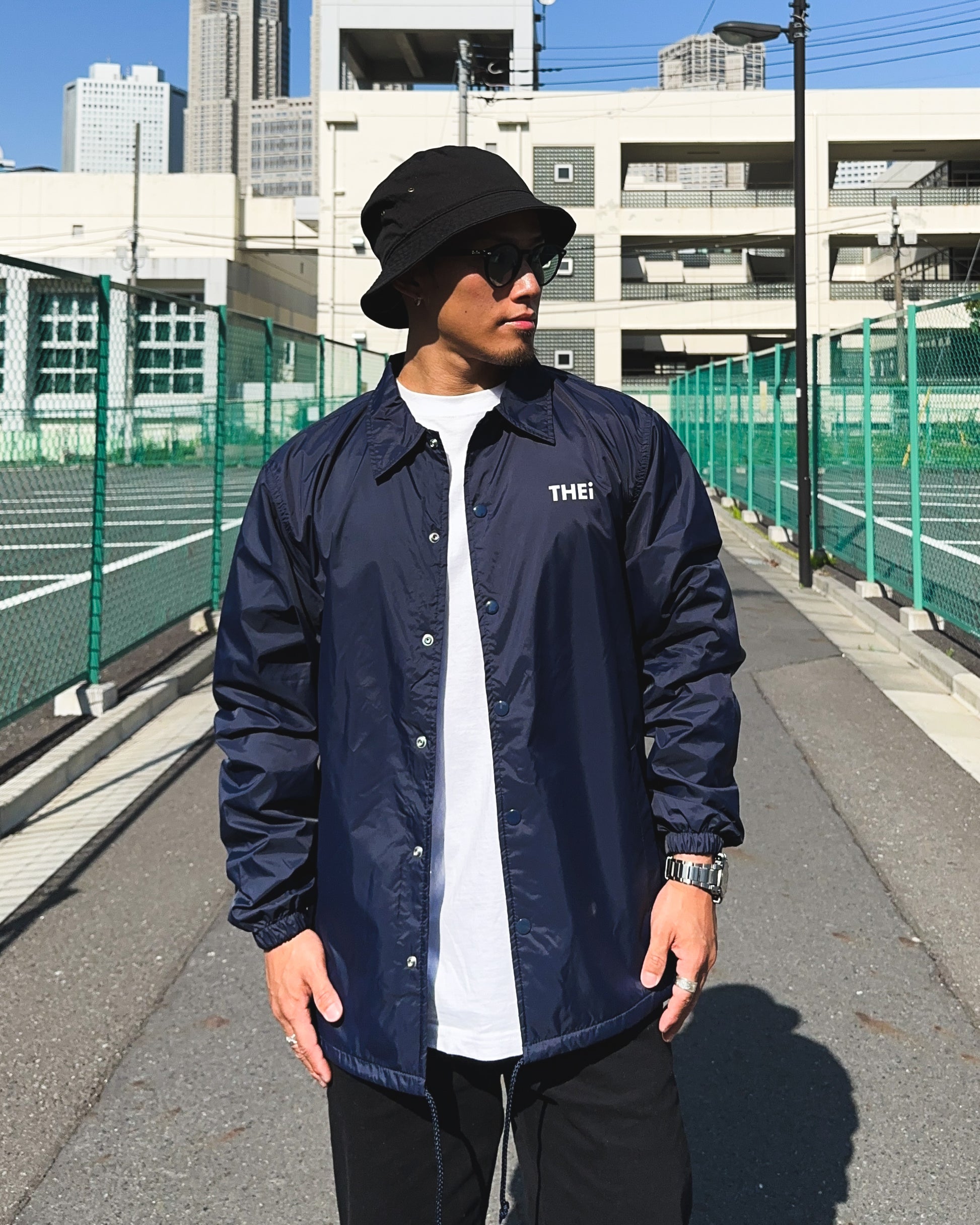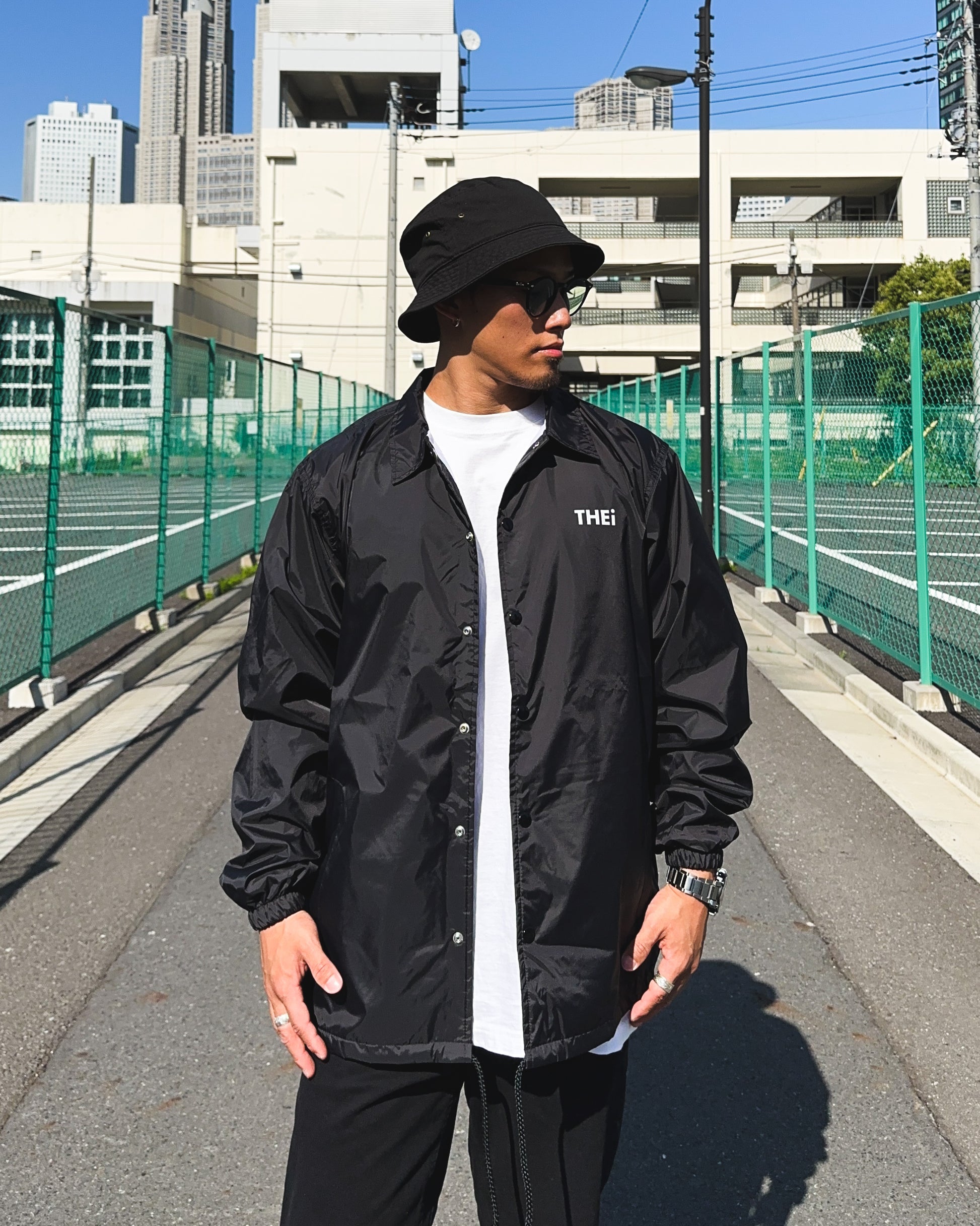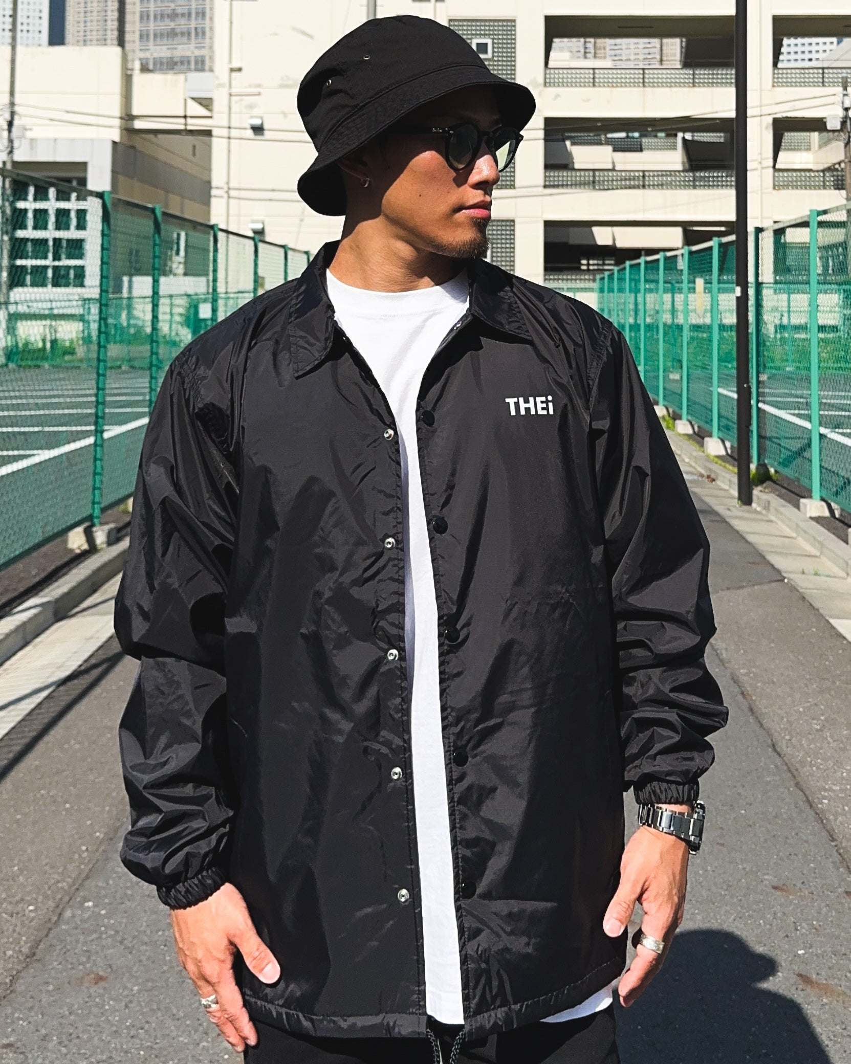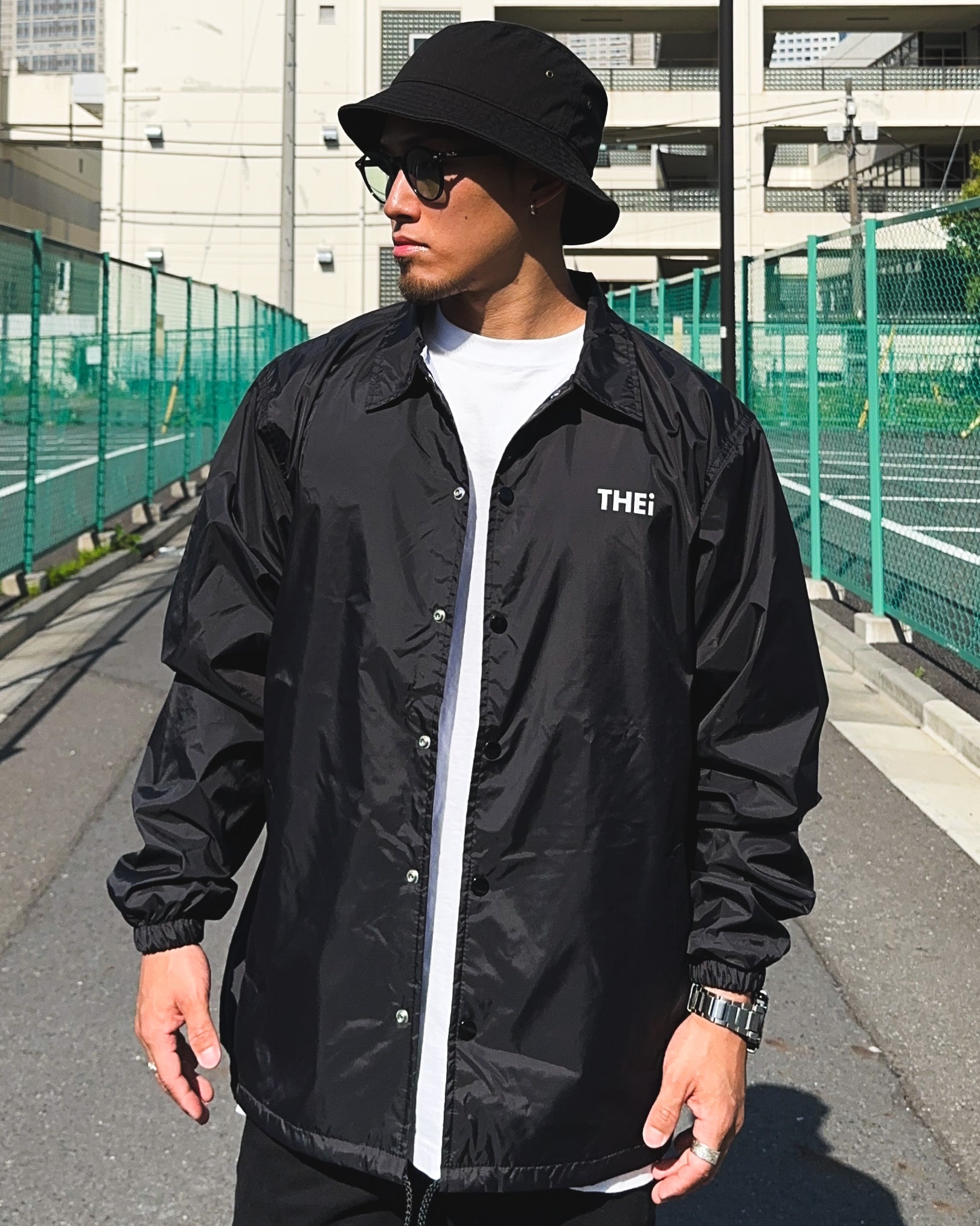 THEiのベーシックロゴを使用したナイロンコーチジャケット。