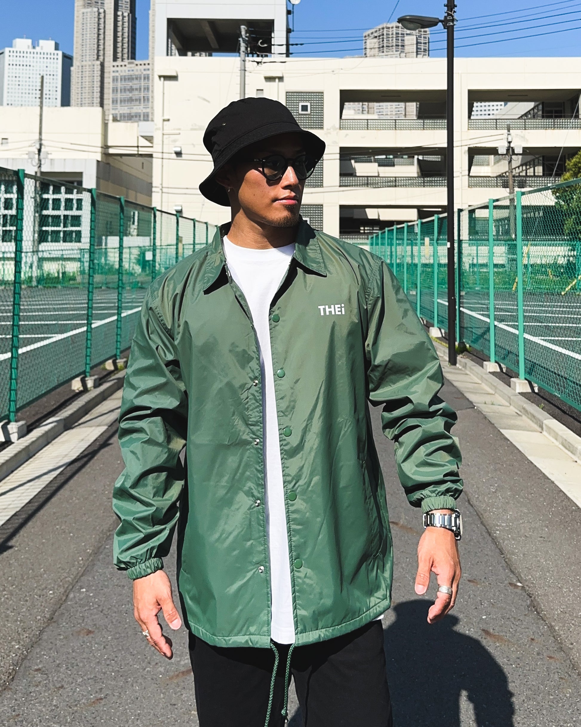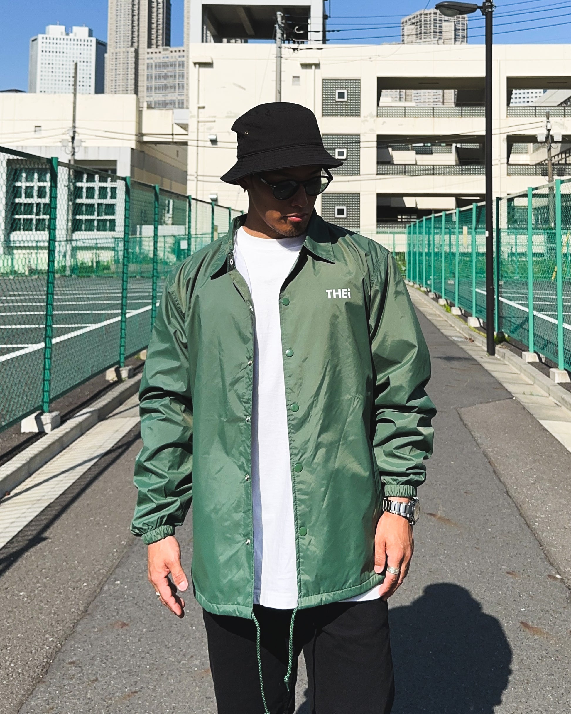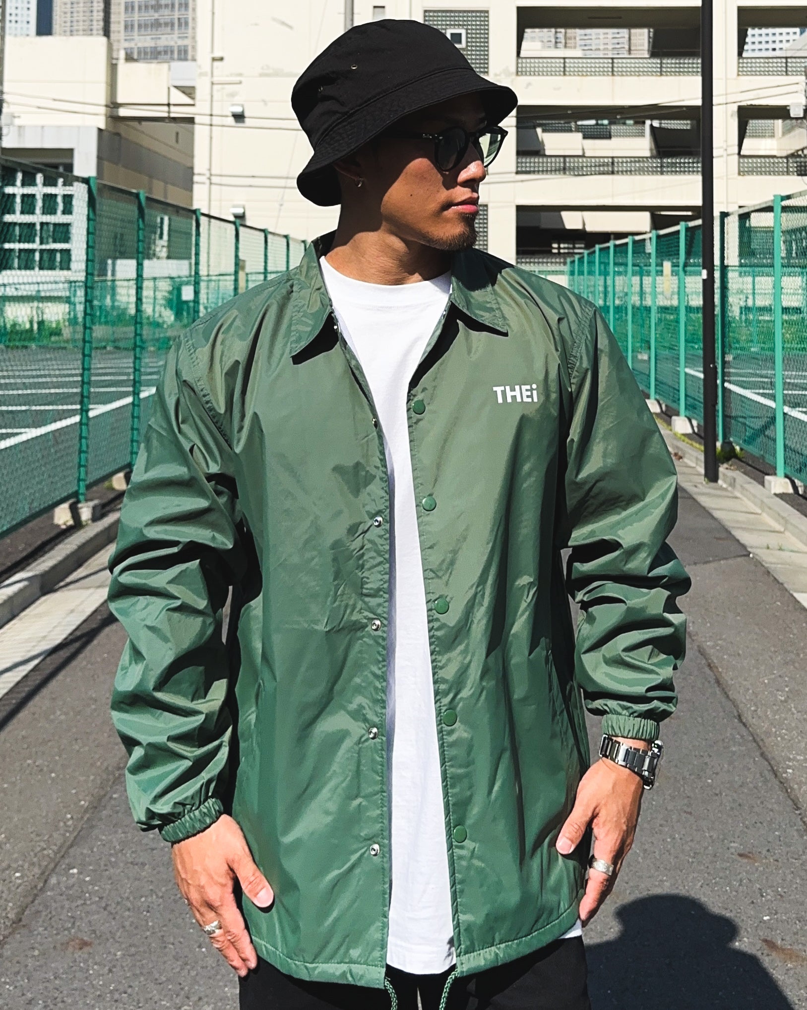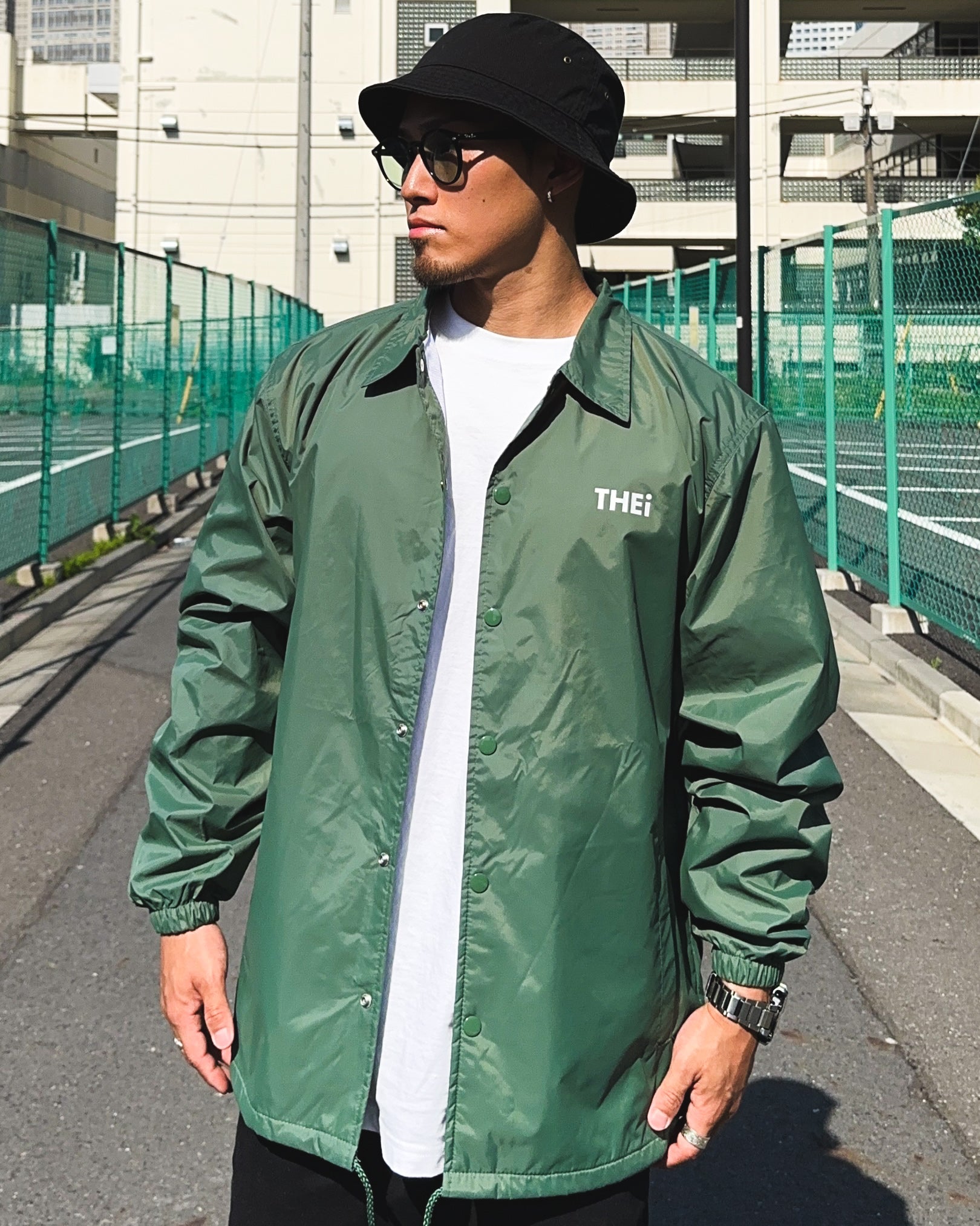 THEiのベーシックロゴを使用したナイロンコーチジャケット。