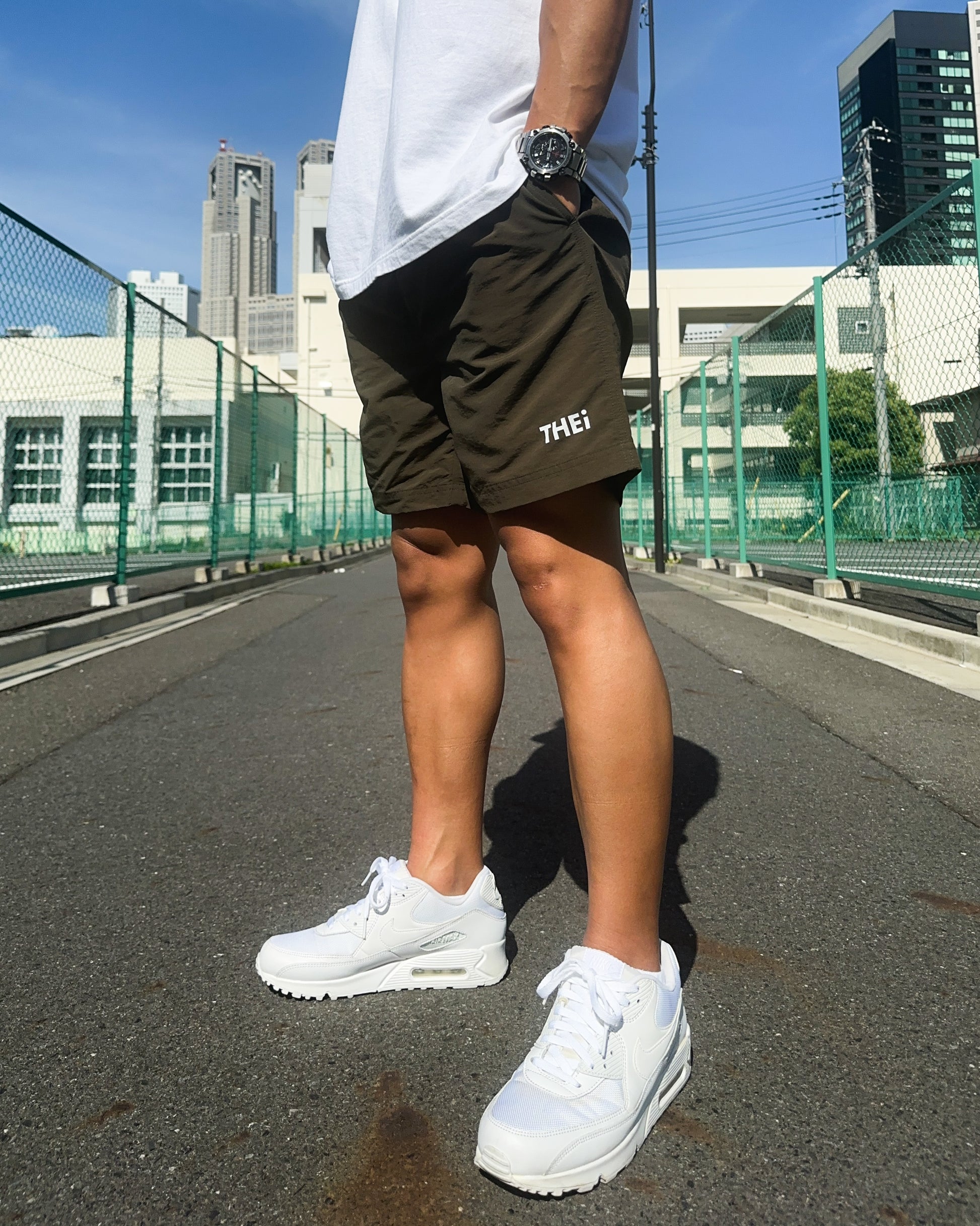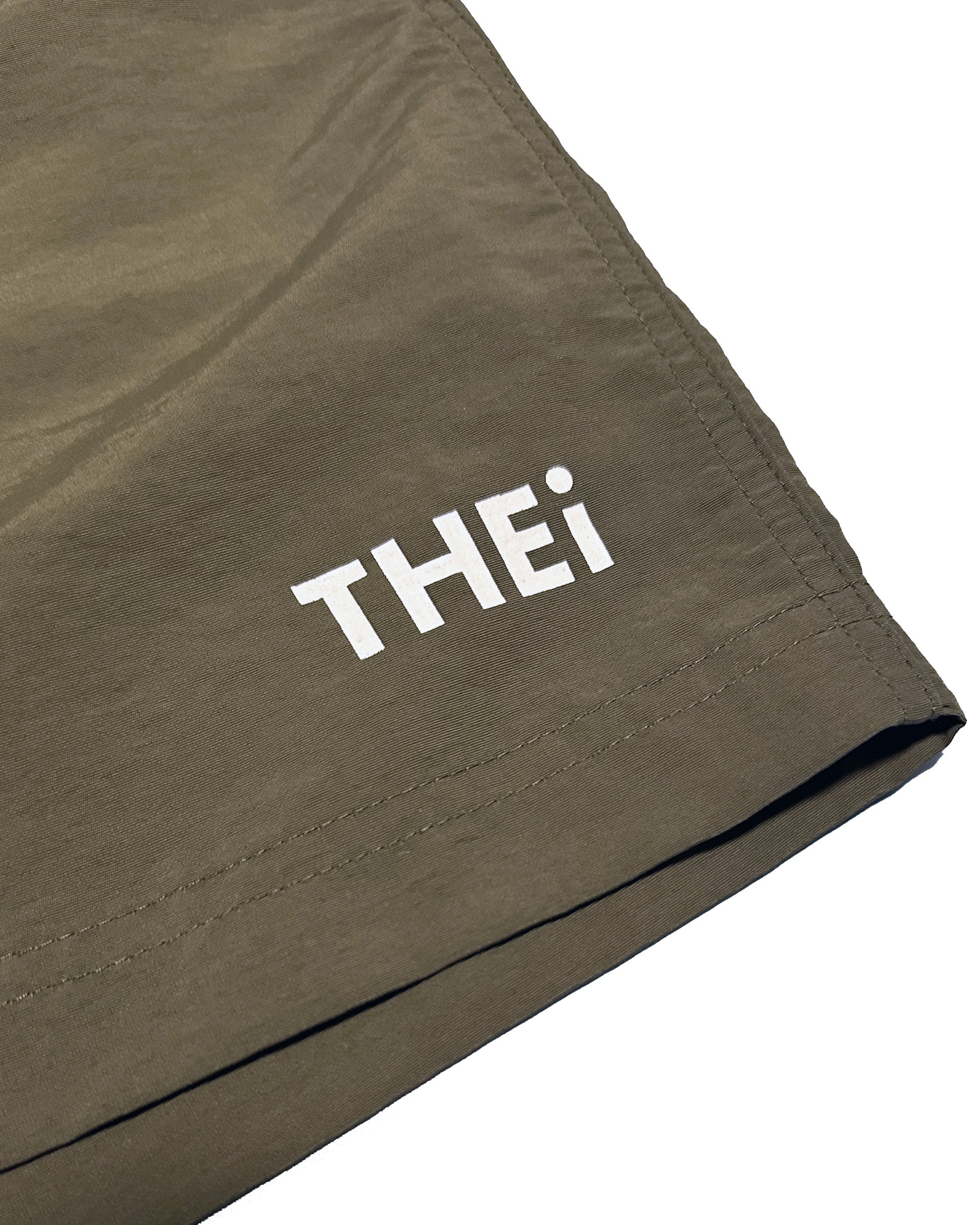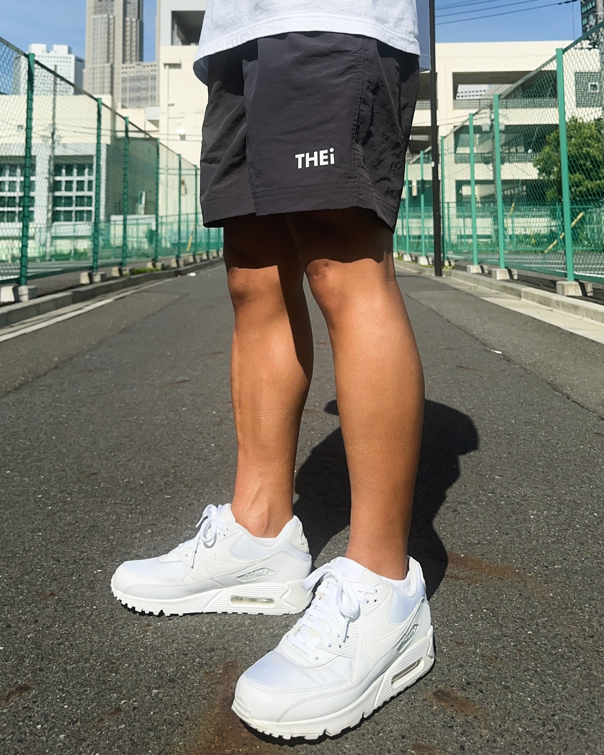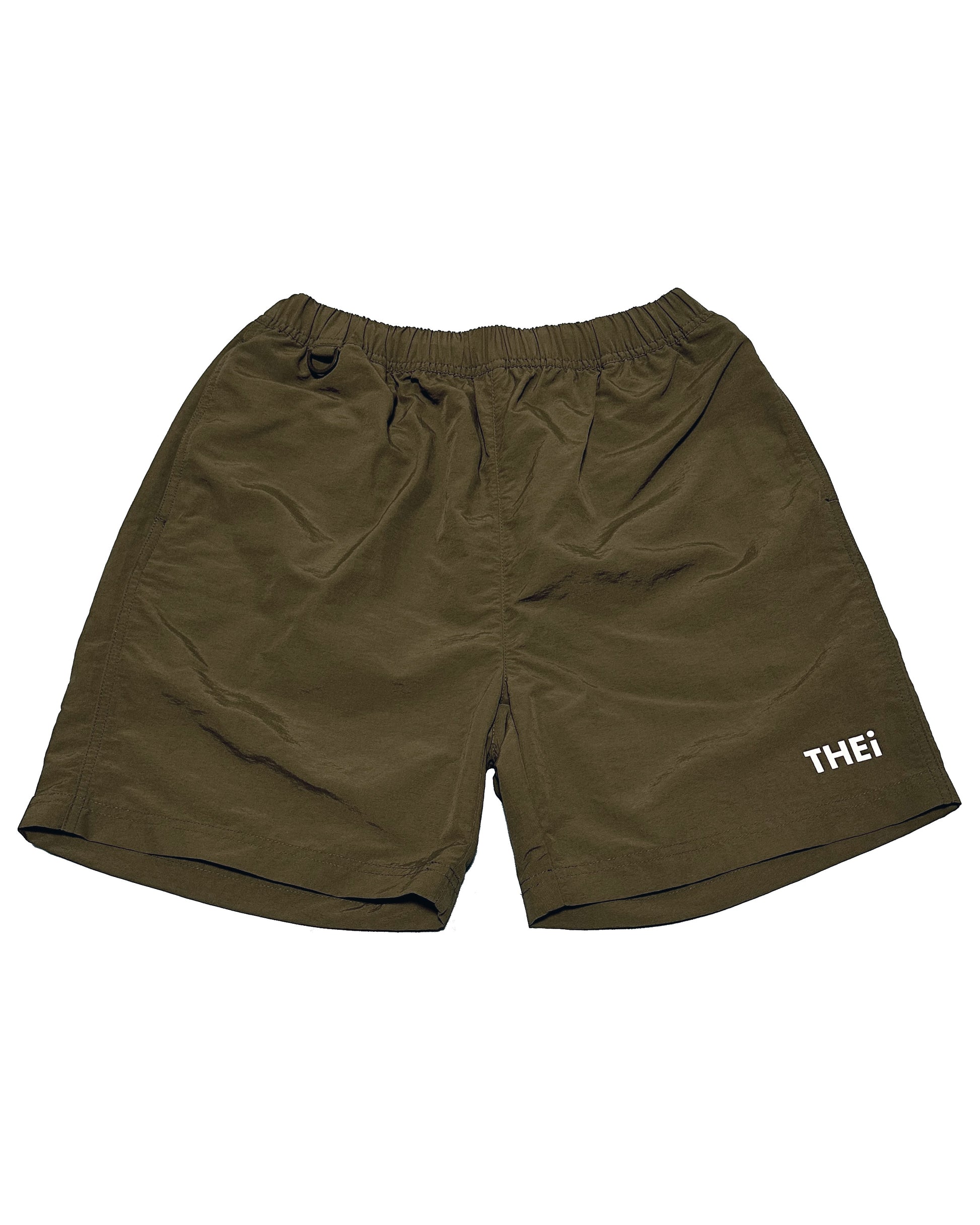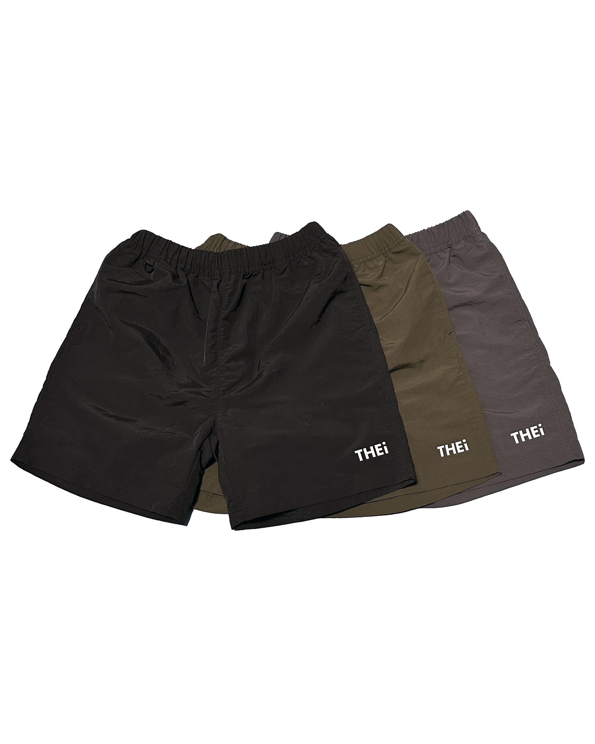 THEiのベーシックロゴを使用したナイロンイージーショーツ。
