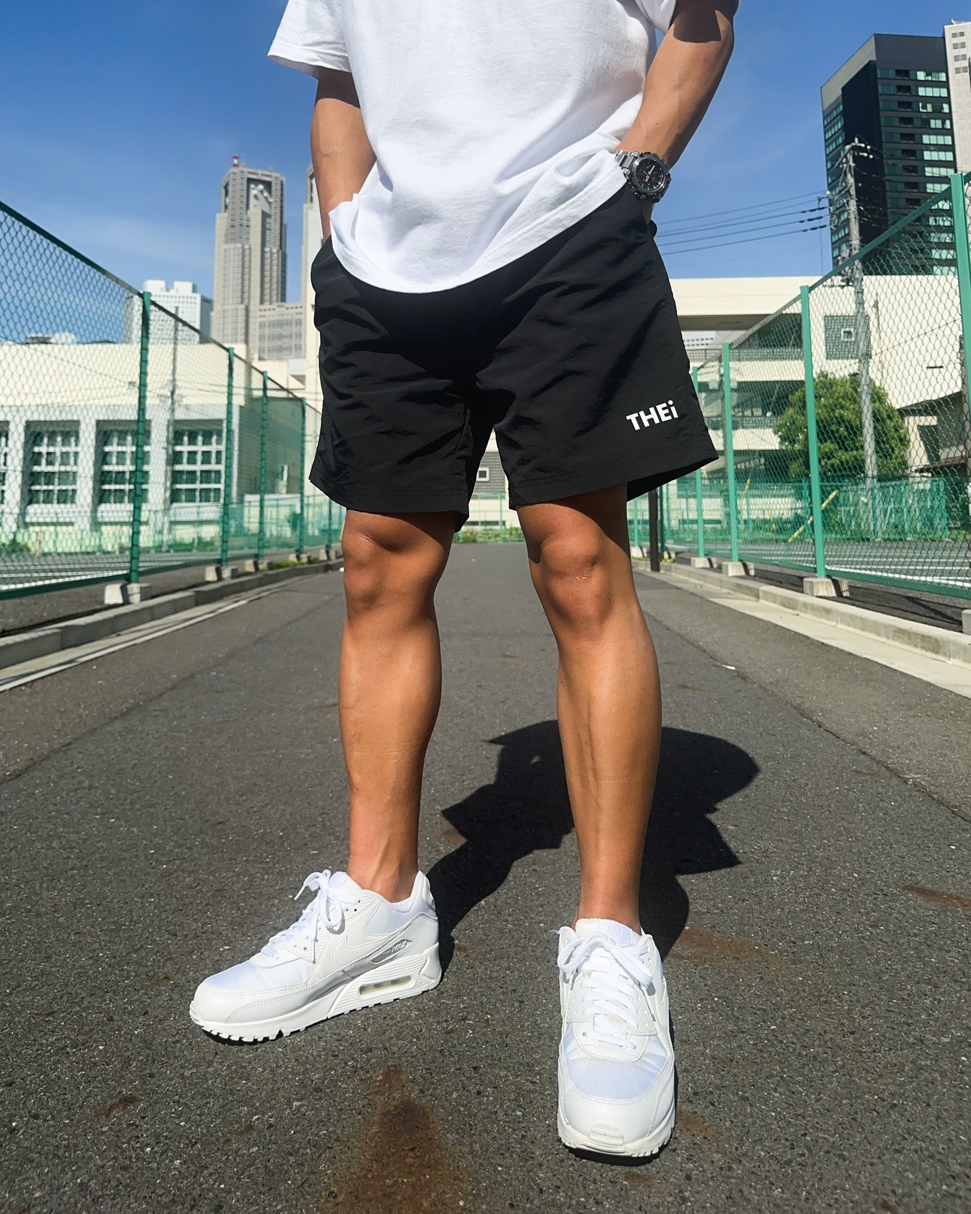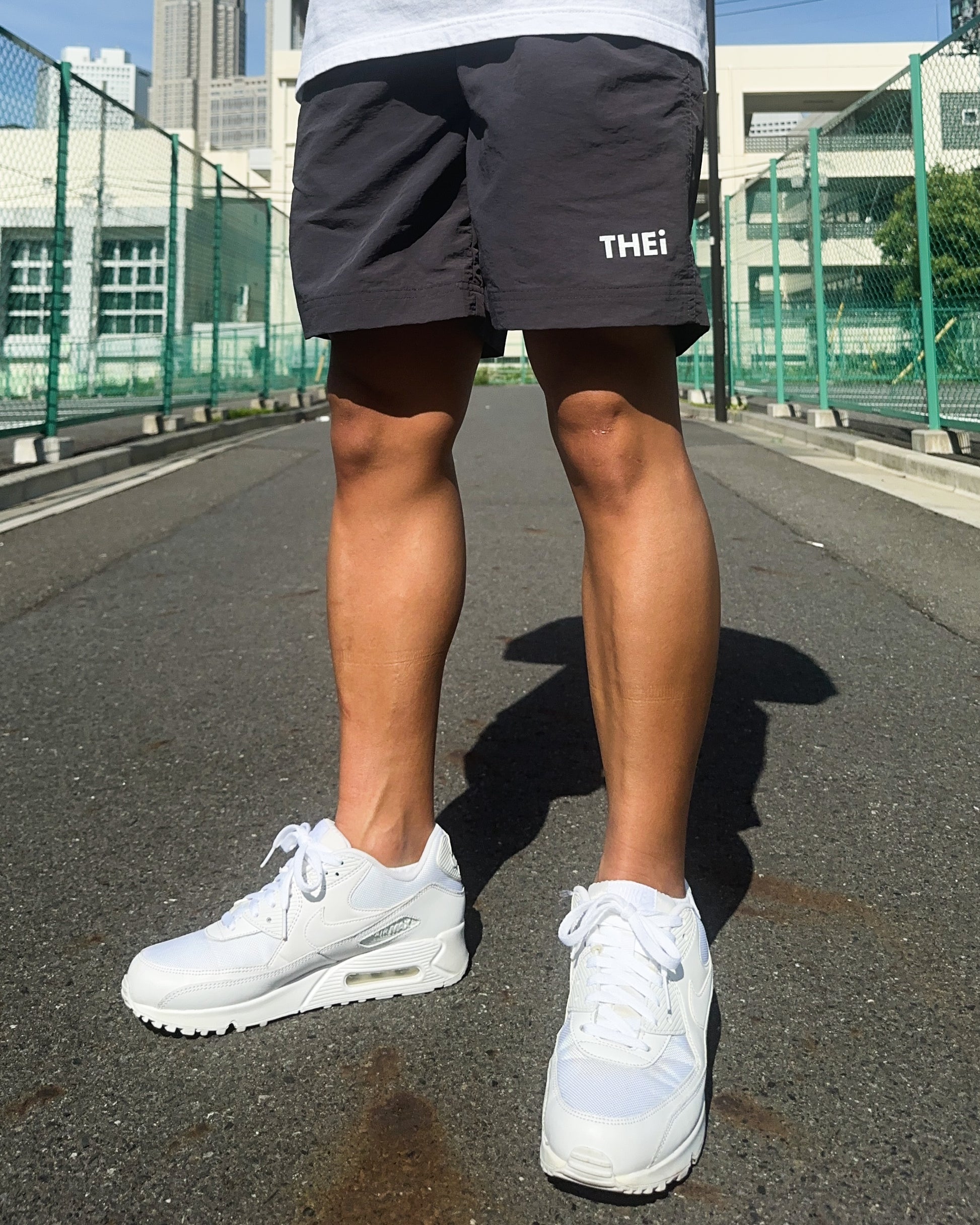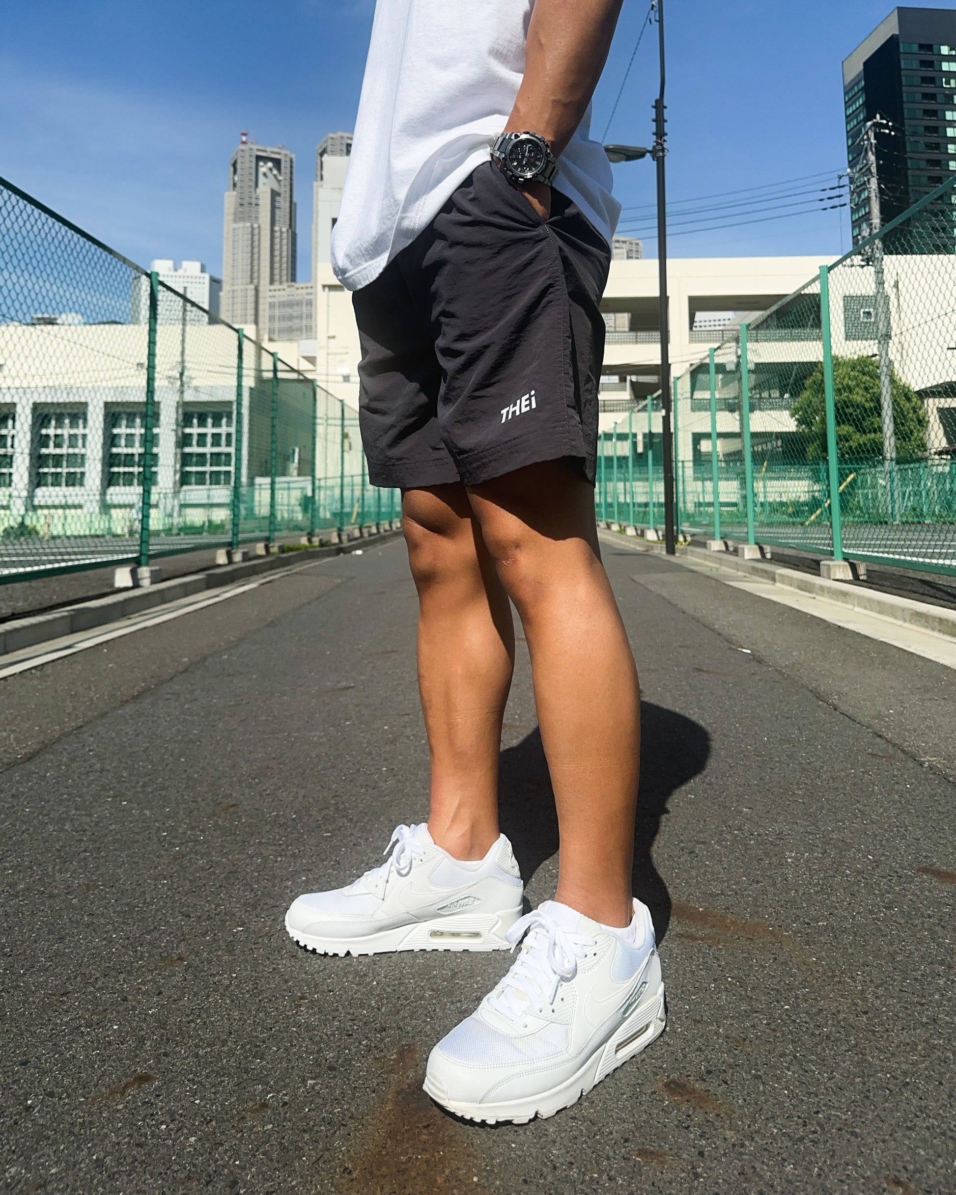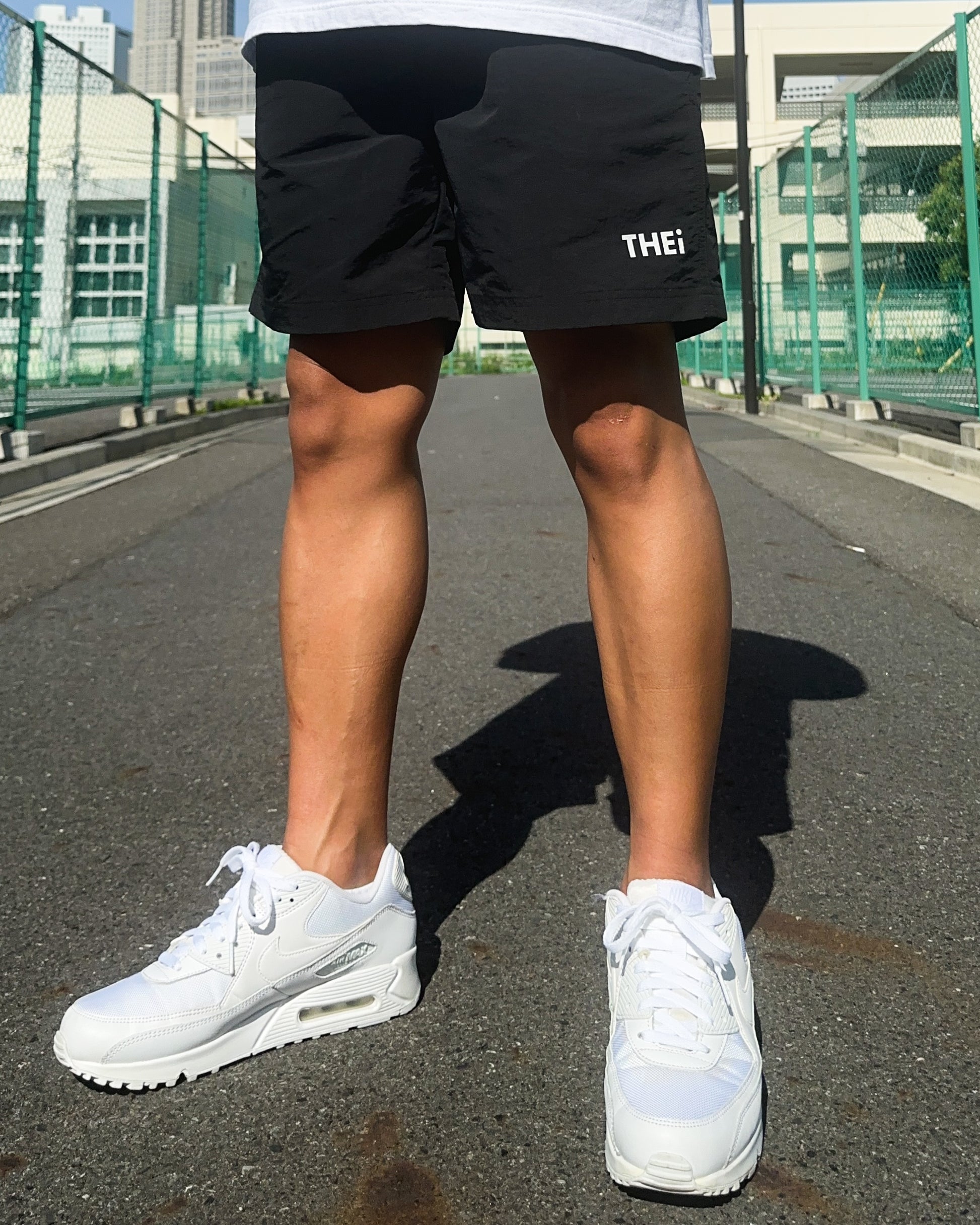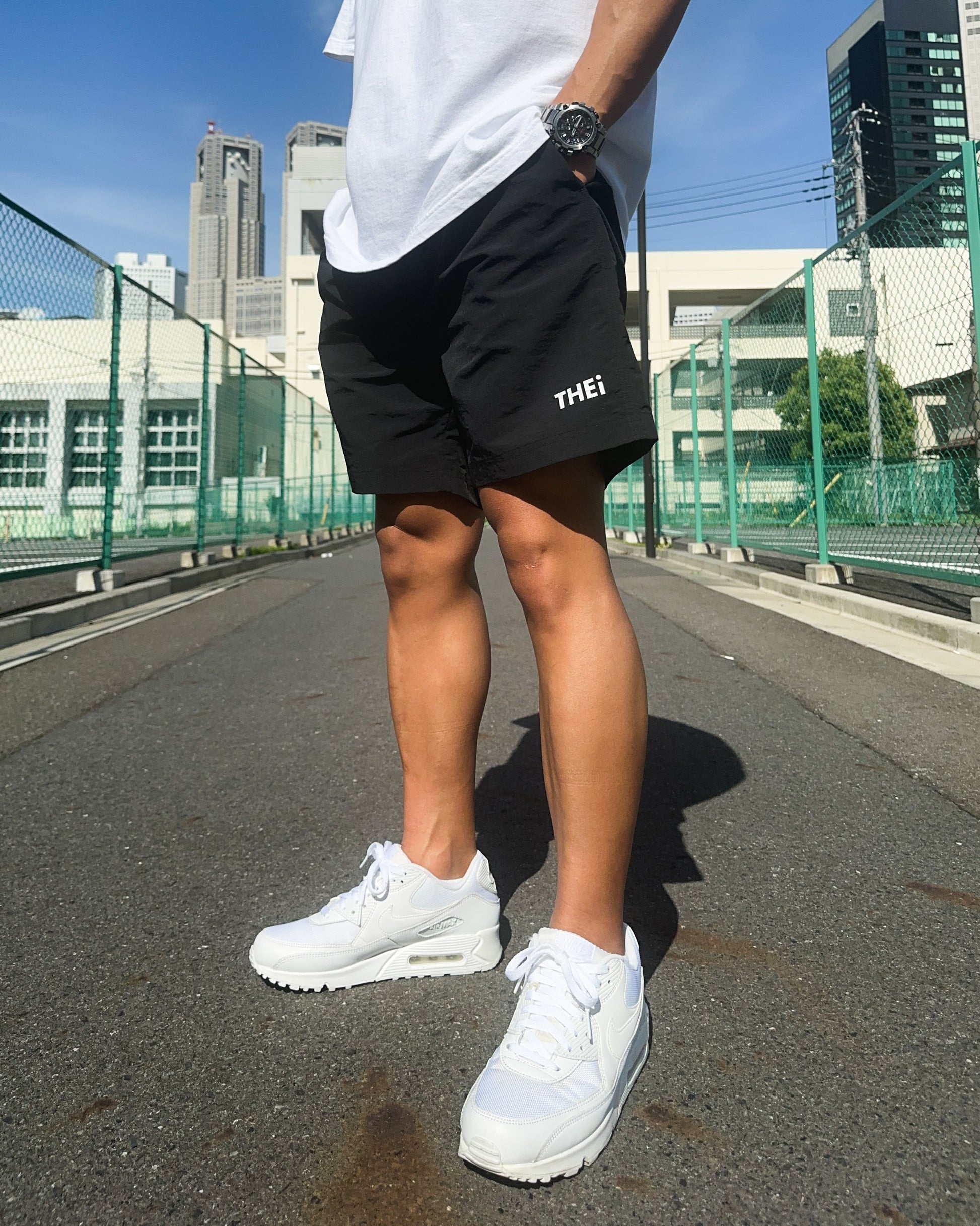 THEiのベーシックロゴを使用したナイロンイージーショーツ。