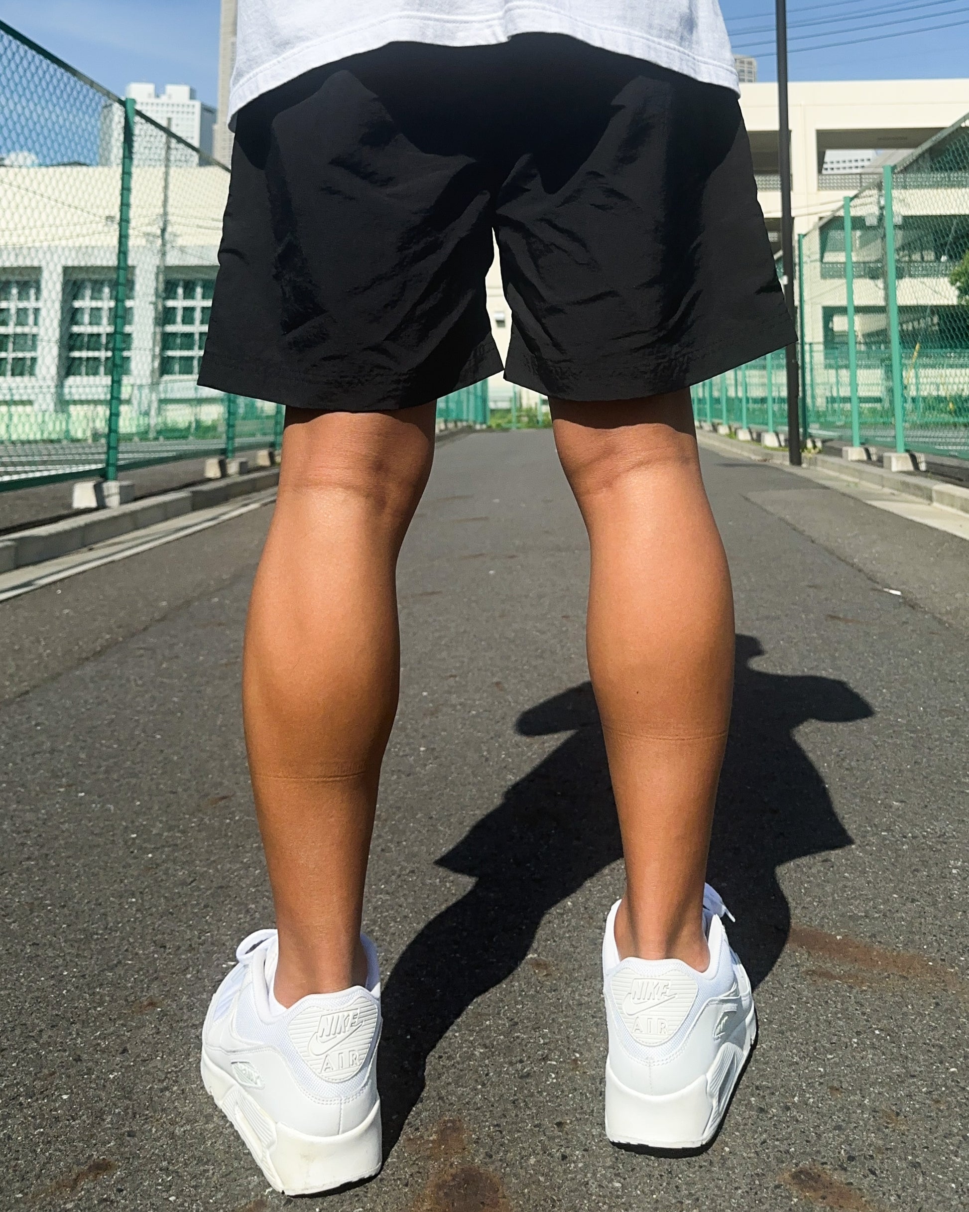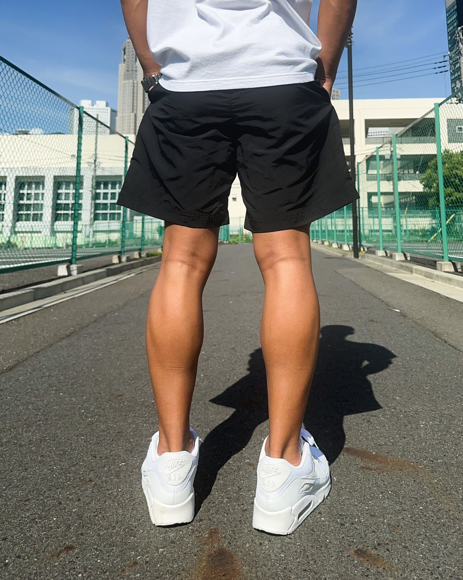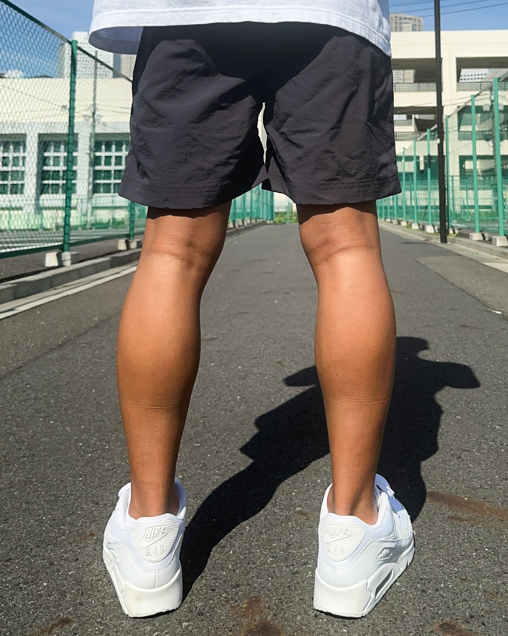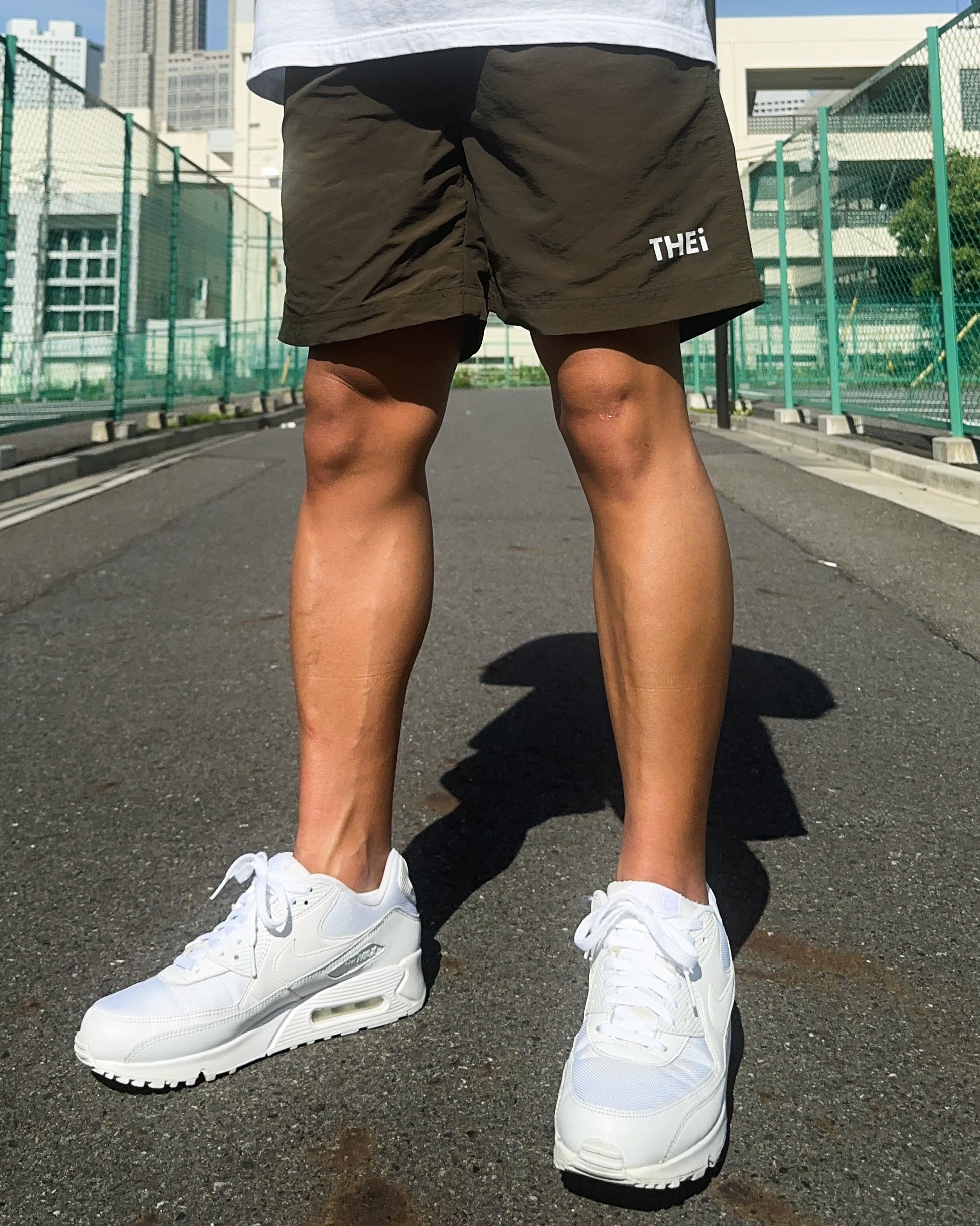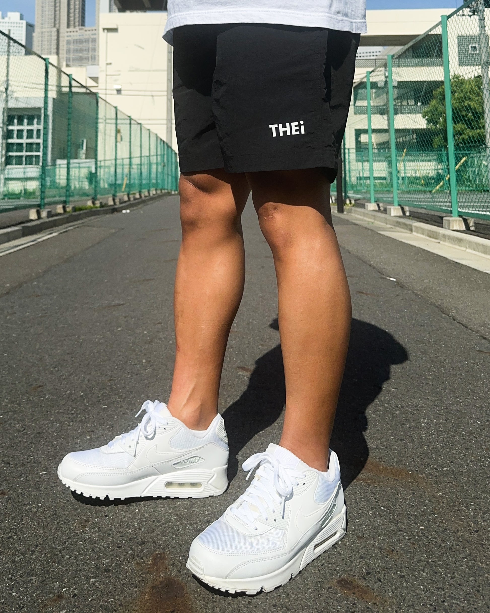 THEiのベーシックロゴを使用したナイロンイージーショーツ。