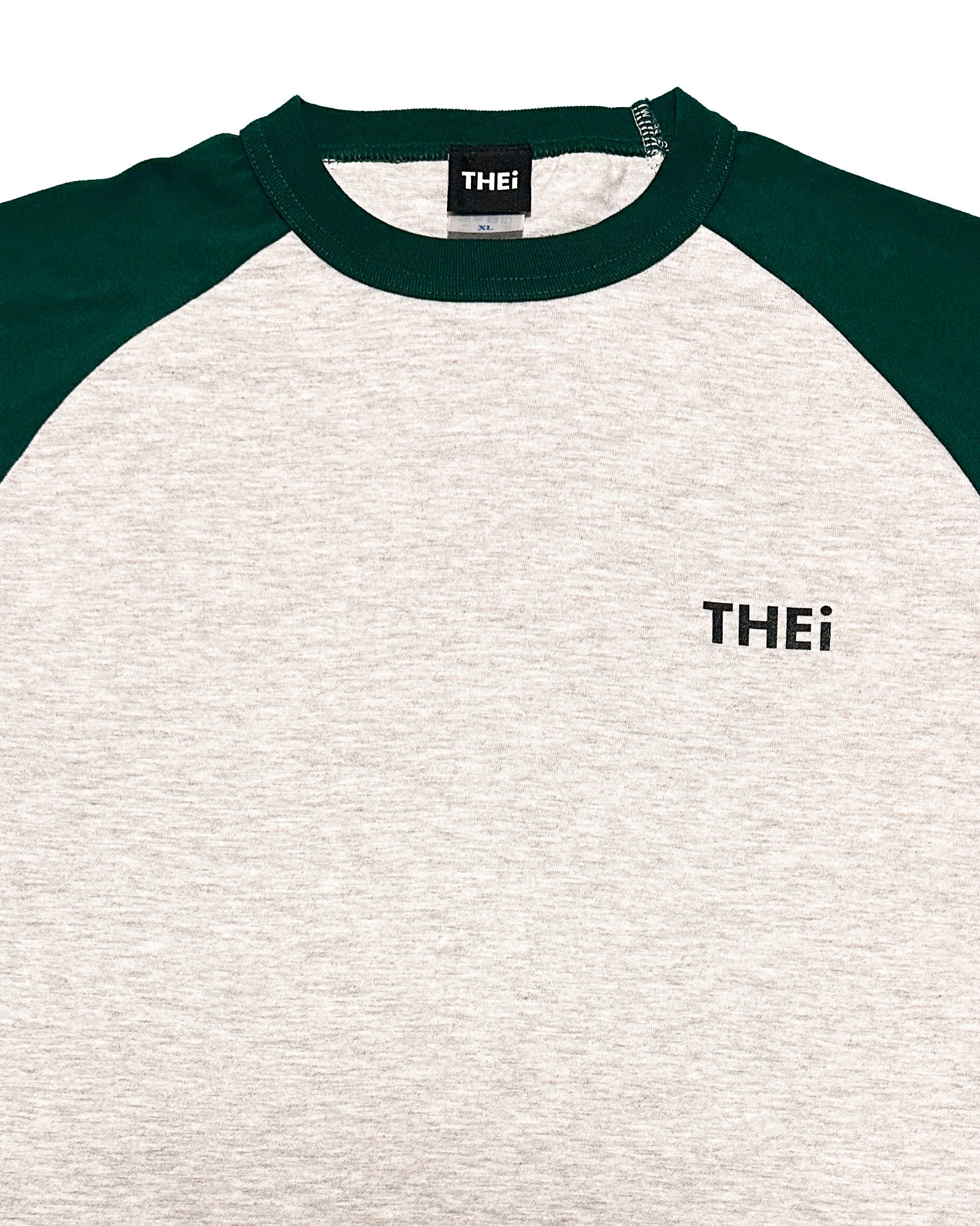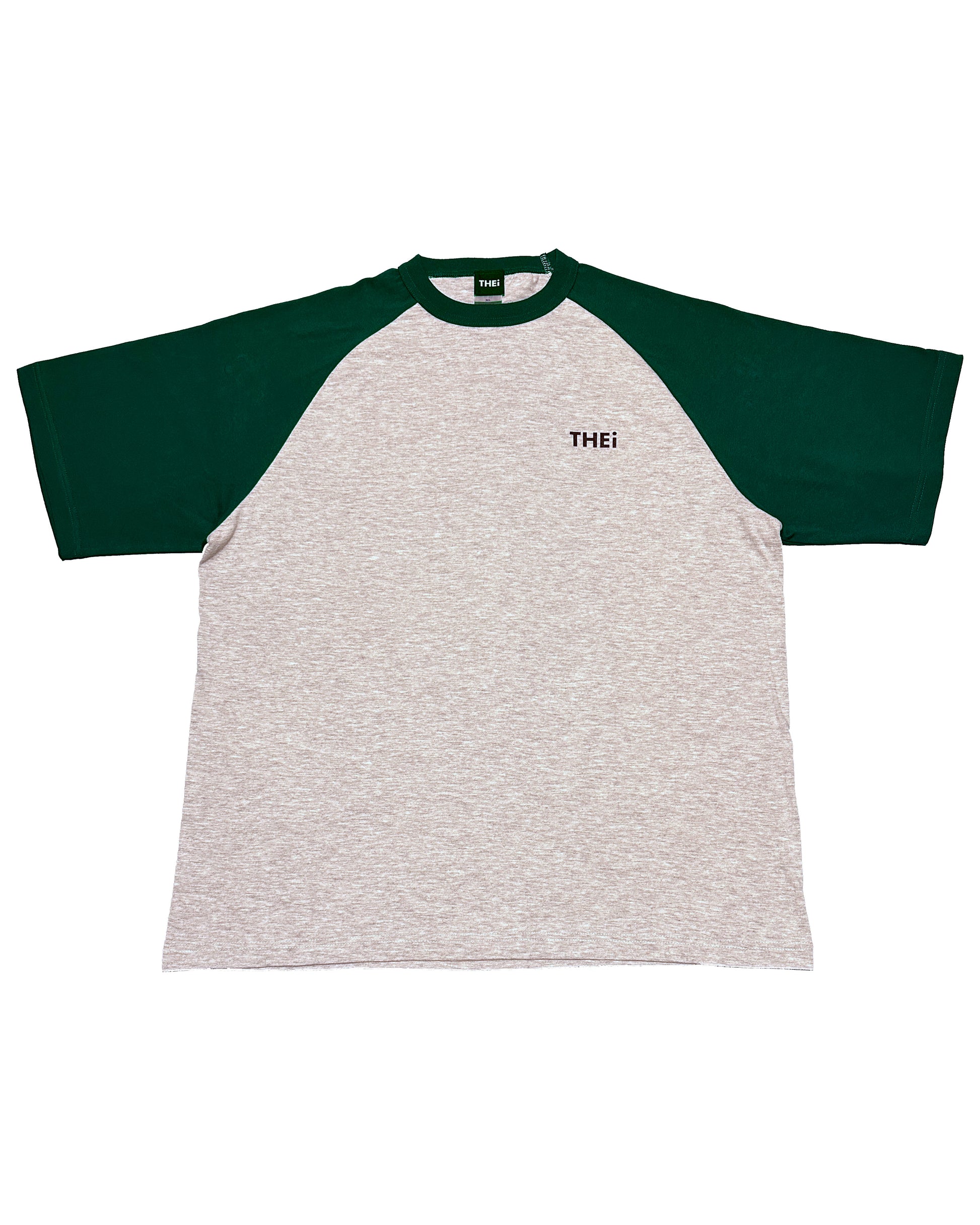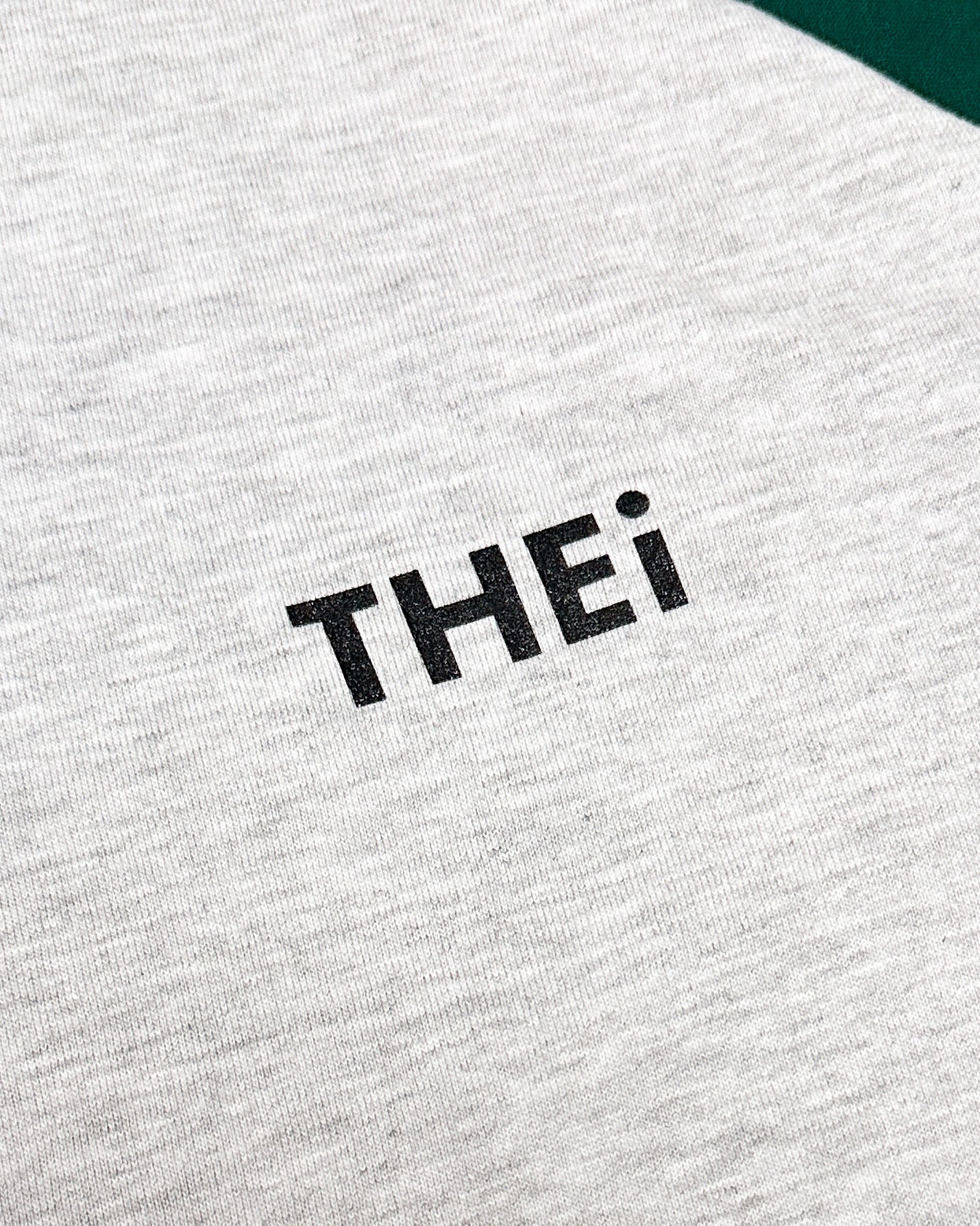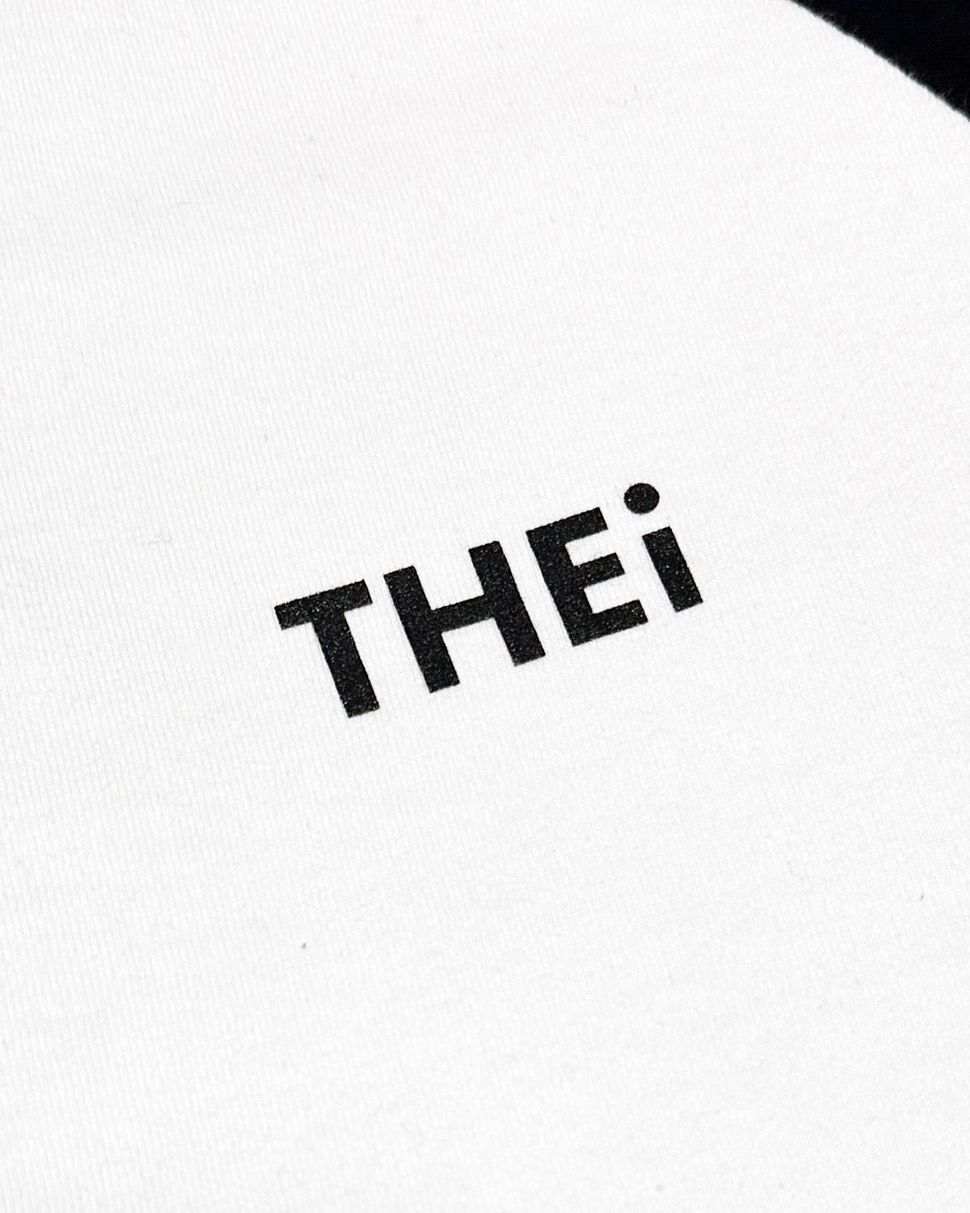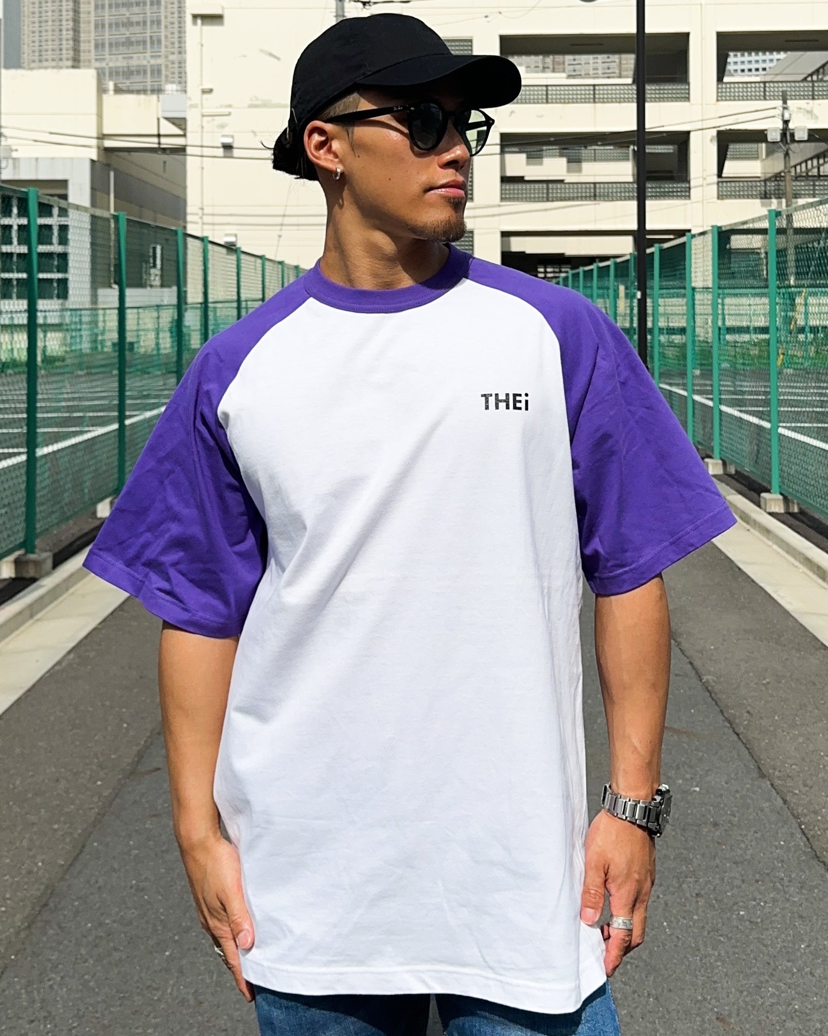 THEiのベーシックロゴを使用したラグラン半袖Tシャツ。