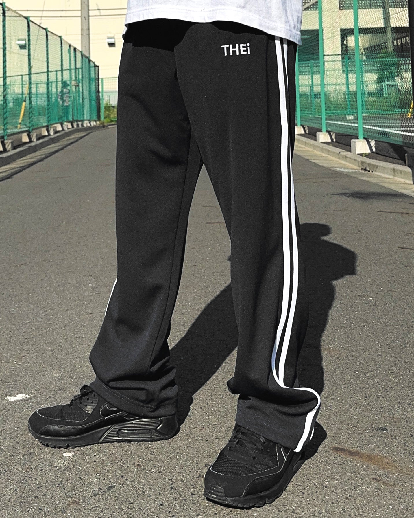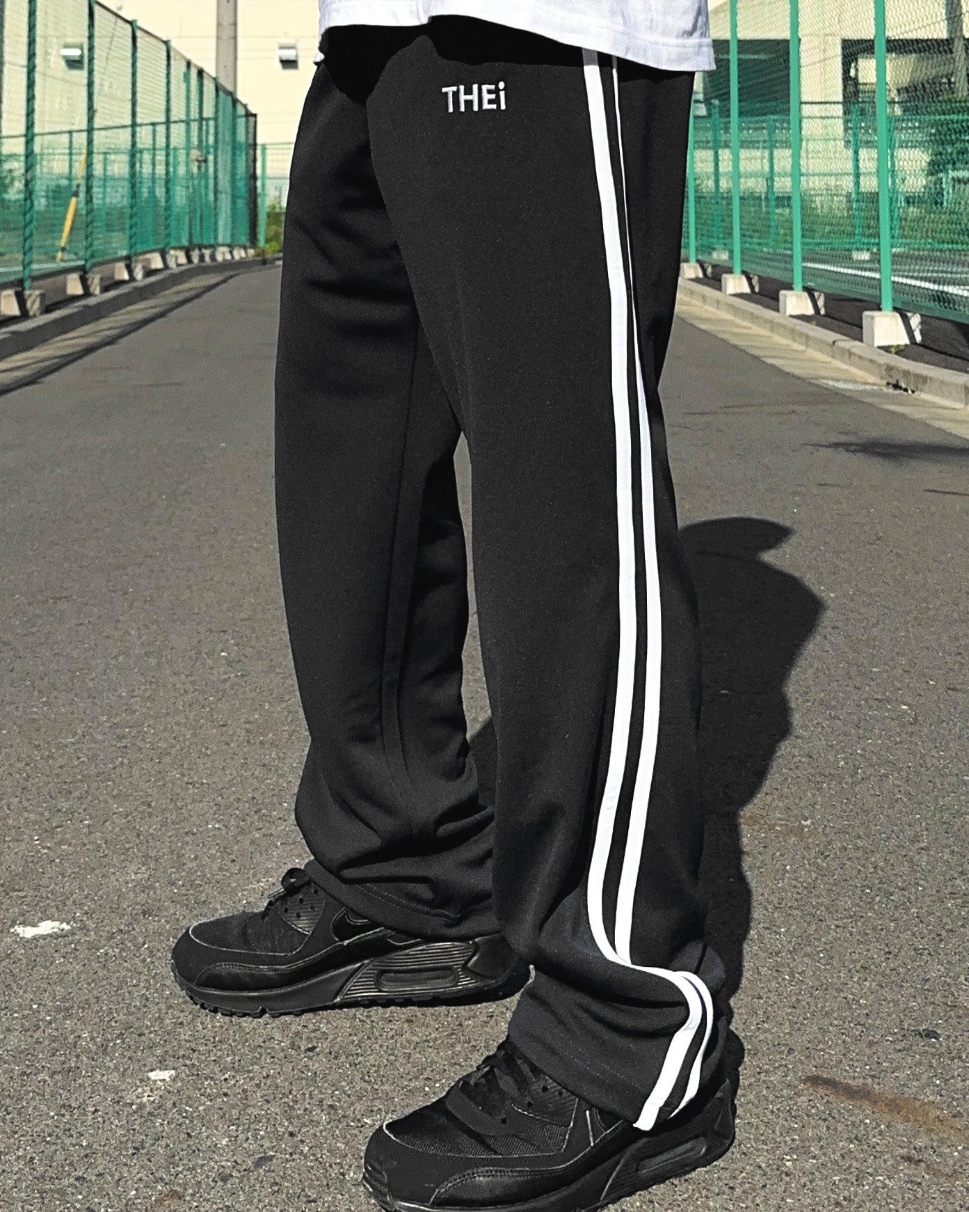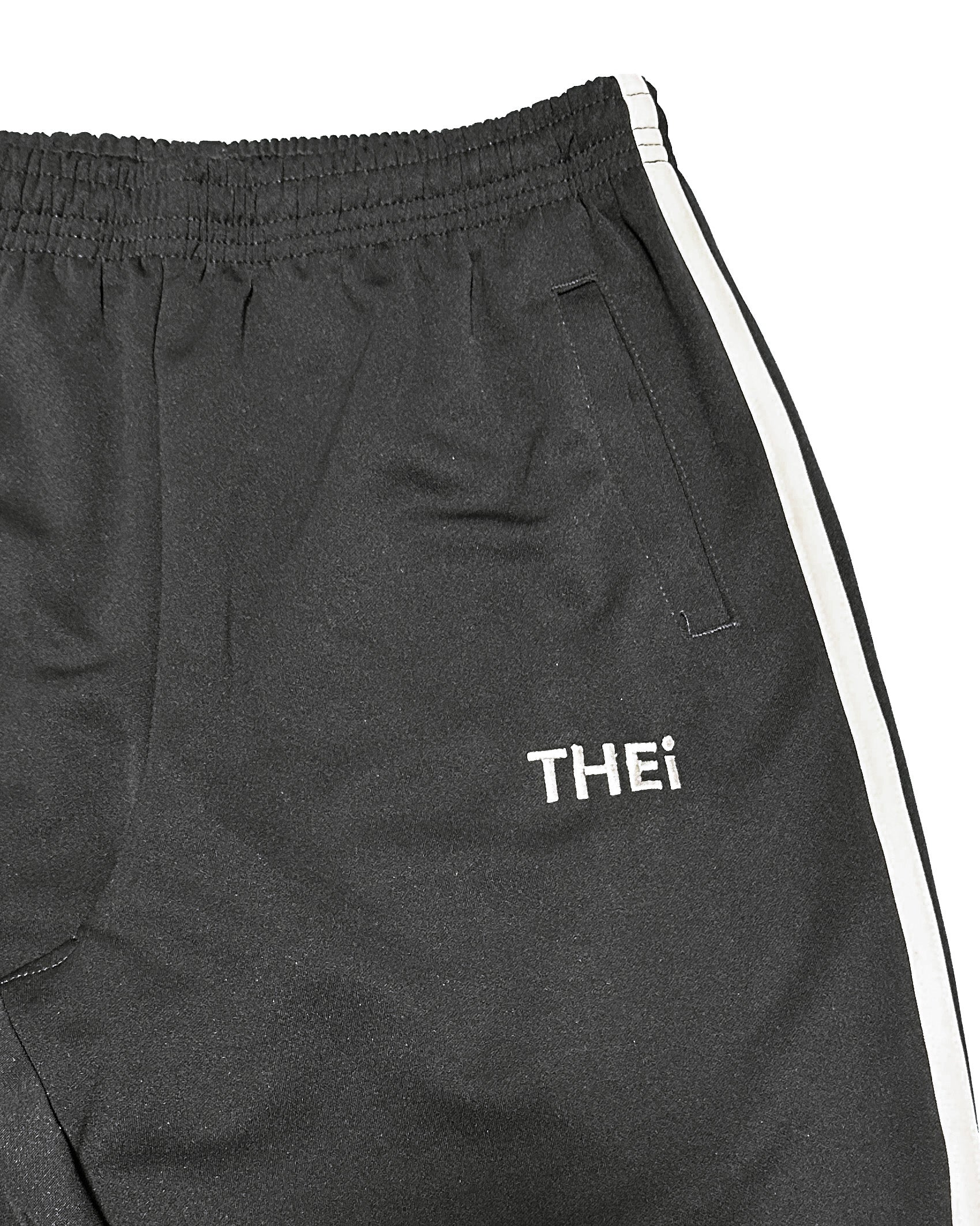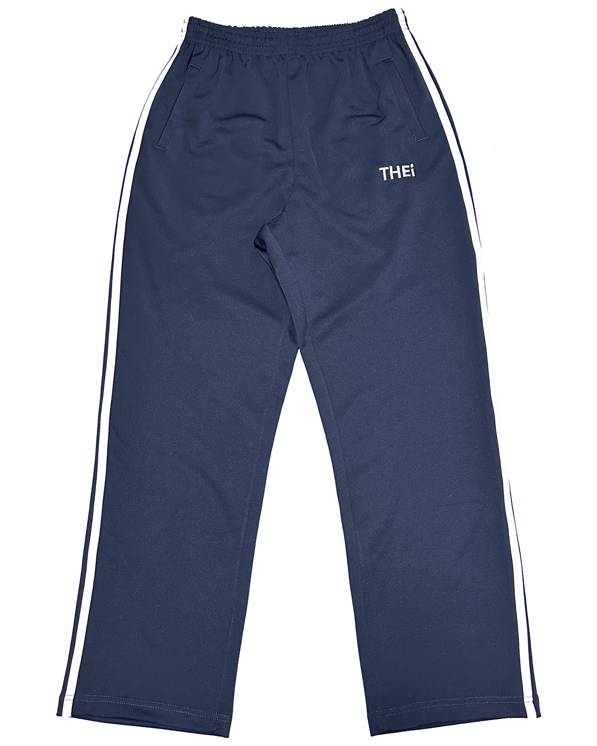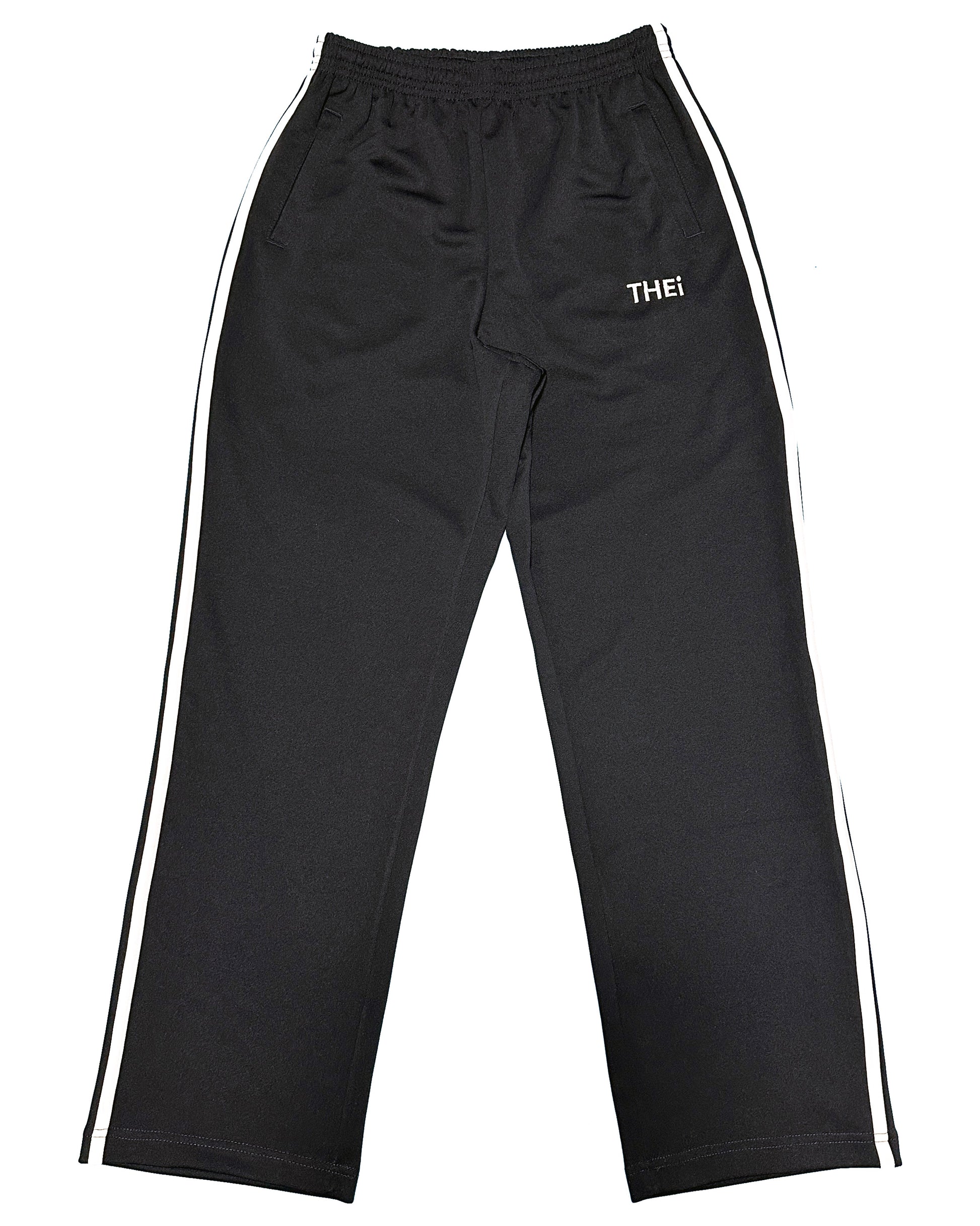 THEiのベーシックロゴを使用したトラックパンツ。