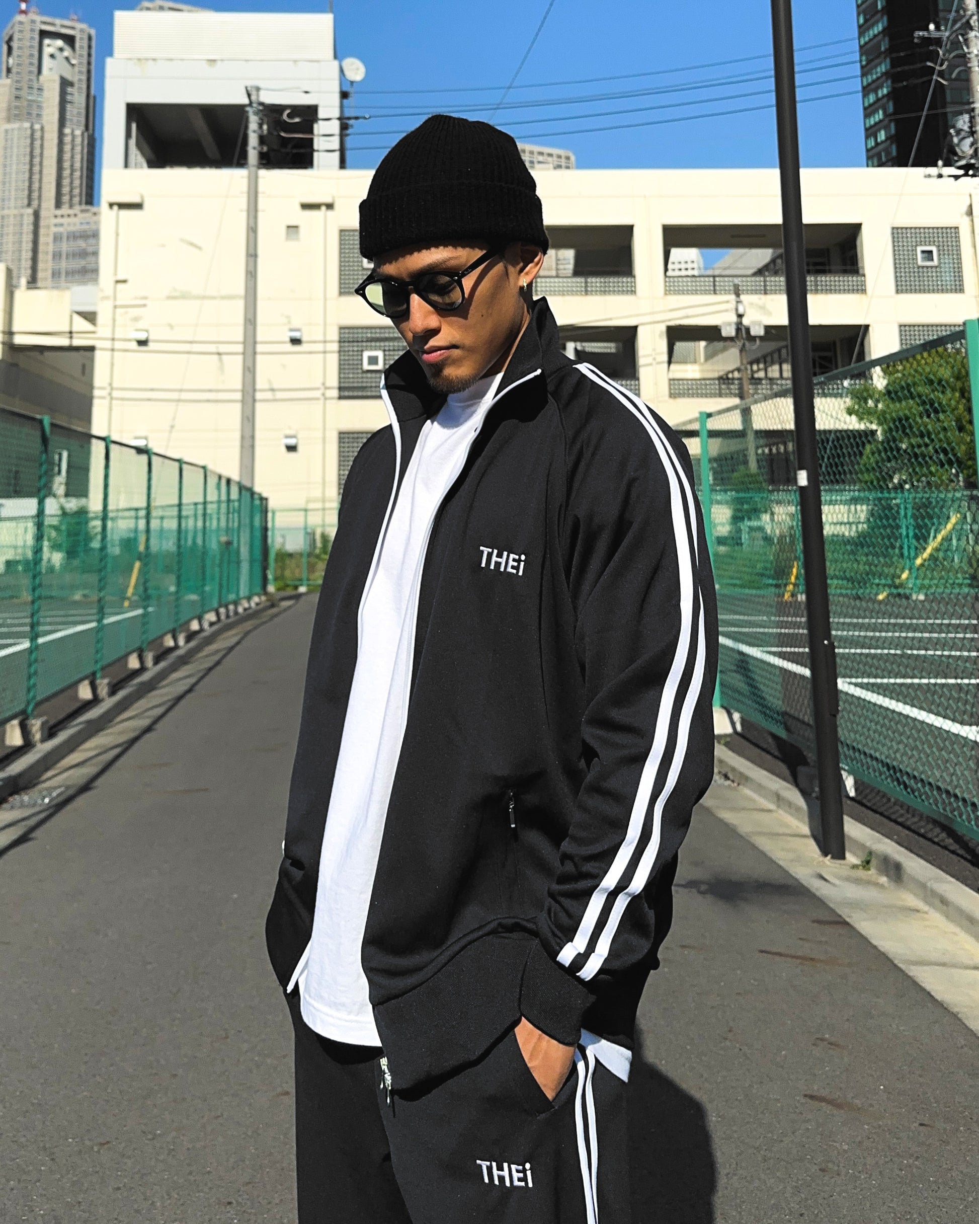 THEiのベーシックロゴを使用したトラックジャケット。