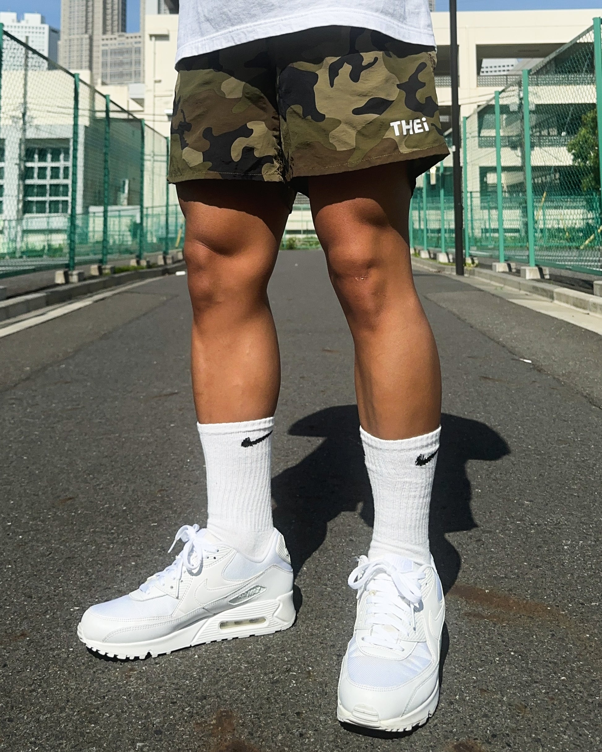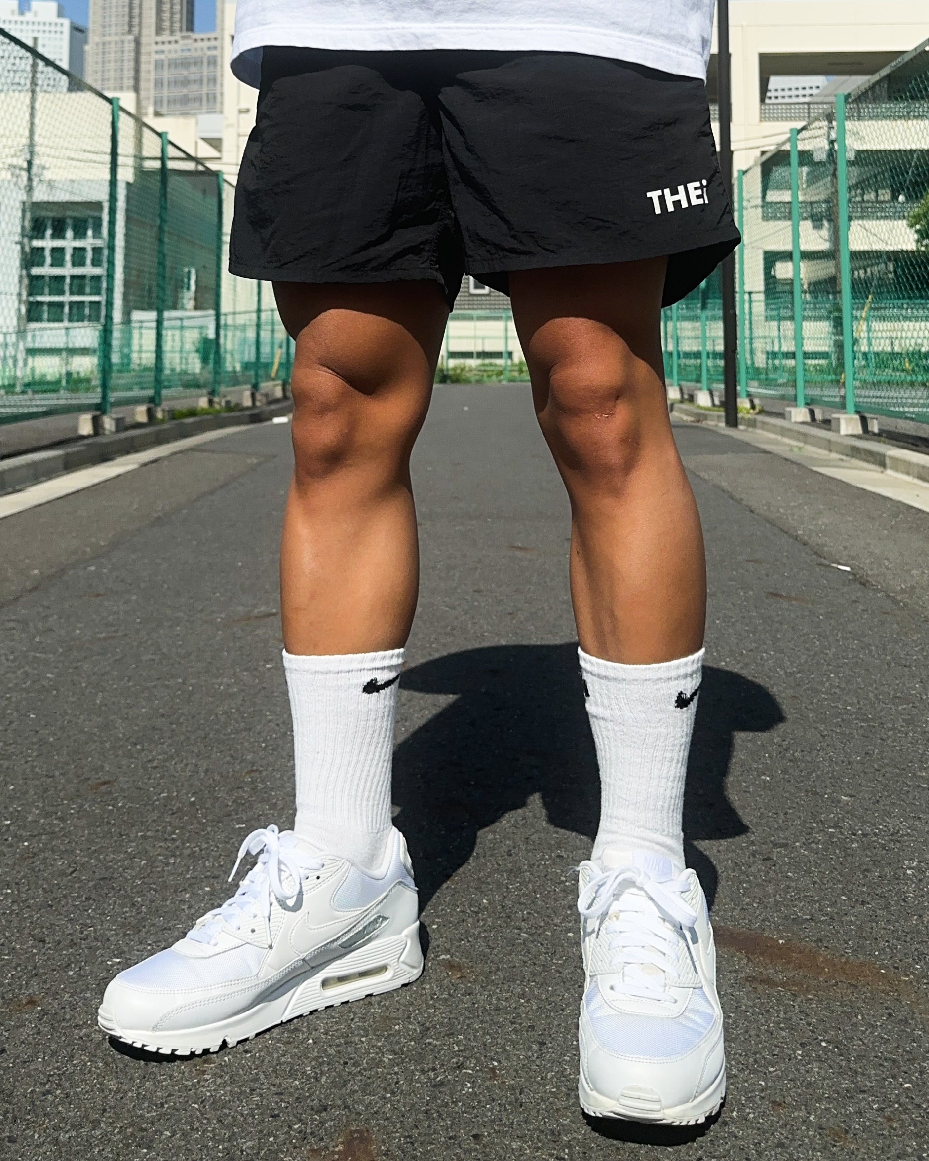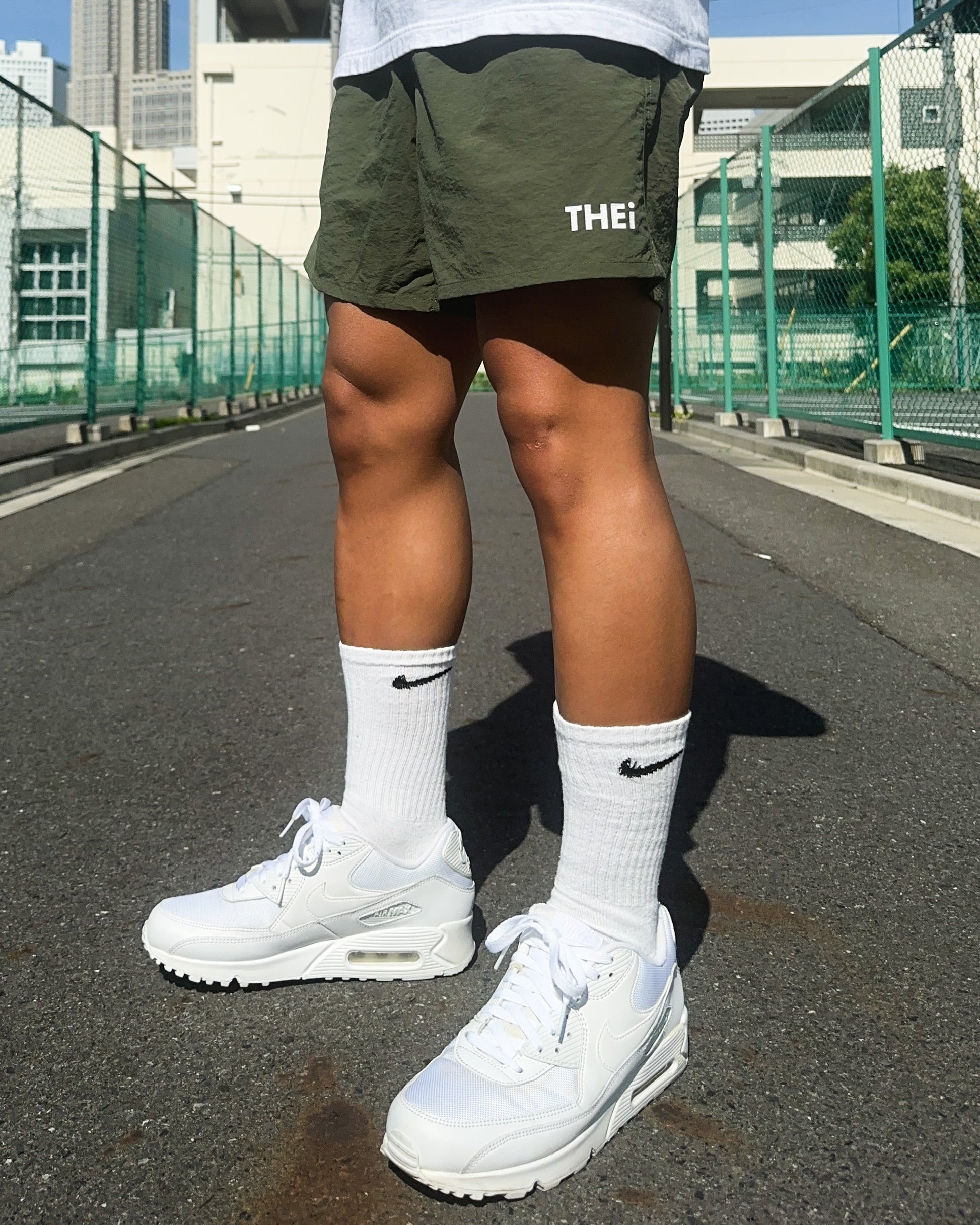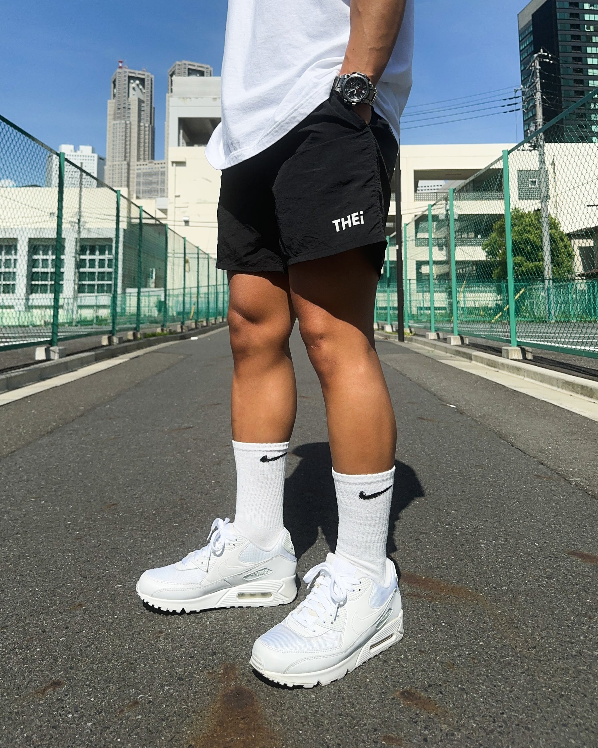 THEiのベーシックロゴを使用したバーサタイルショーツ。