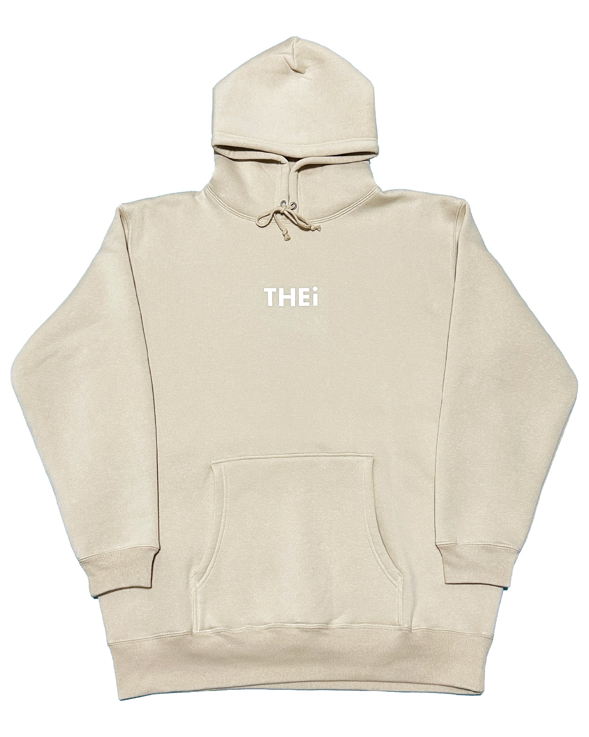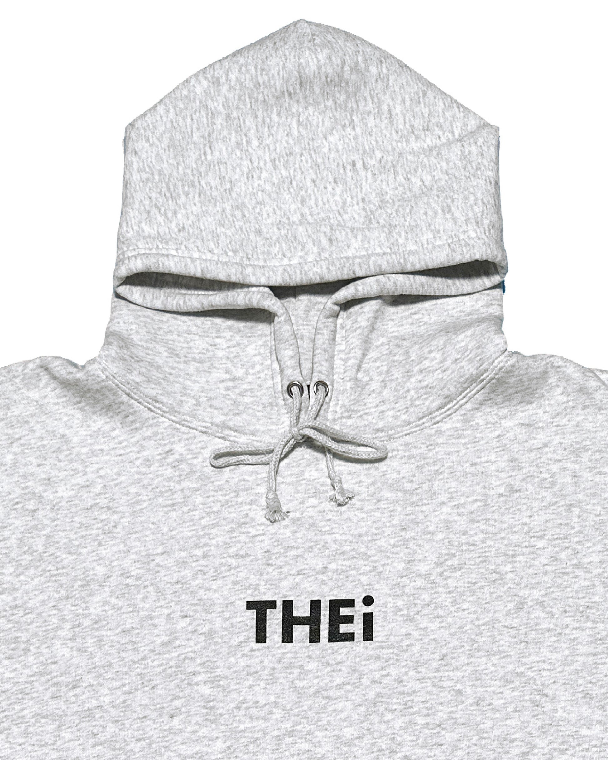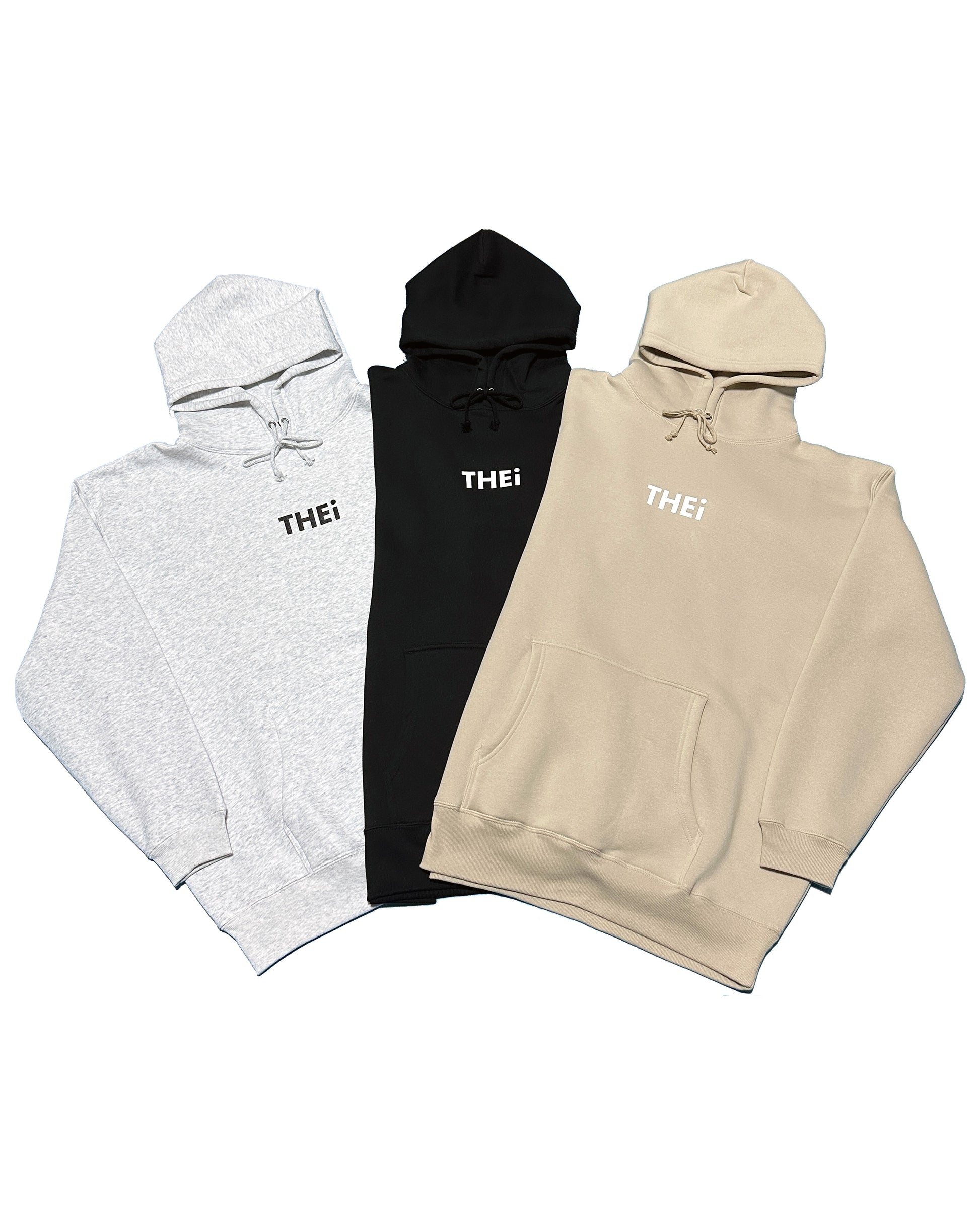 THEiのベーシックロゴを使用したスウェットプルオーバーパーカー。
