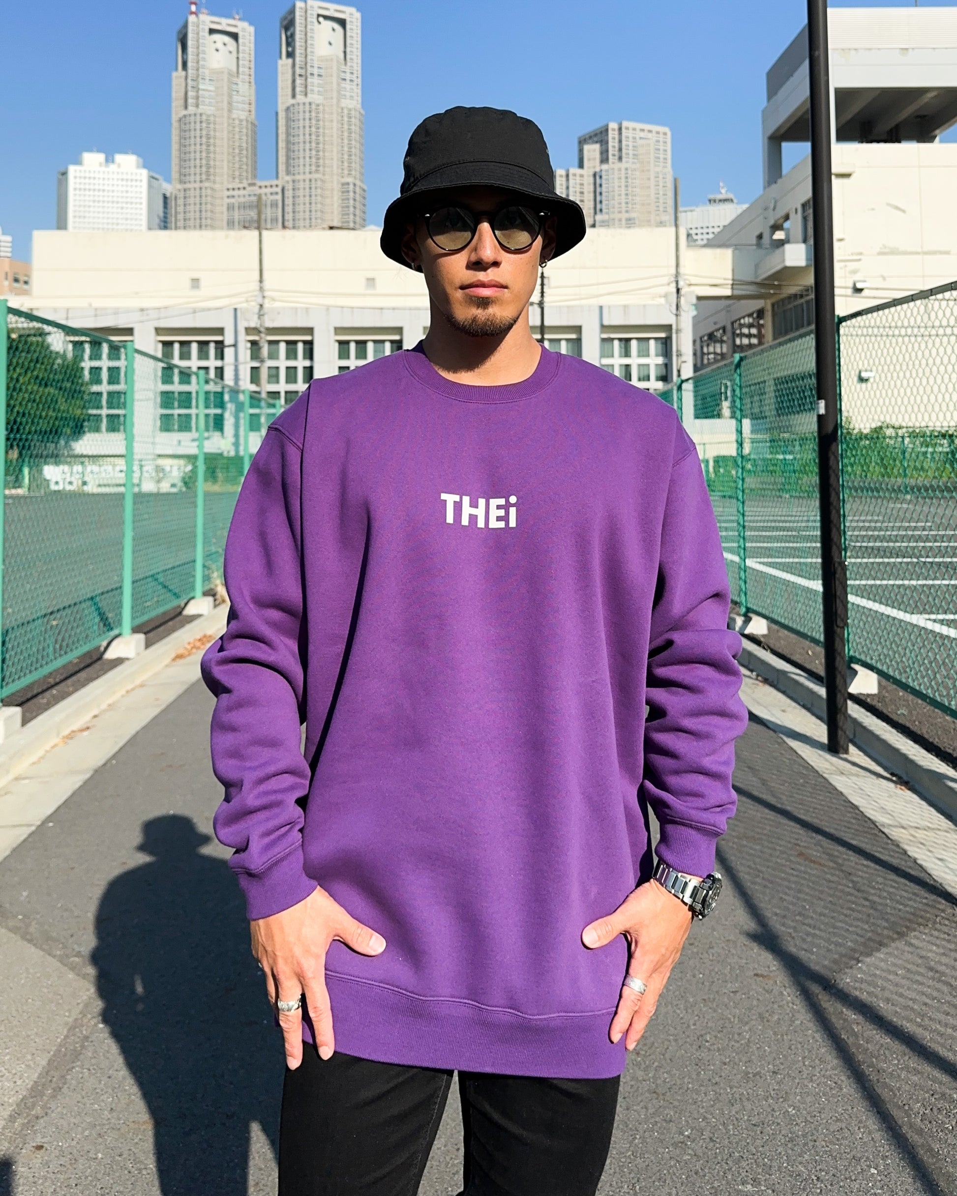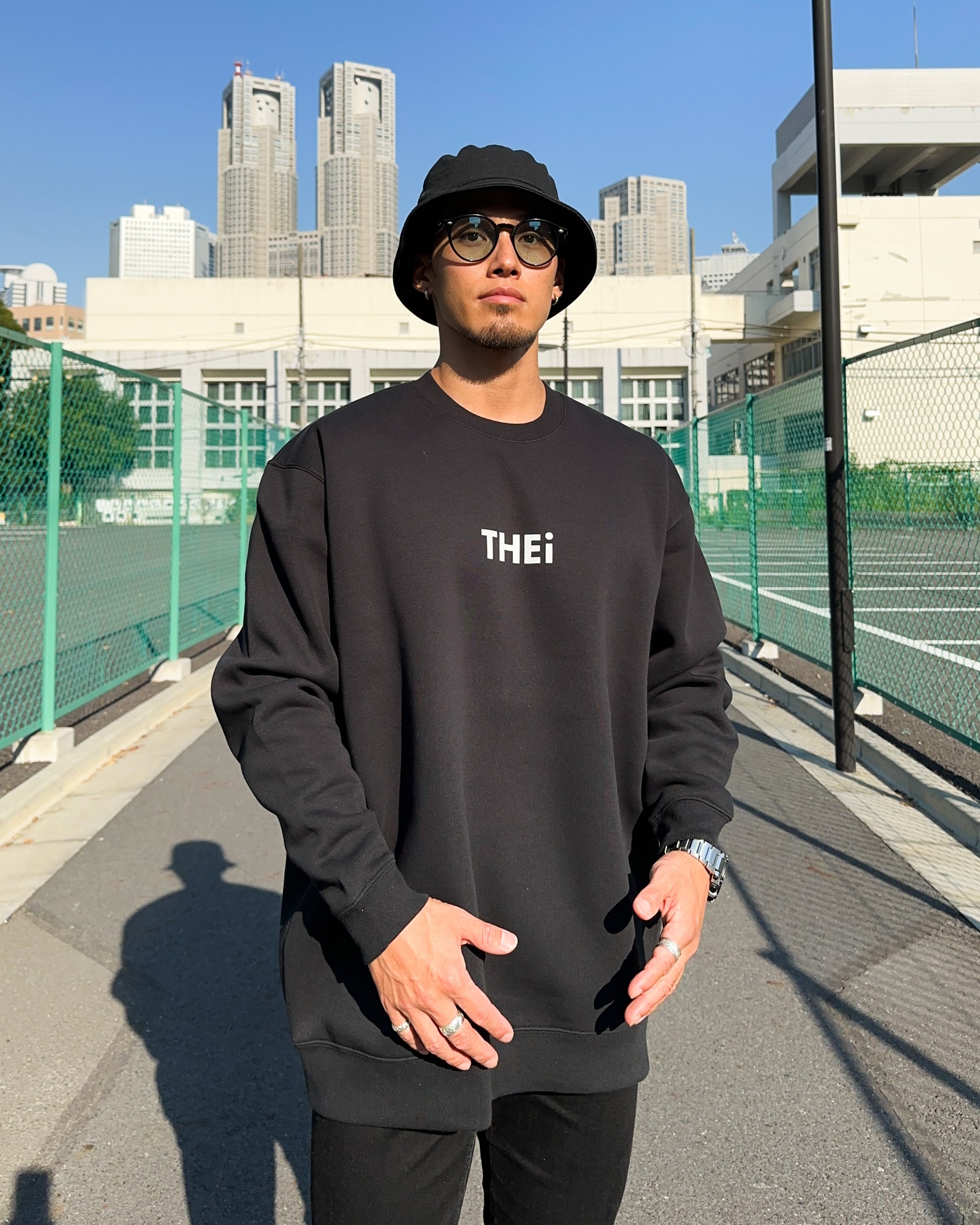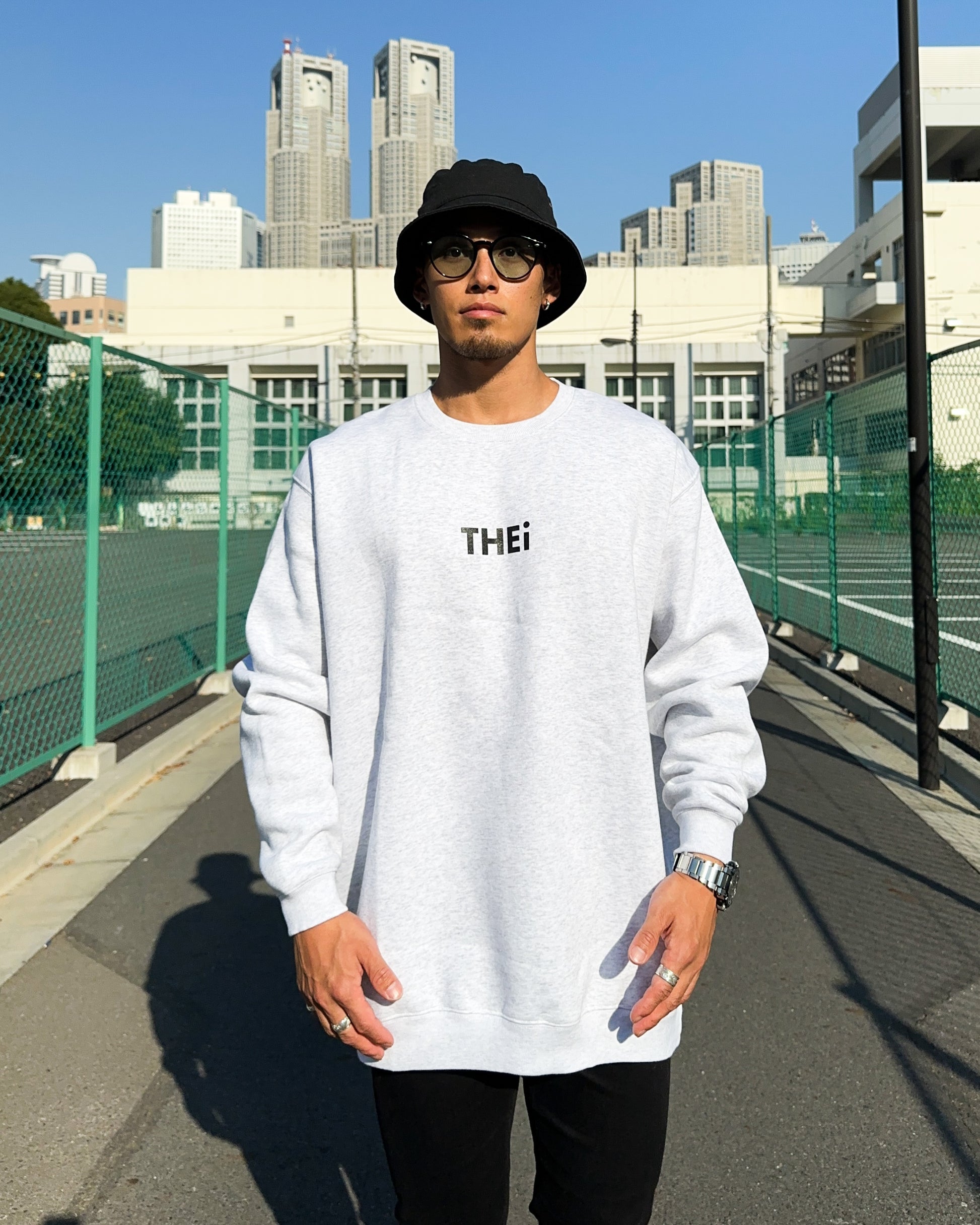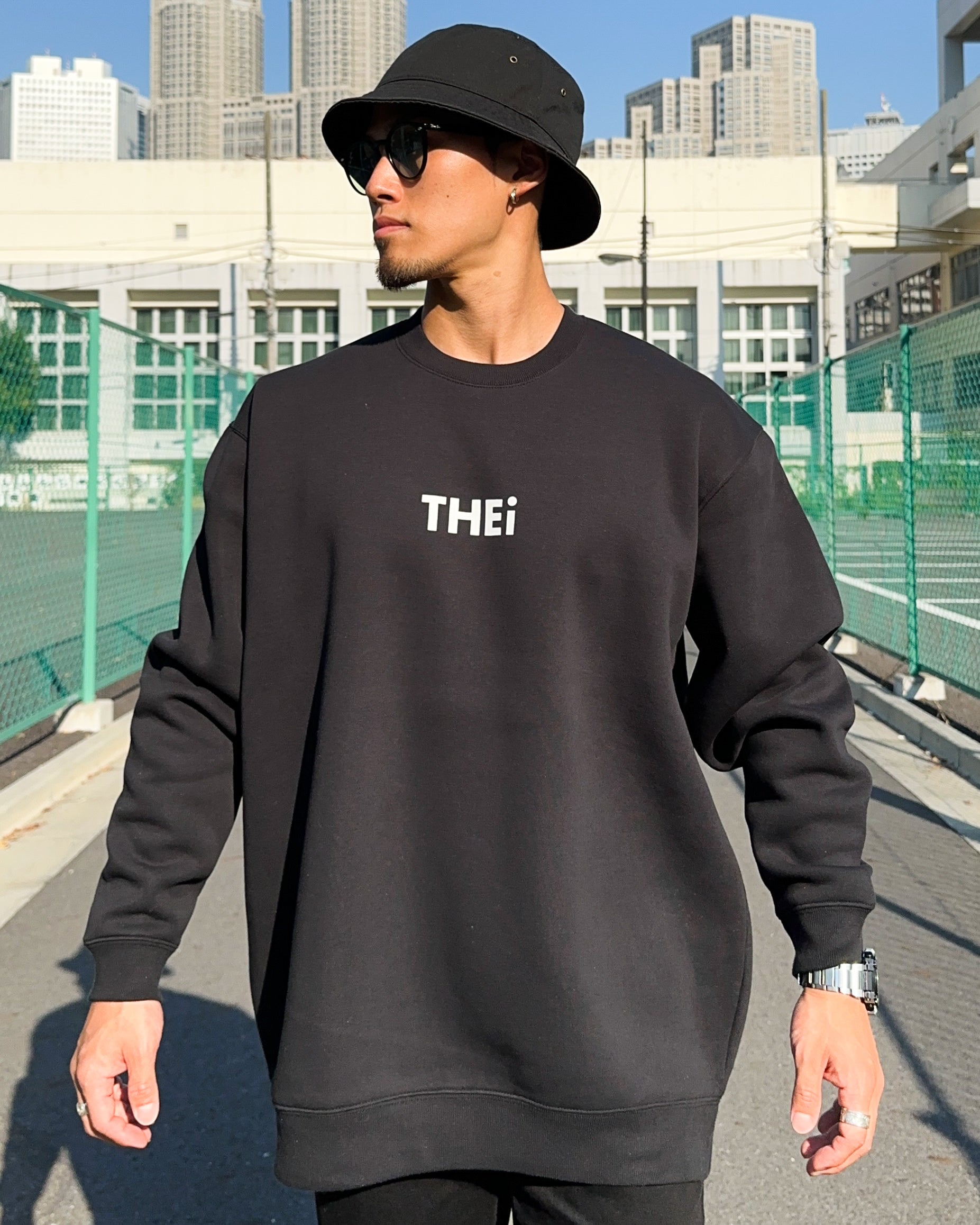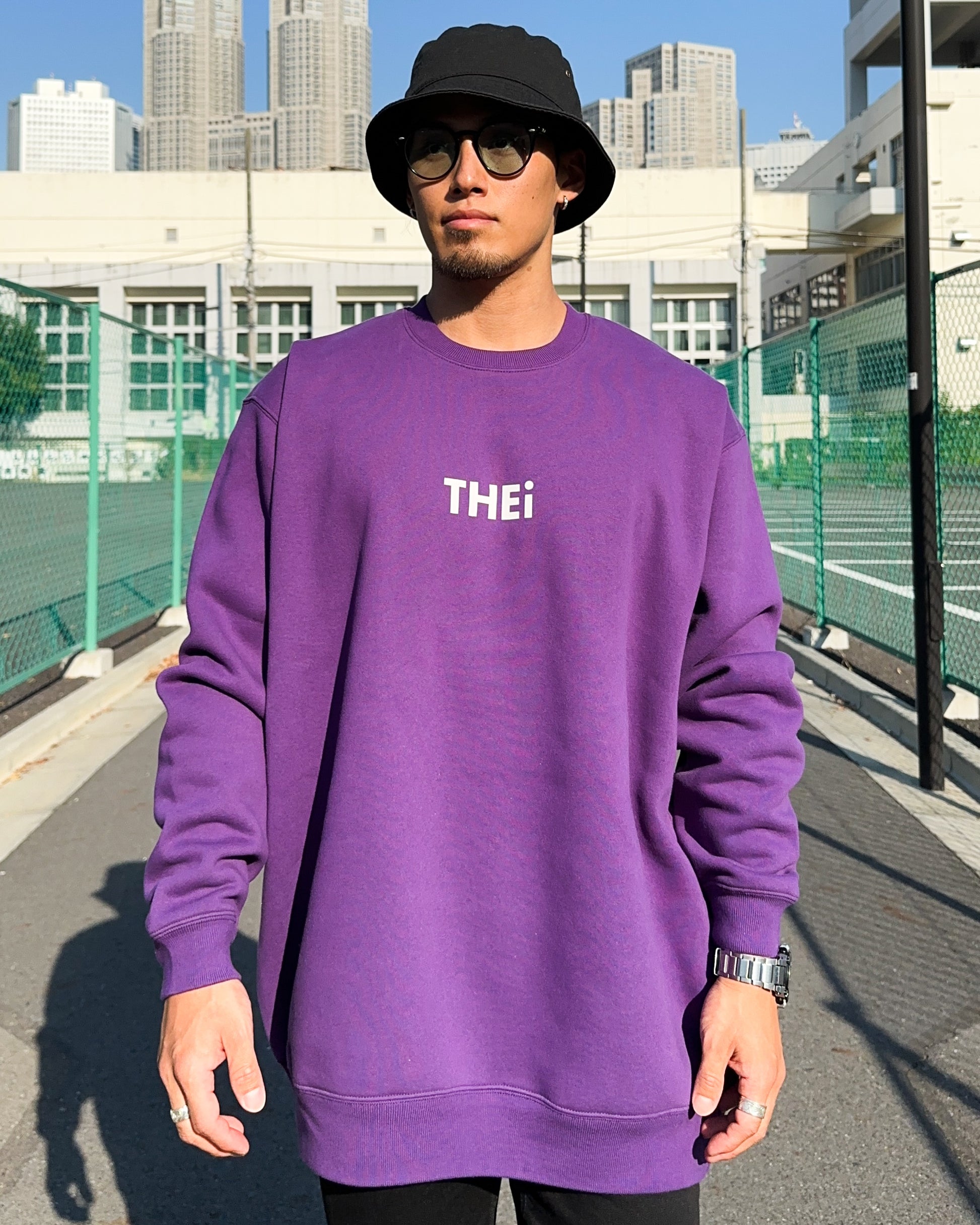 THEiのベーシックロゴを使用したスウェットシャツ。