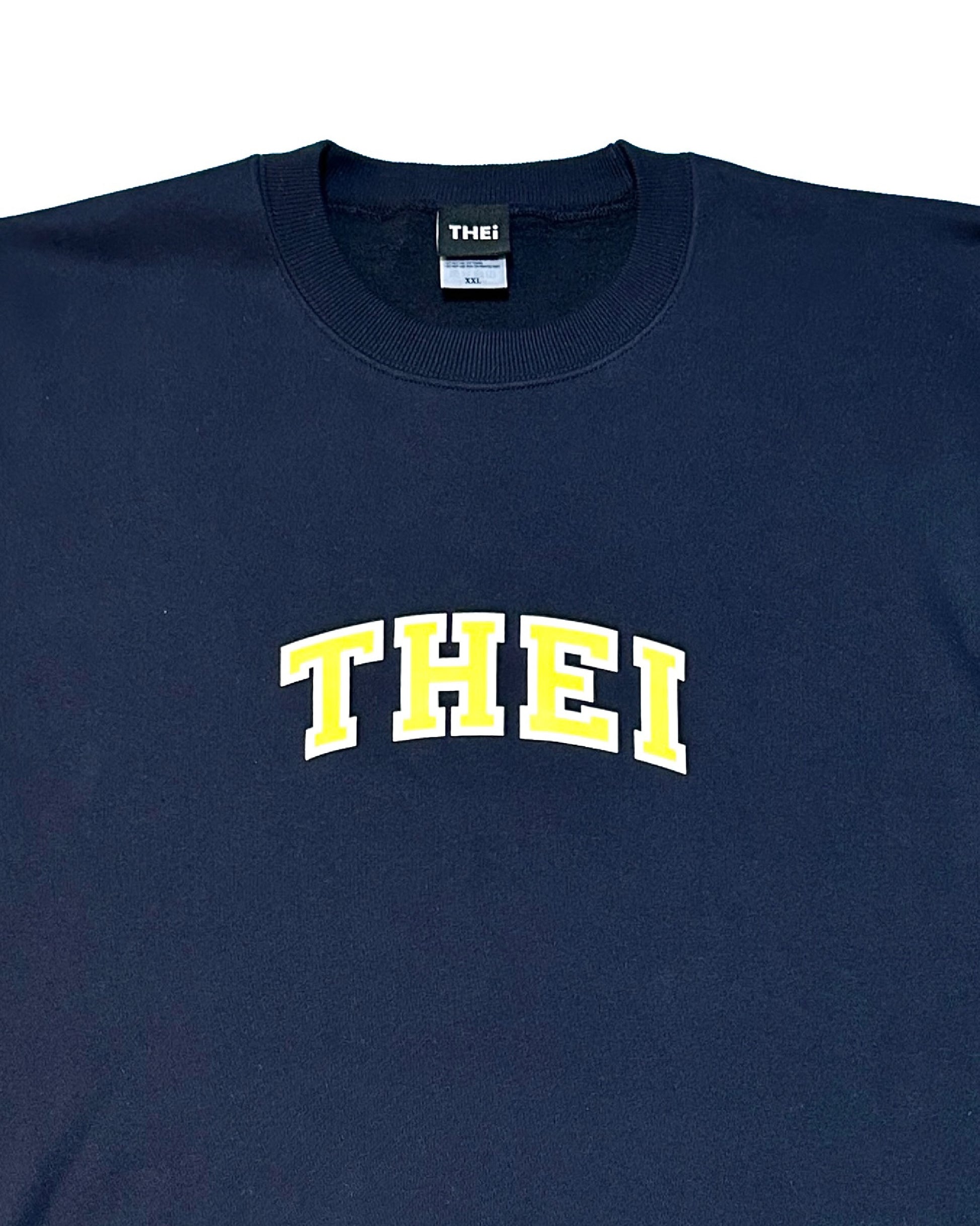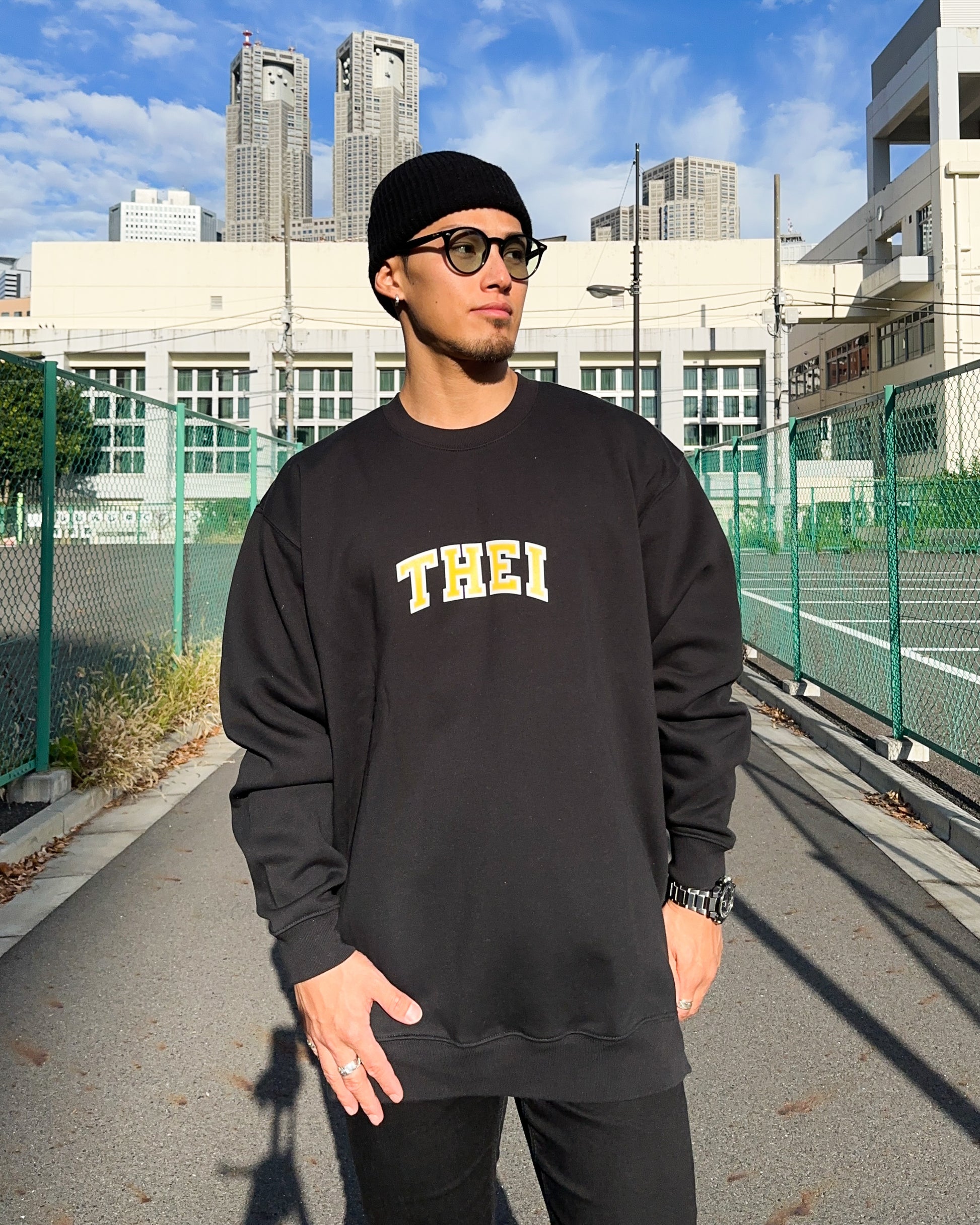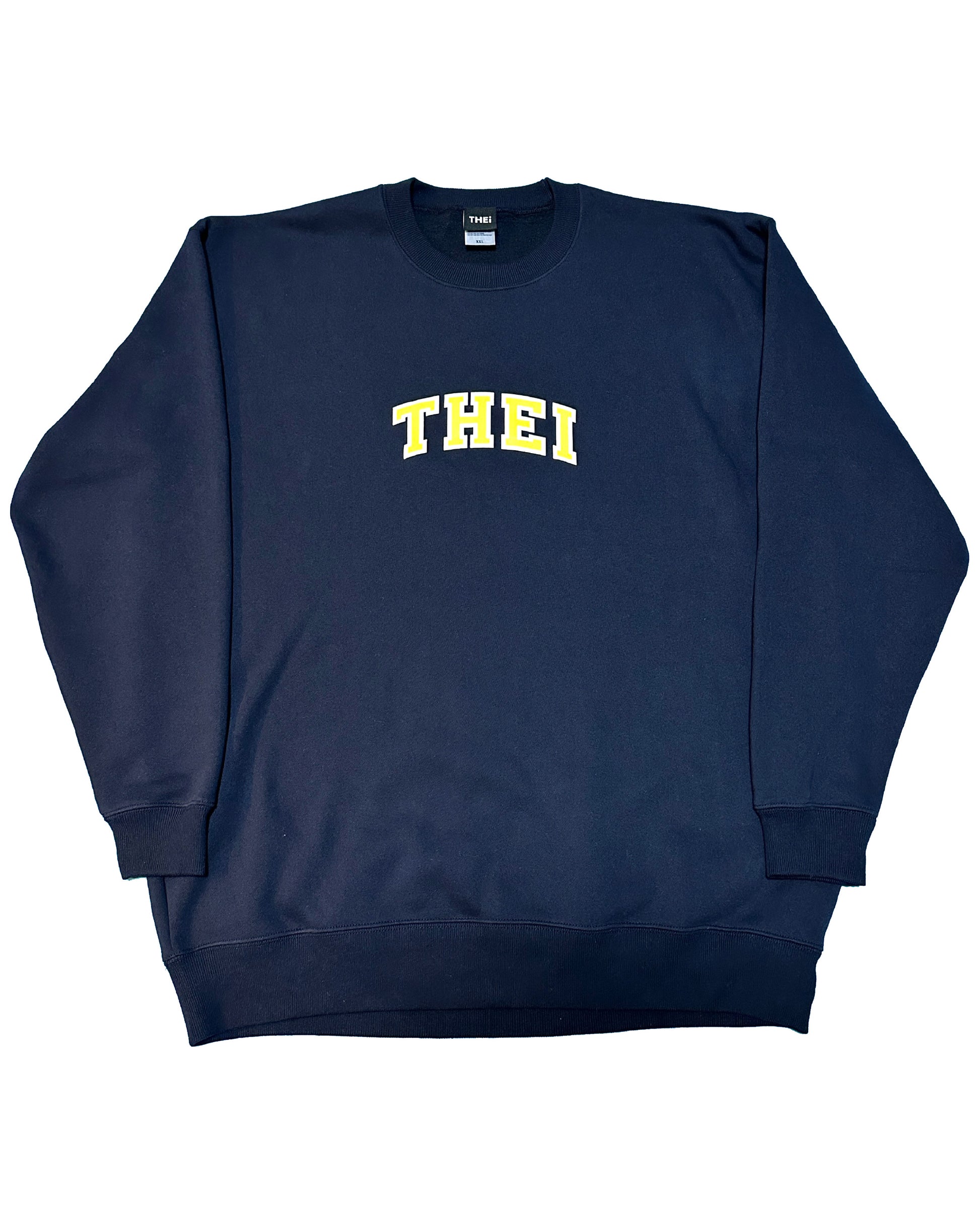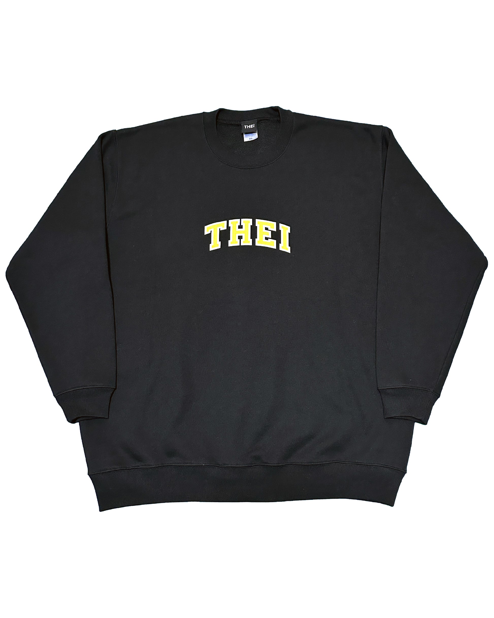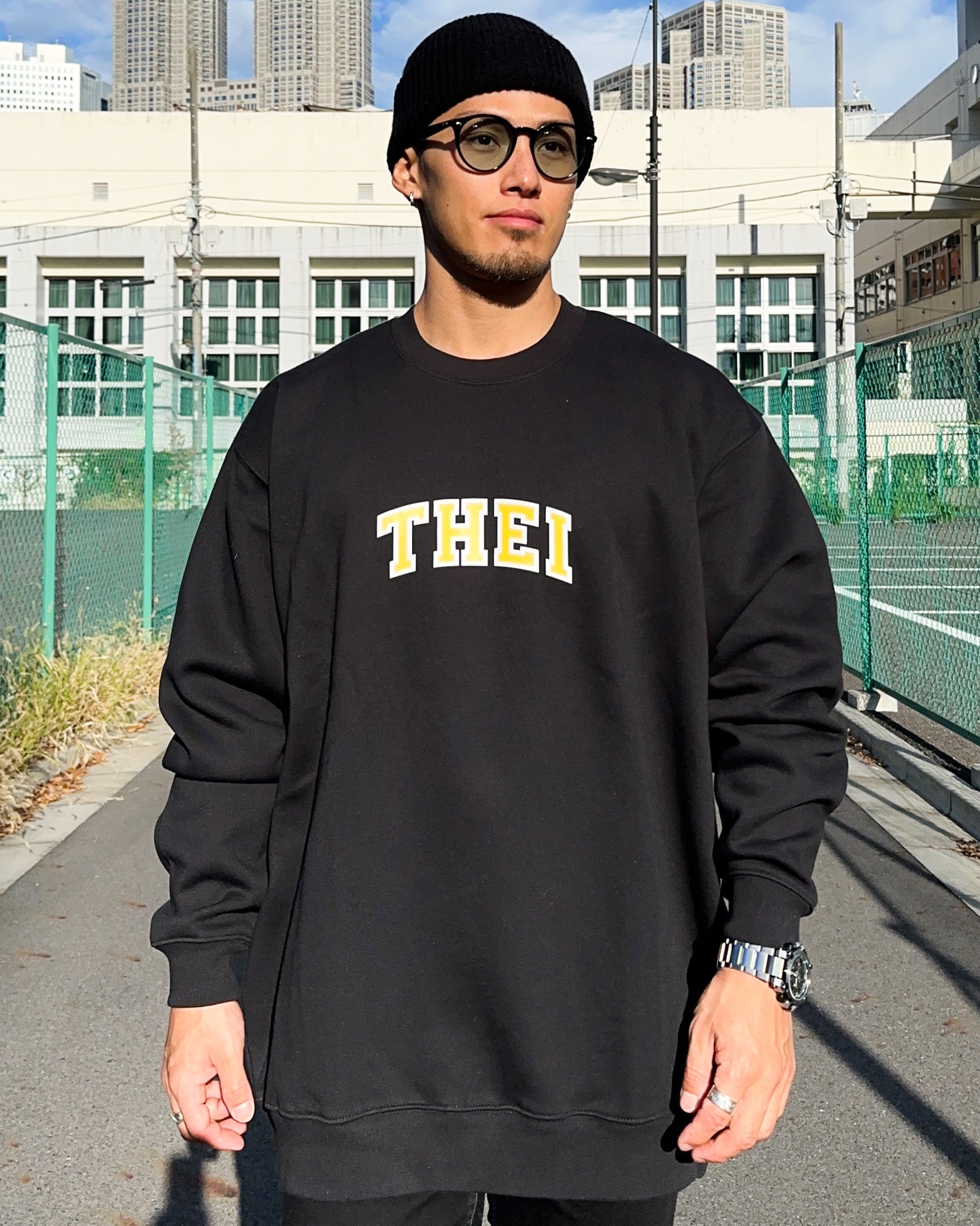 THEiのカレッジロゴを使用したスウェットシャツ。