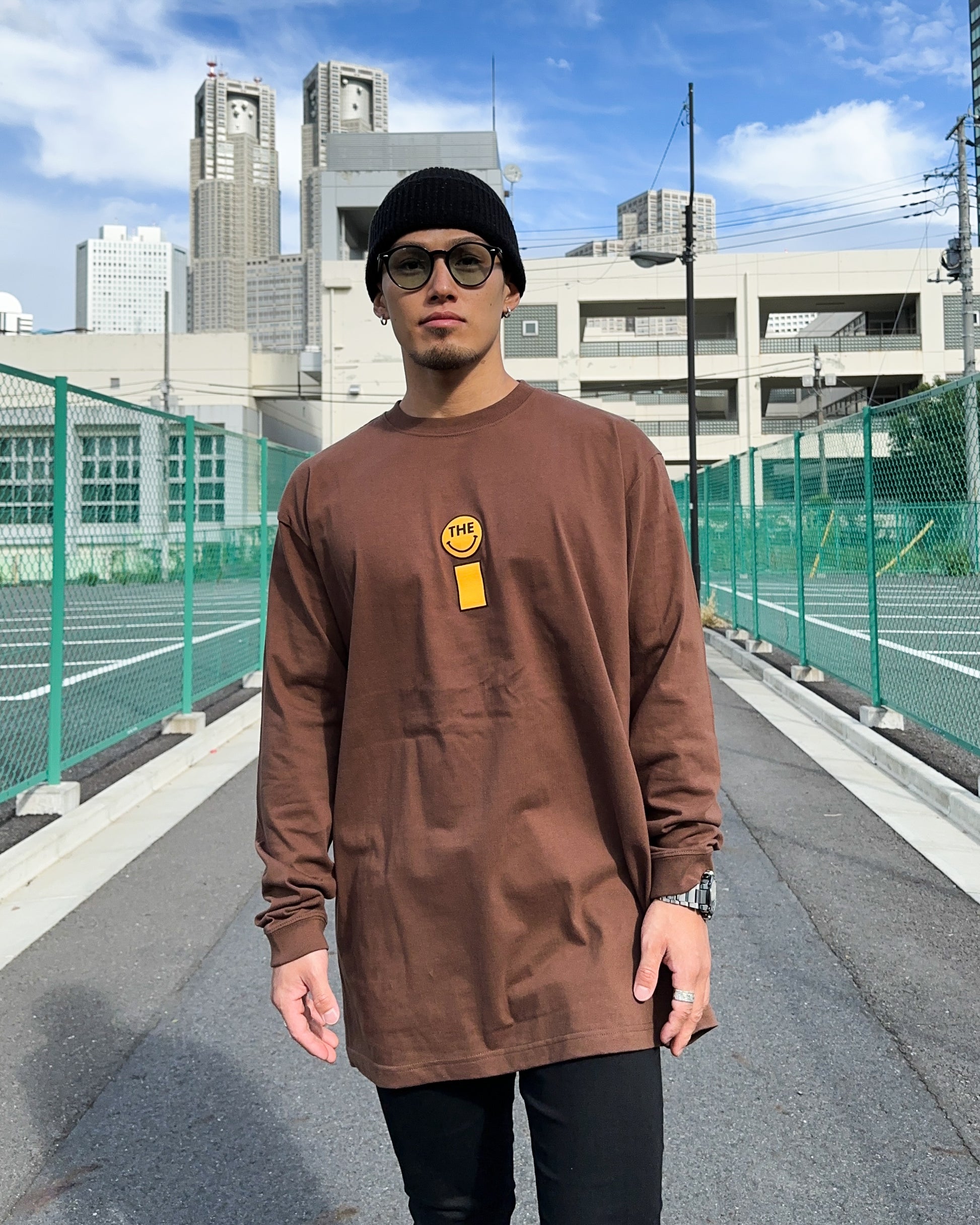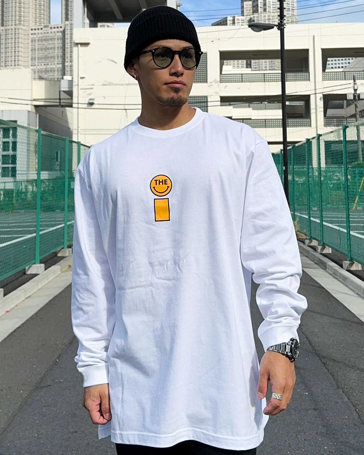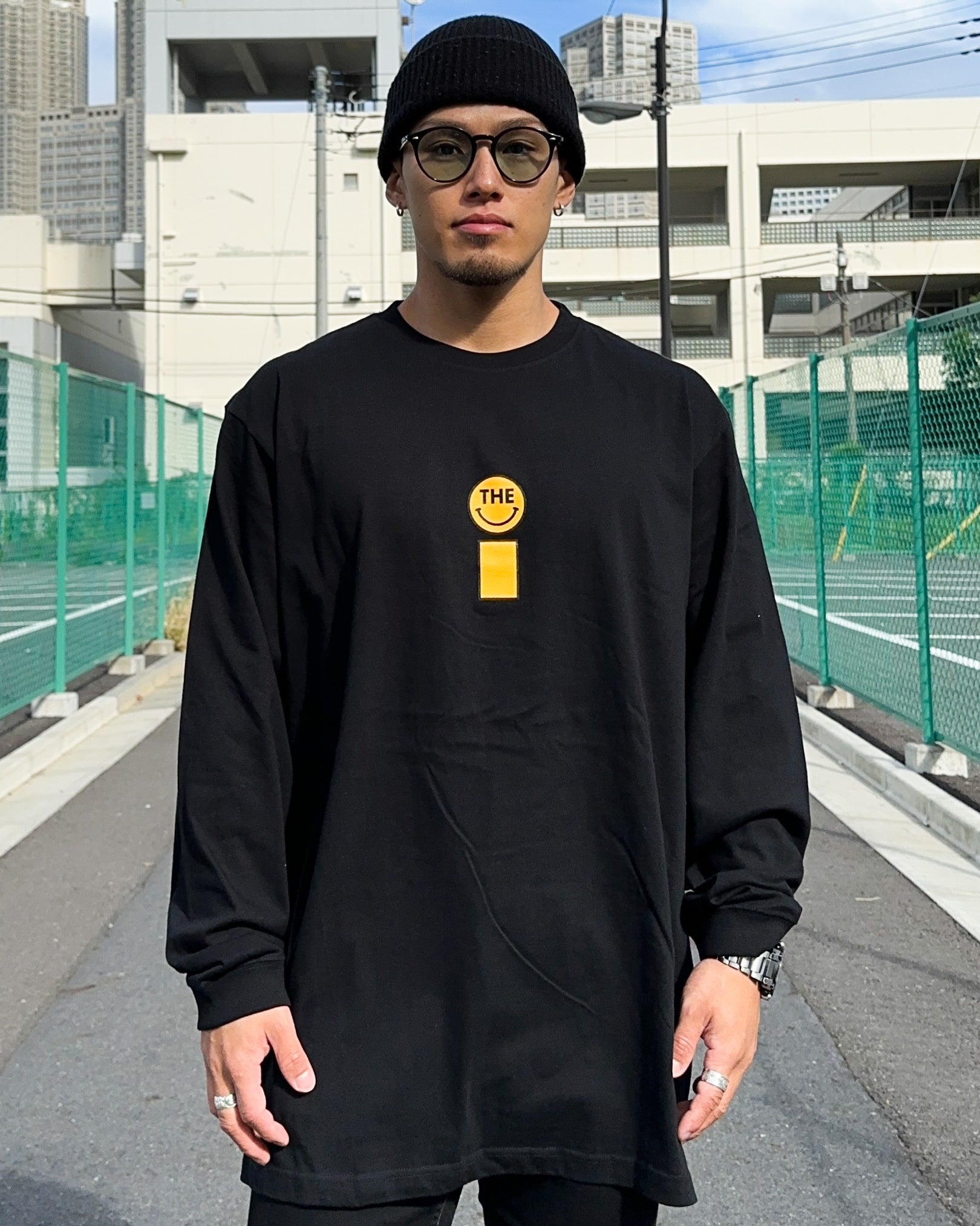 THEiのスマイリーロゴを使用した長袖Tシャツ。