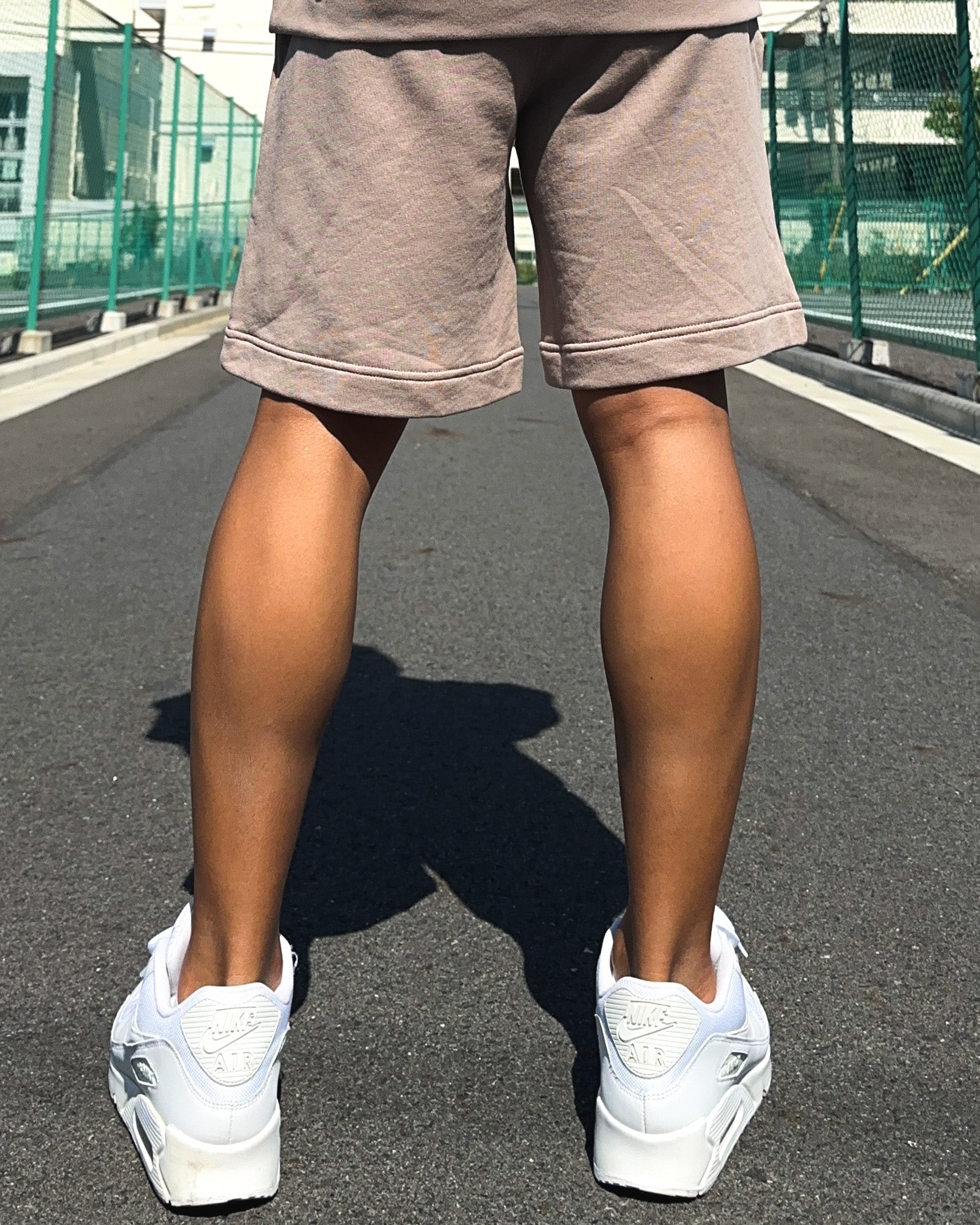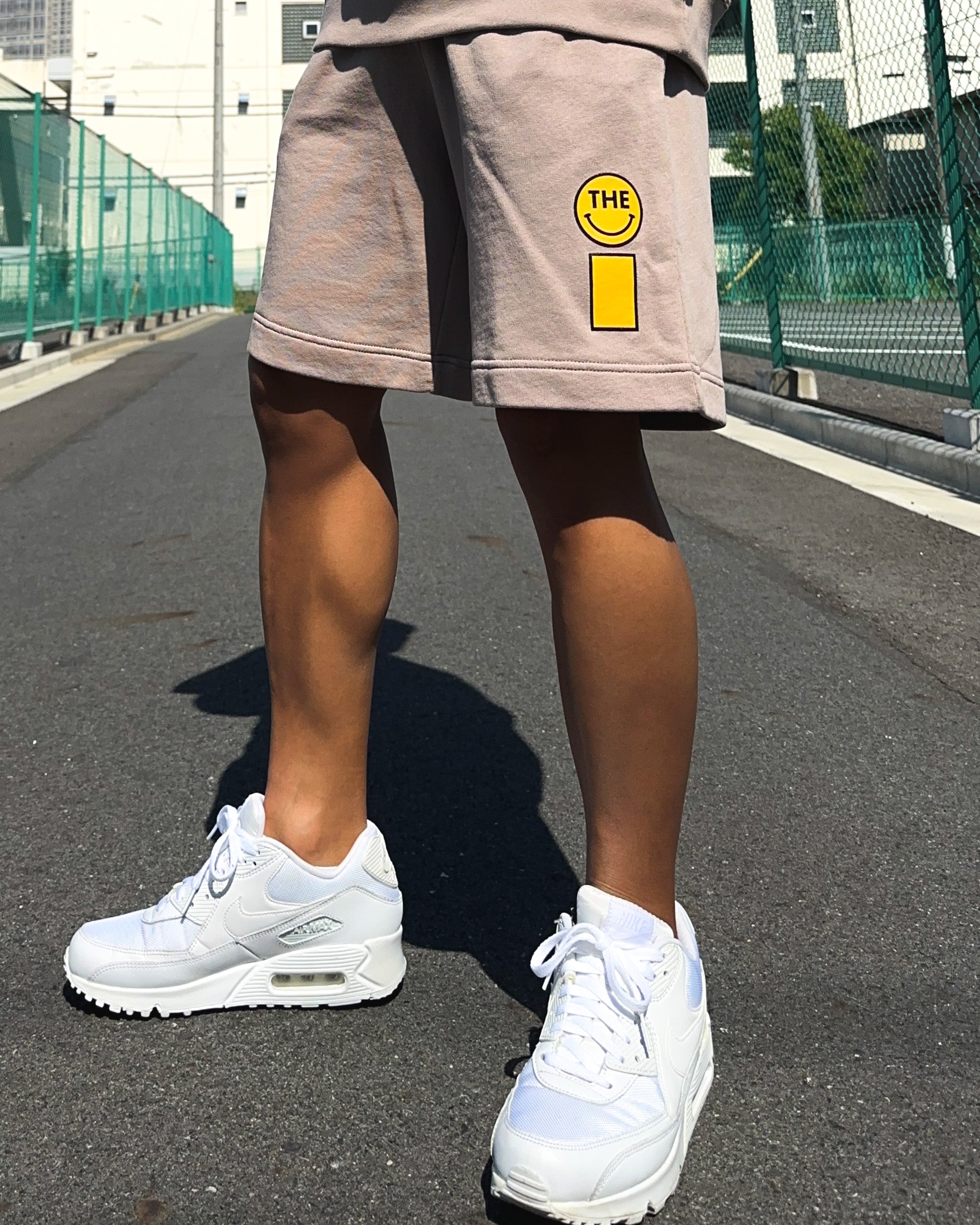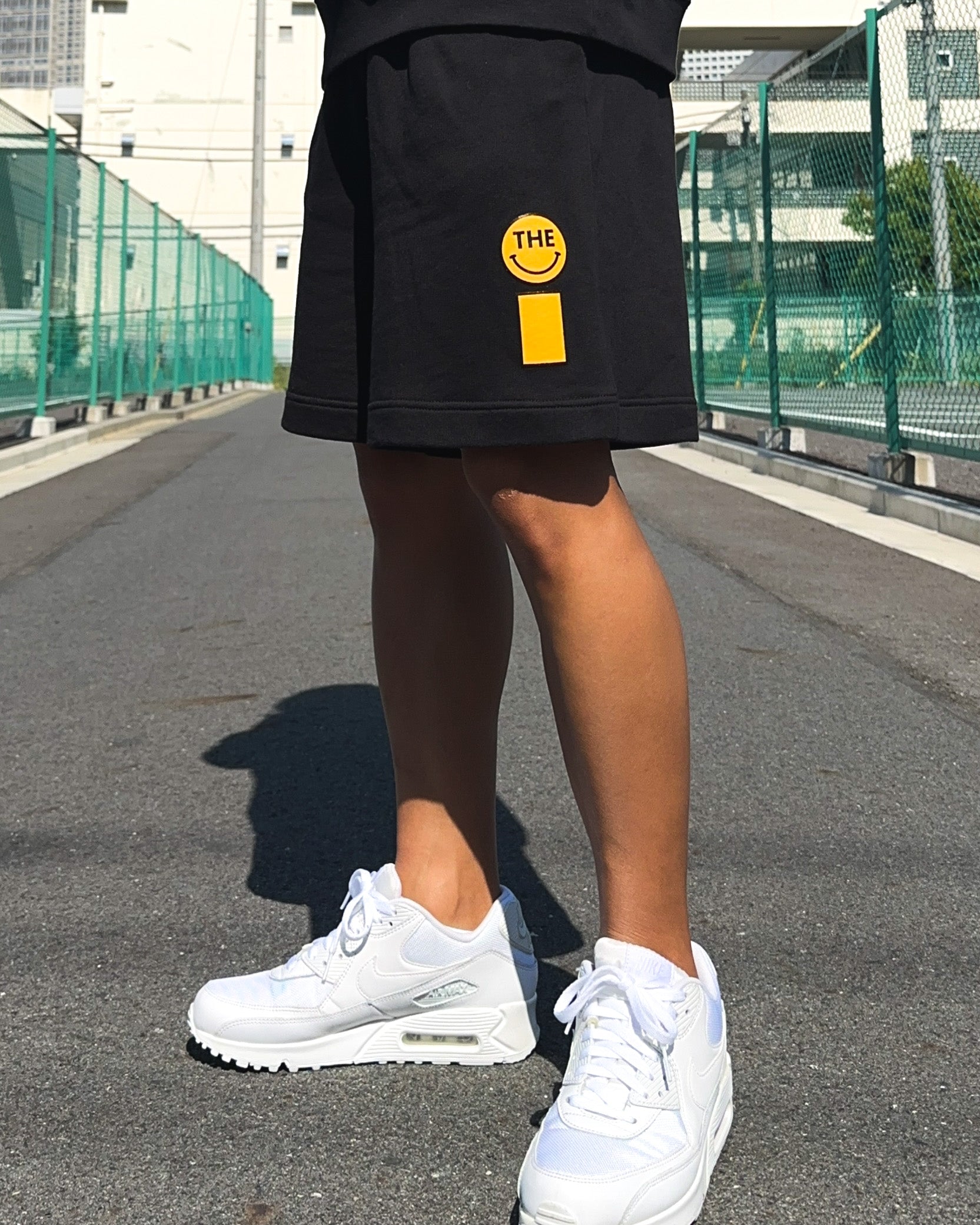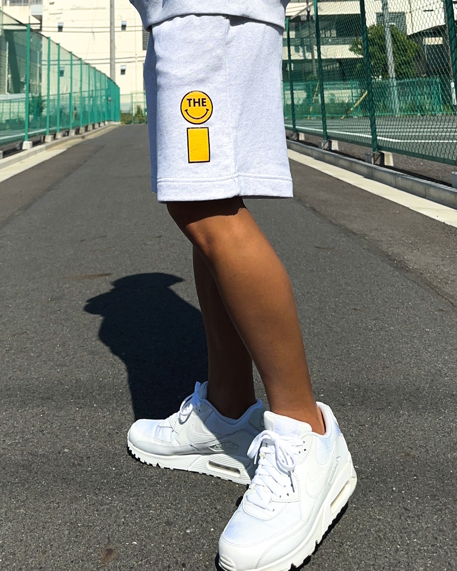 THEiのスマイリーロゴを使用したスウェットショーツ。