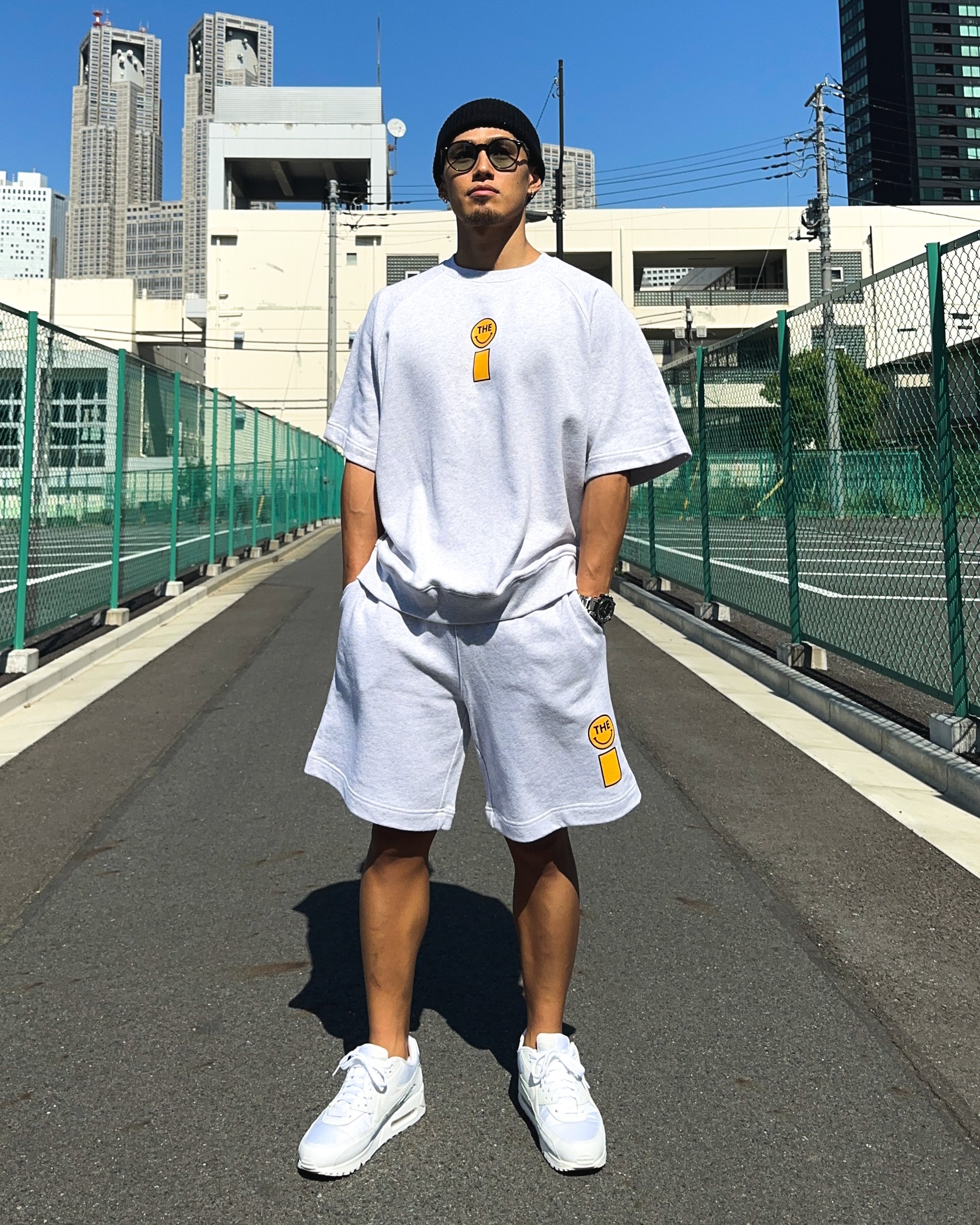 THEiのスマイリーロゴを使用したスウェット半袖Tシャツ。