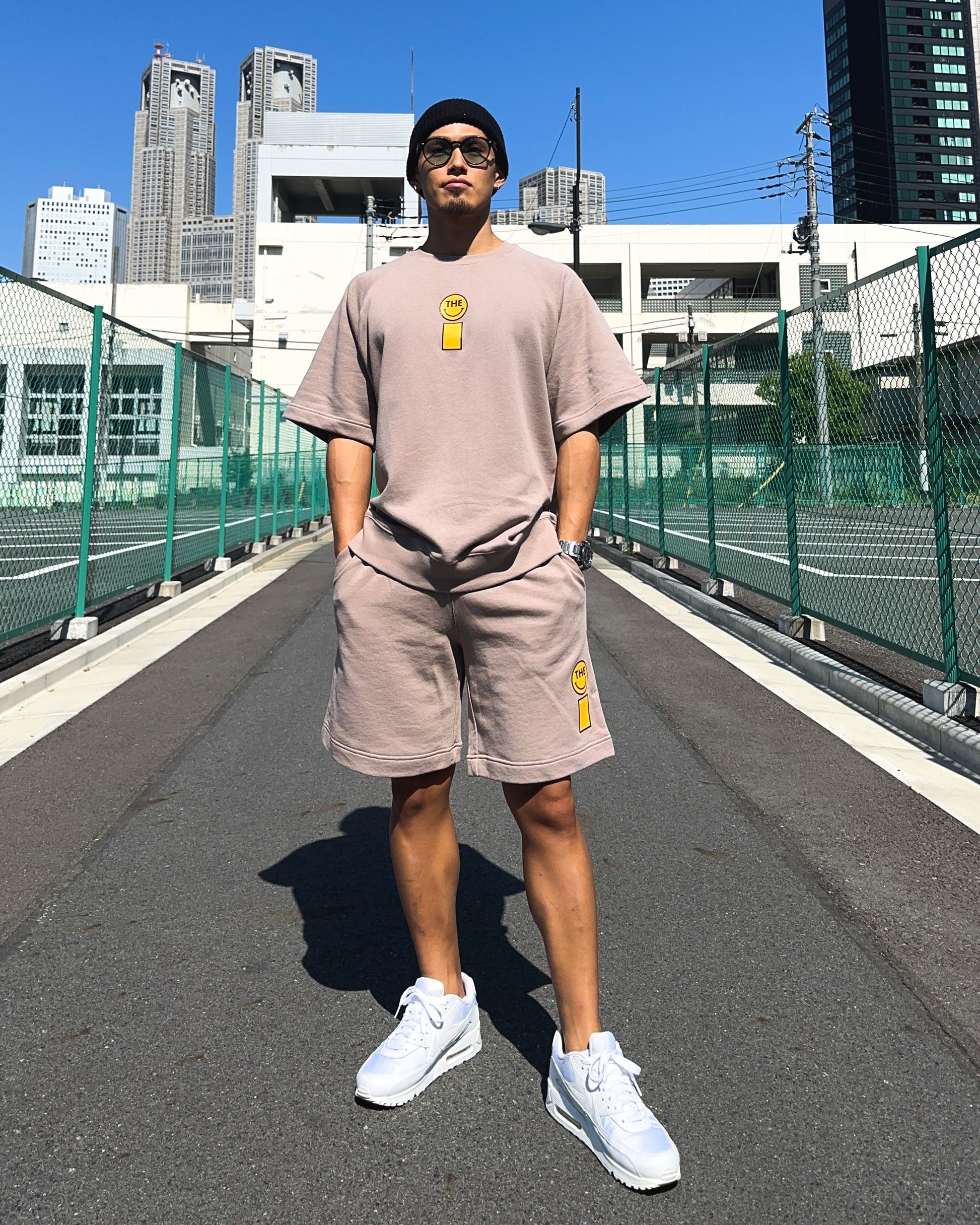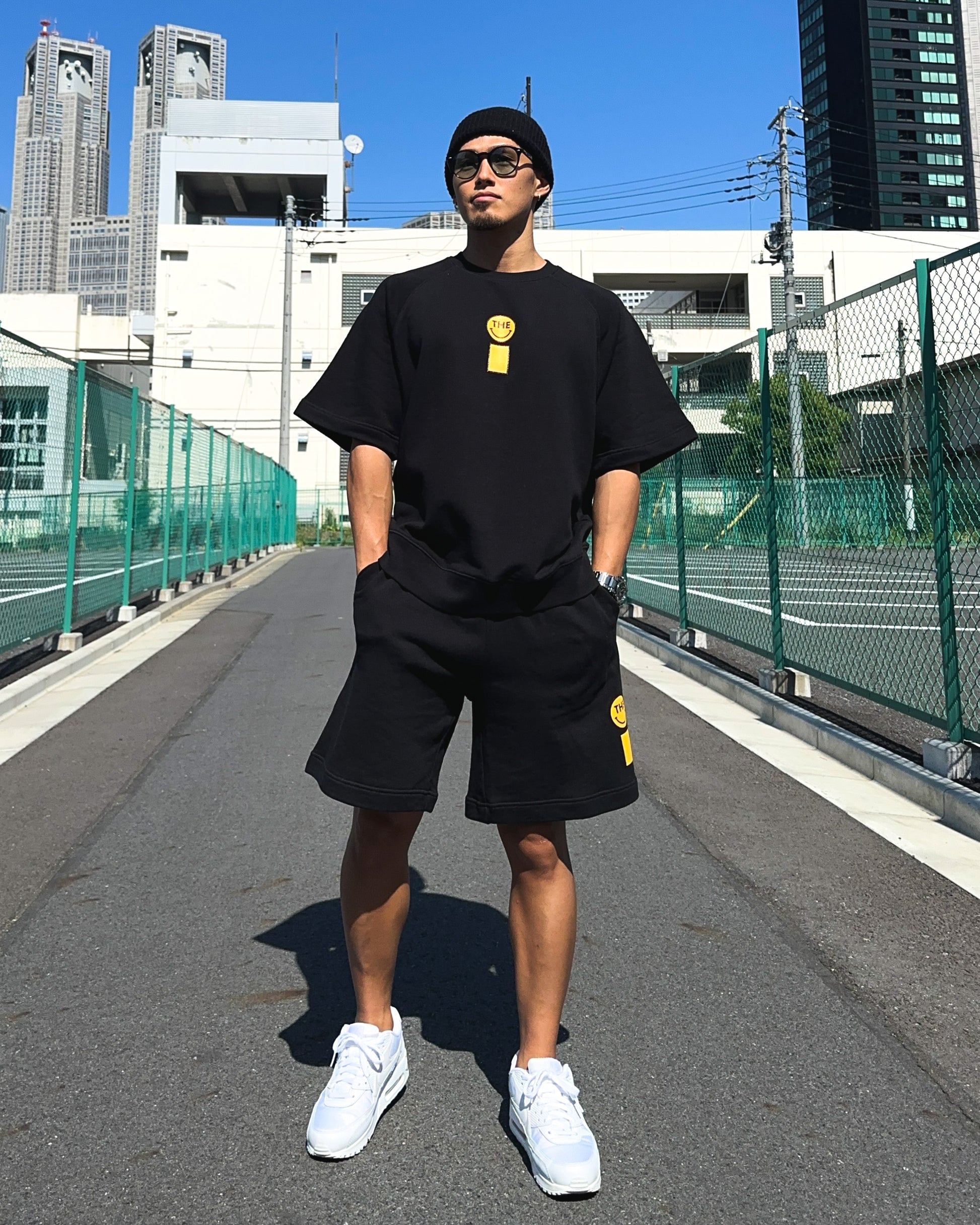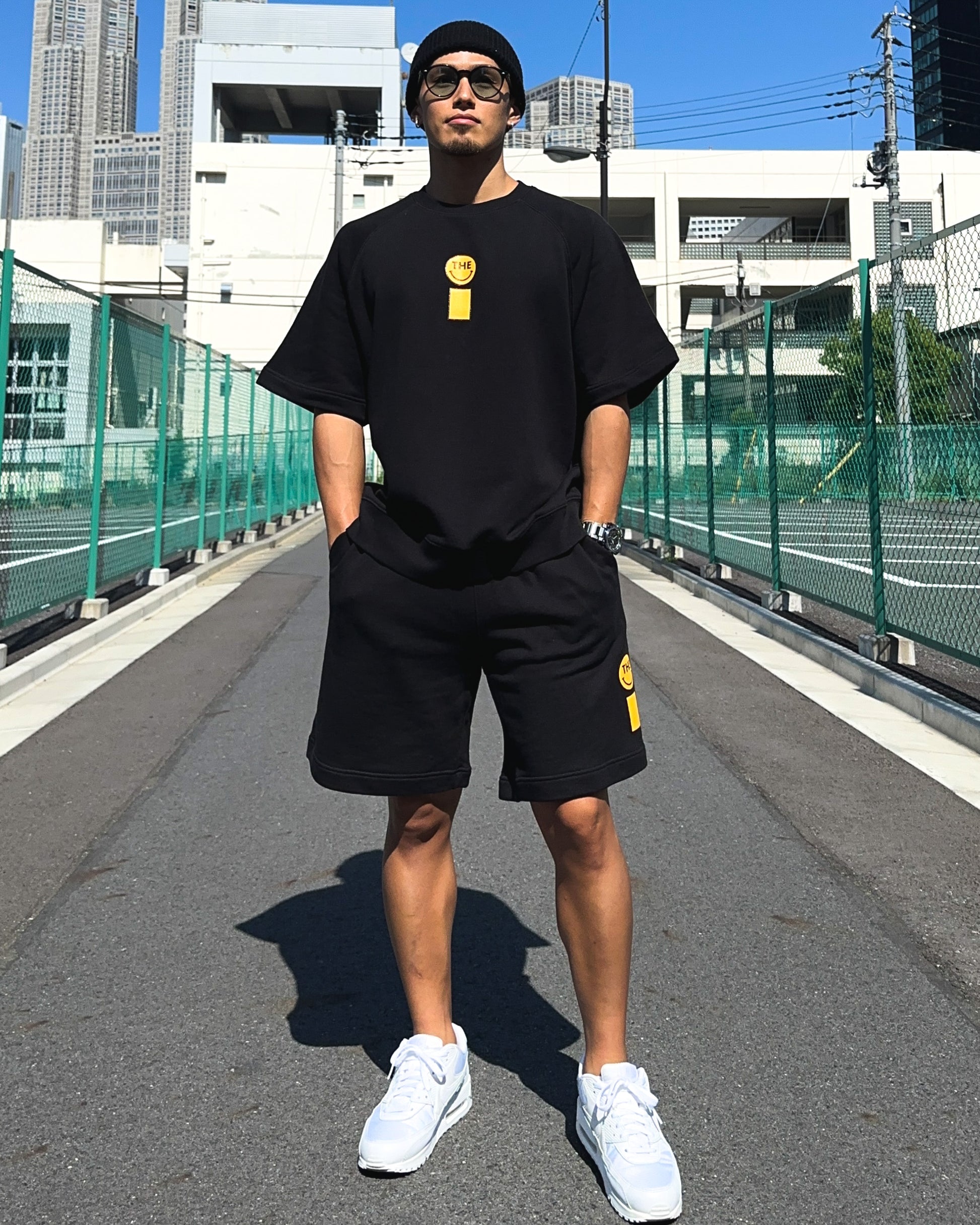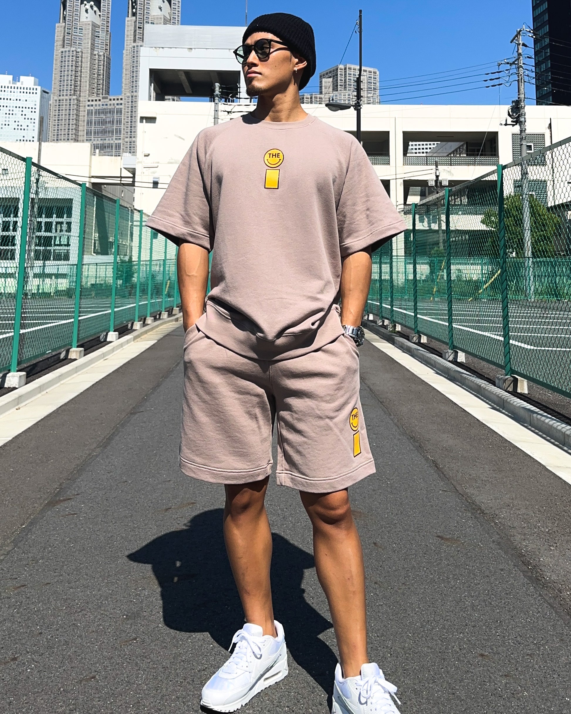 スマイリー ルーズフィット スウェット Tシャツ & ショーツ セットアップ