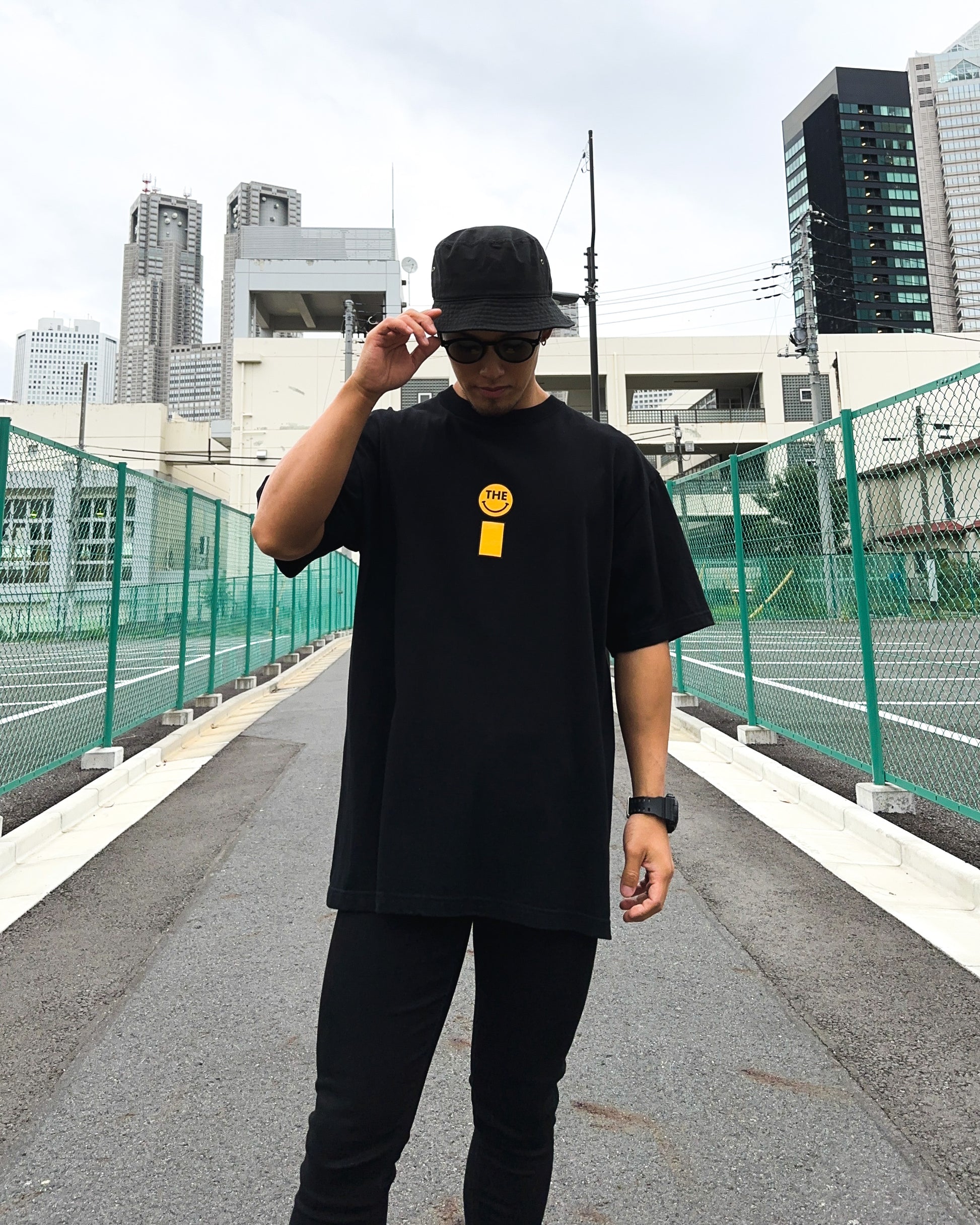 THEiのスマイリーロゴを使用した半袖Tシャツ。